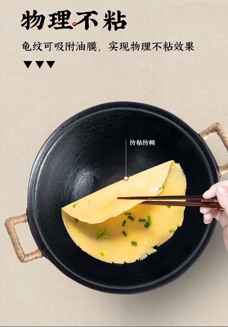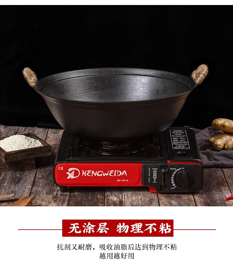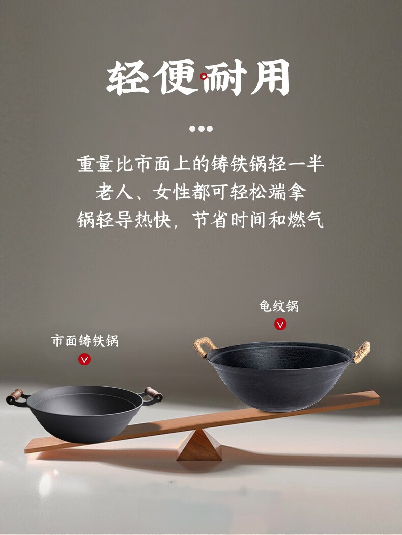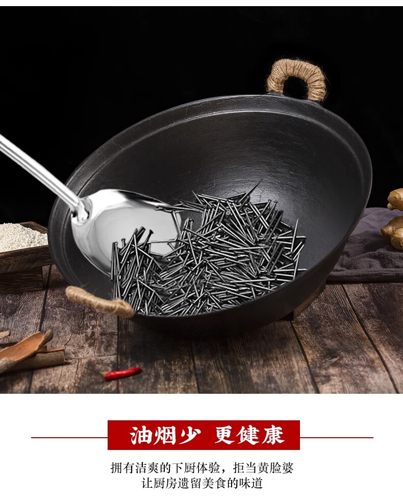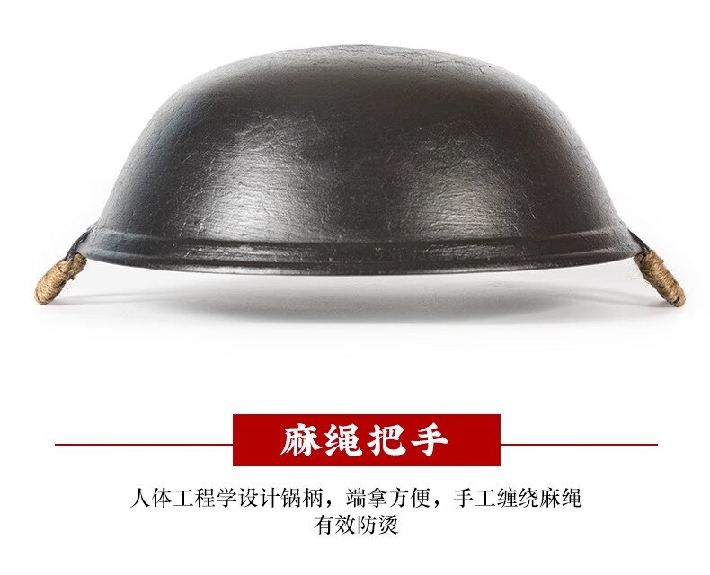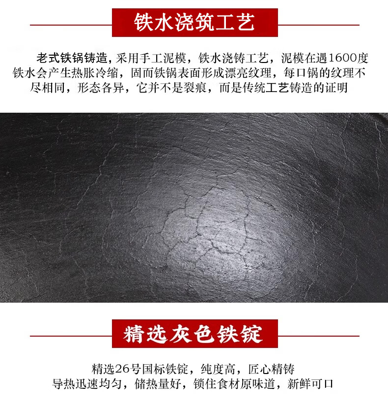 阎铁匠章丘炒锅铁锅家用炒菜锅锻打老式物理不粘锅无涂层木把锤印已开锅 锤印木把款36CM带锅耳朵 36cm