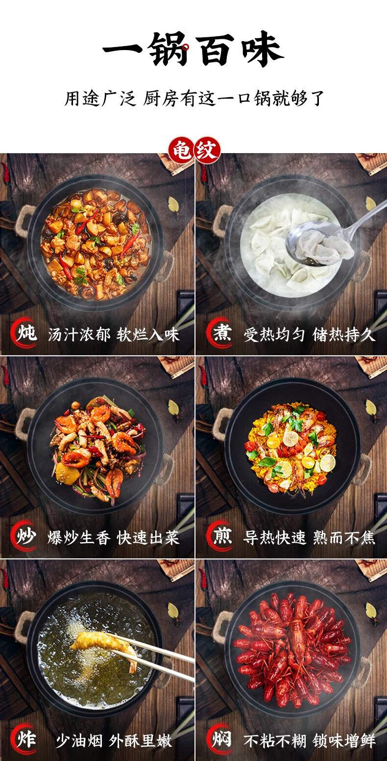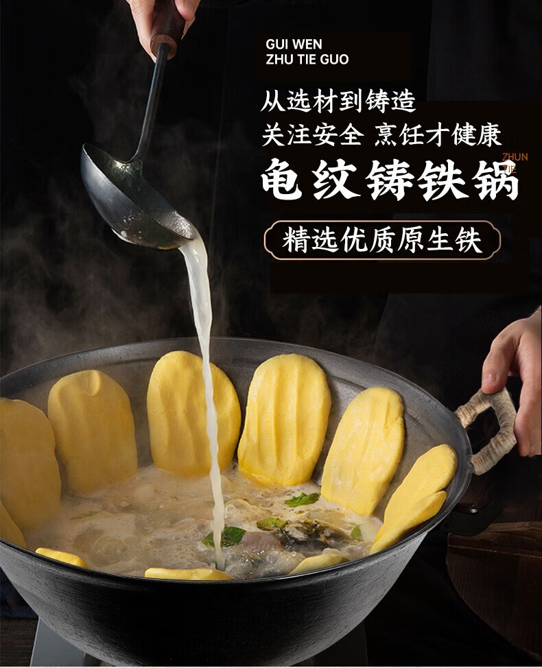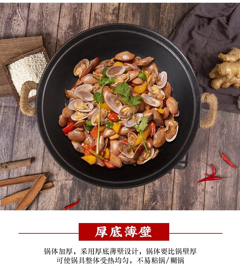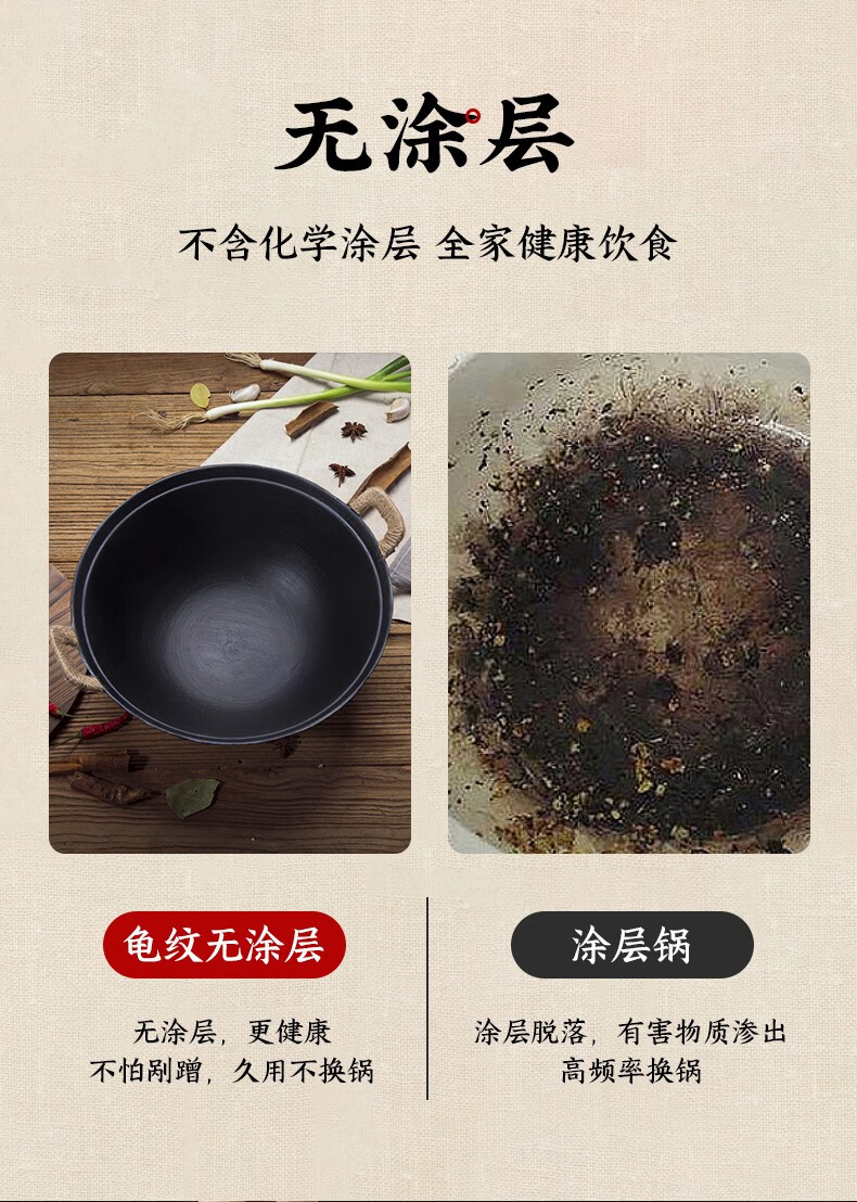 阎铁匠章丘炒锅铁锅家用炒菜锅锻打老式物理不粘锅无涂层木把锤印已开锅 锤印木把款36CM带锅耳朵 36cm
