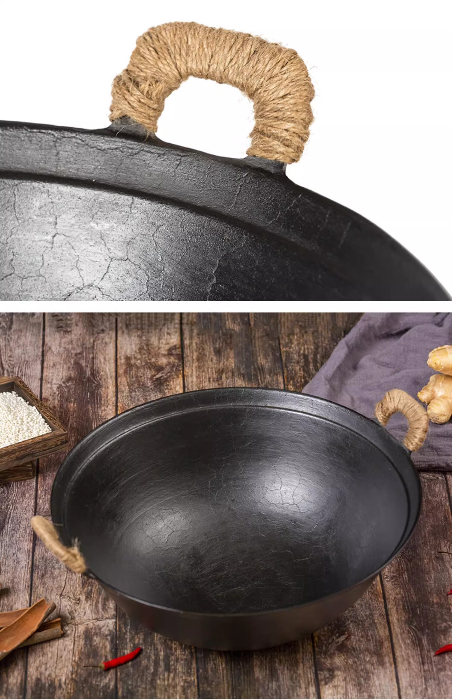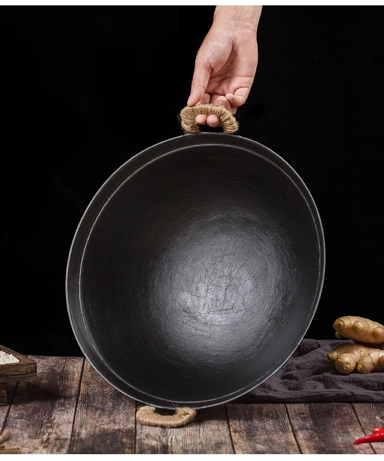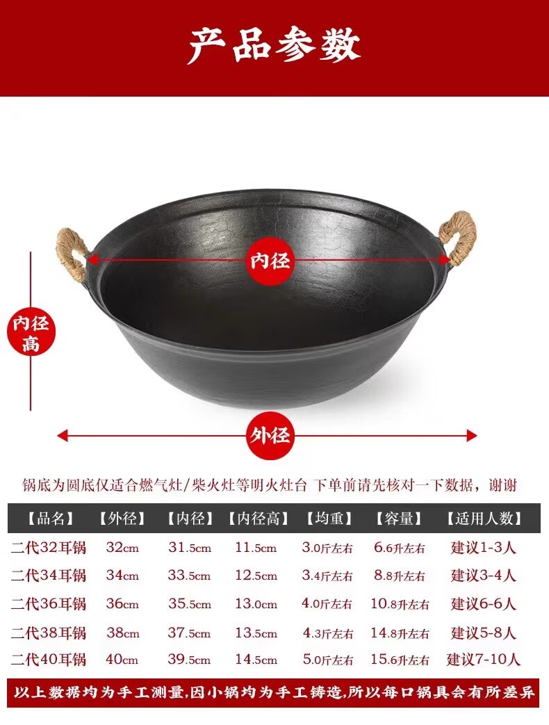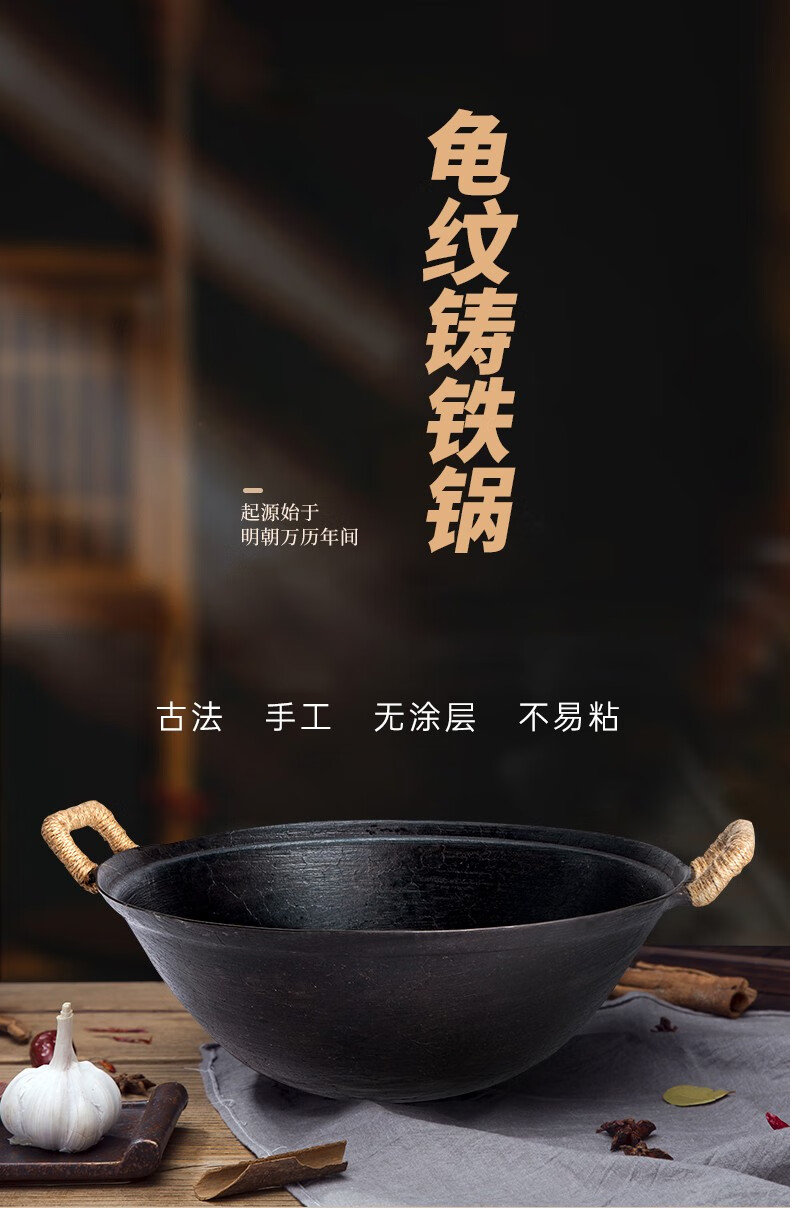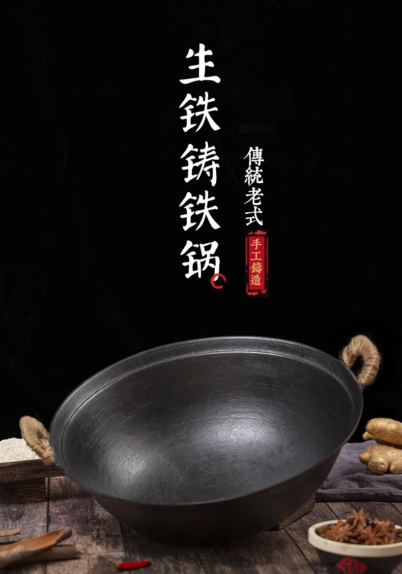 cmlziua传统老式双耳铸生铁锅无涂层家用炒菜加厚农村柴火灶燃气大炒菜锅 32cm古法手工款 (已开锅) 32cm