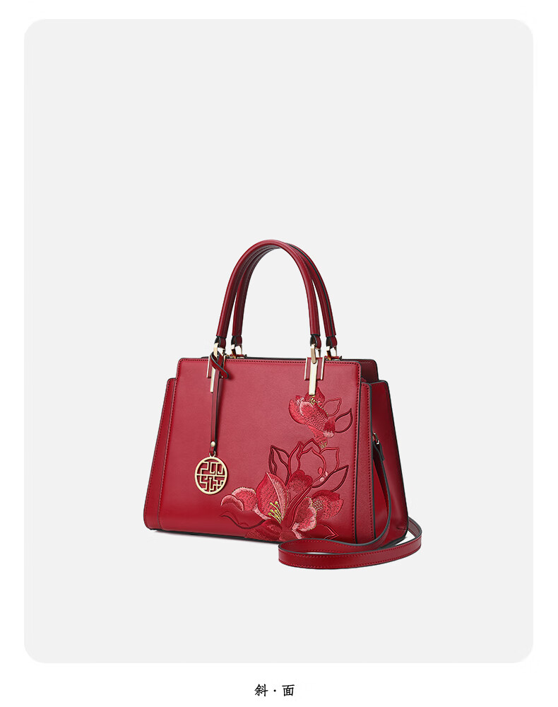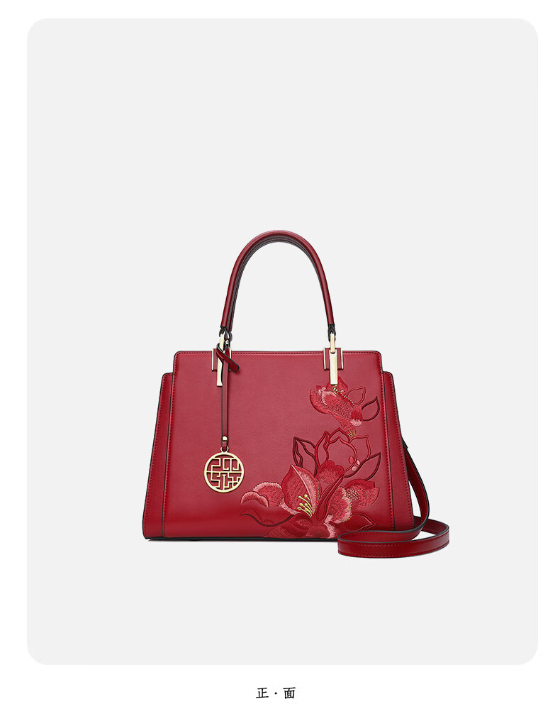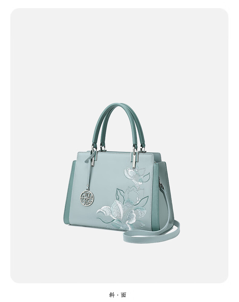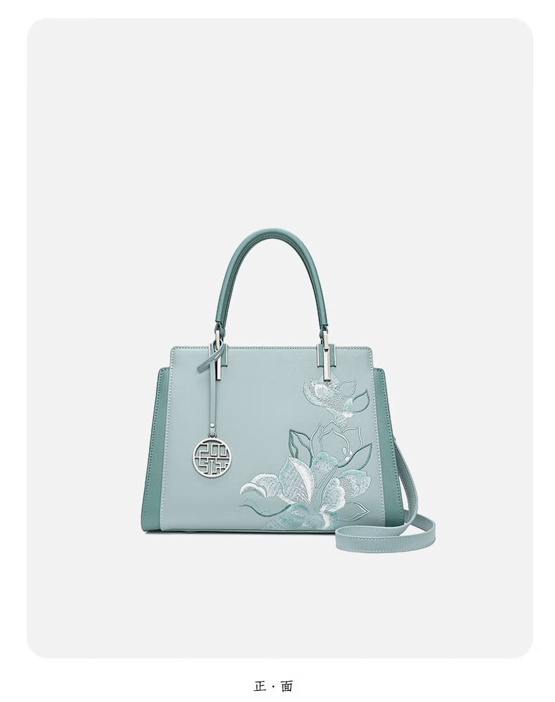 PmSix纯牛皮女包大气手提包母亲节礼物送妈妈包送丈母娘中老年款婆婆包 蓝绿色-送礼盒礼品袋