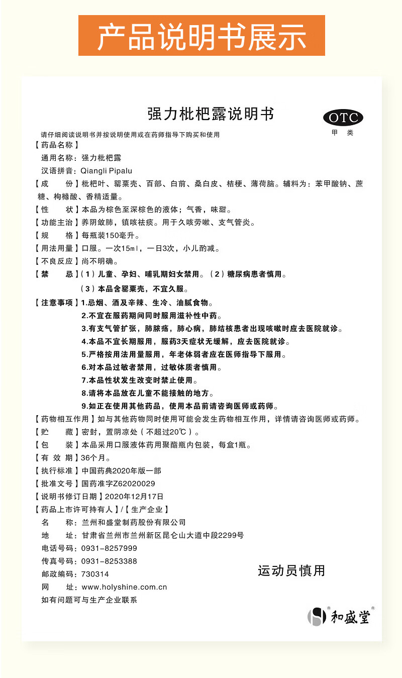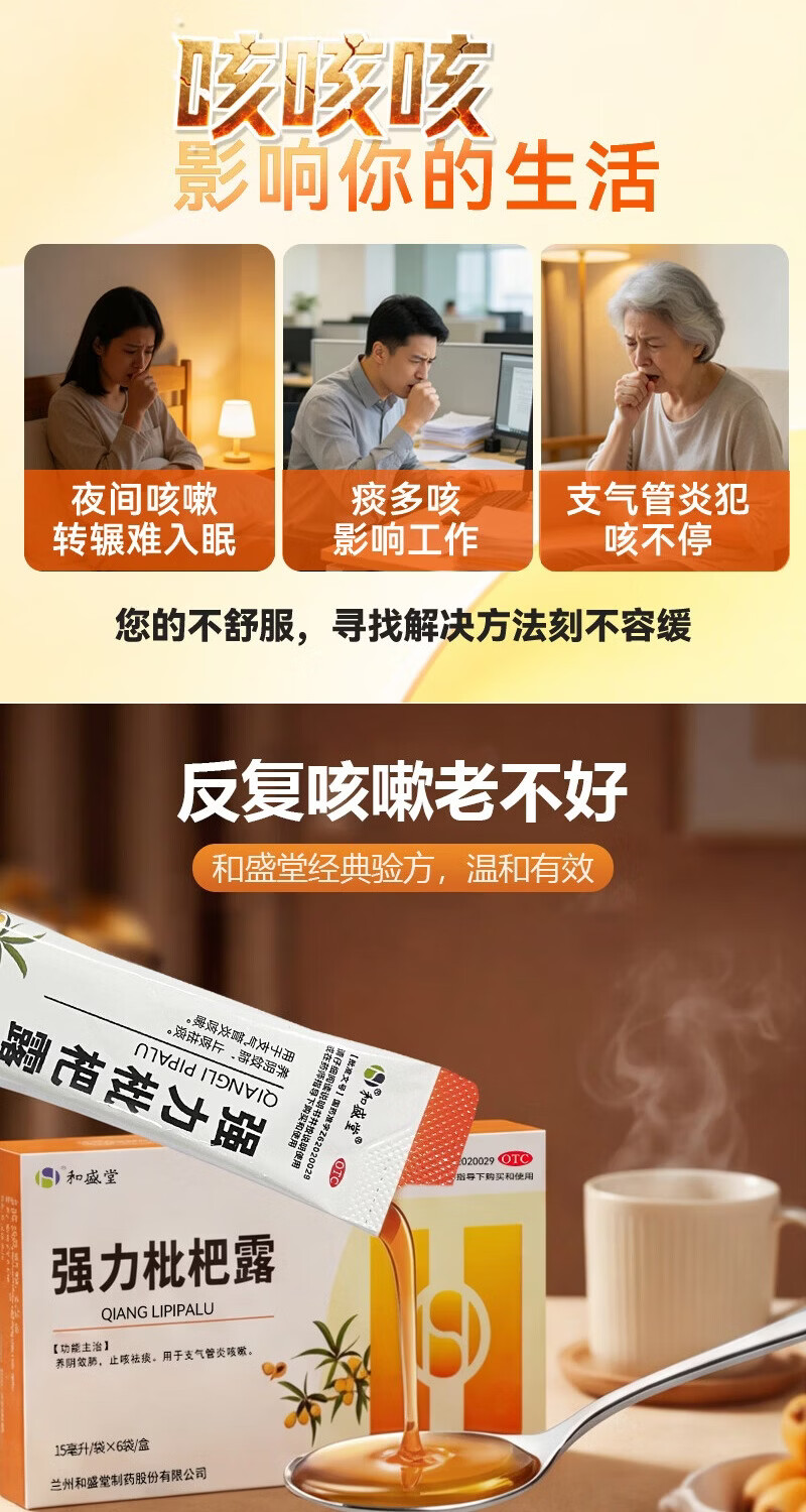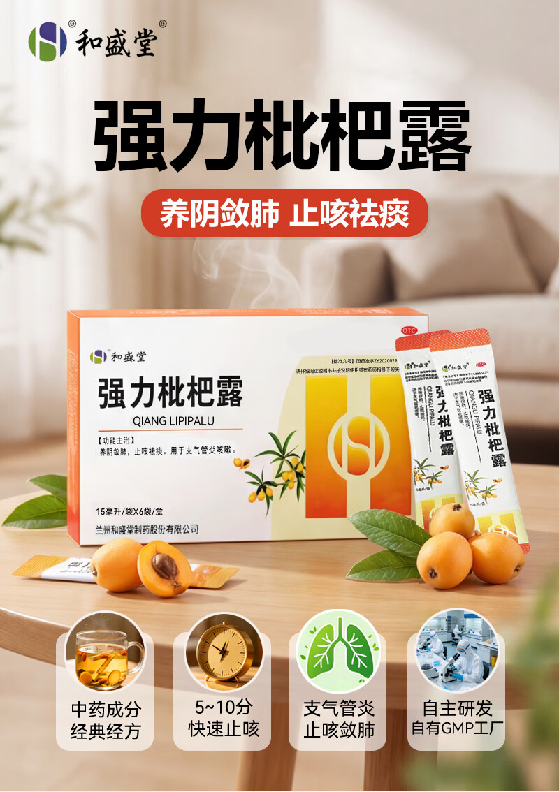 [和盛堂]强力枇杷露 15ml*6袋 5盒装 养阴敛肺止咳祛痰 支气管炎咳嗽 痰多久咳干咳 成人止咳化痰中药正品成分药房直发 特惠装