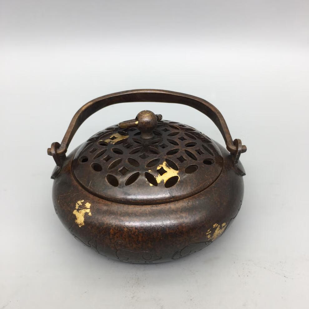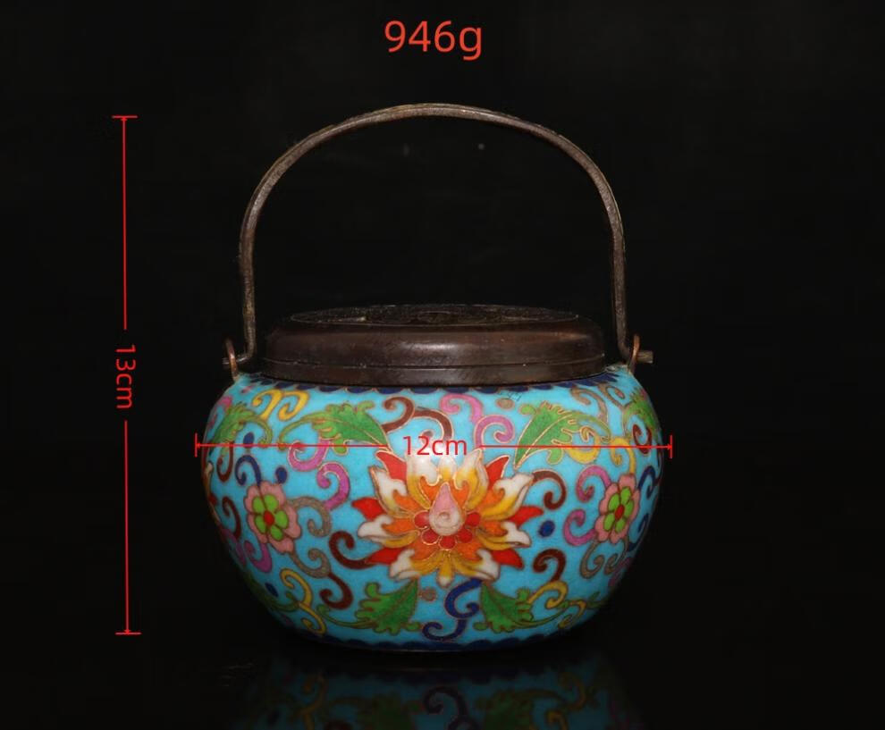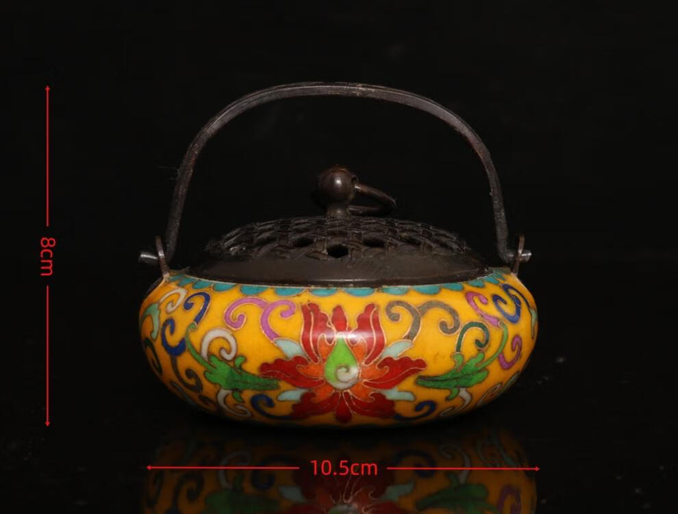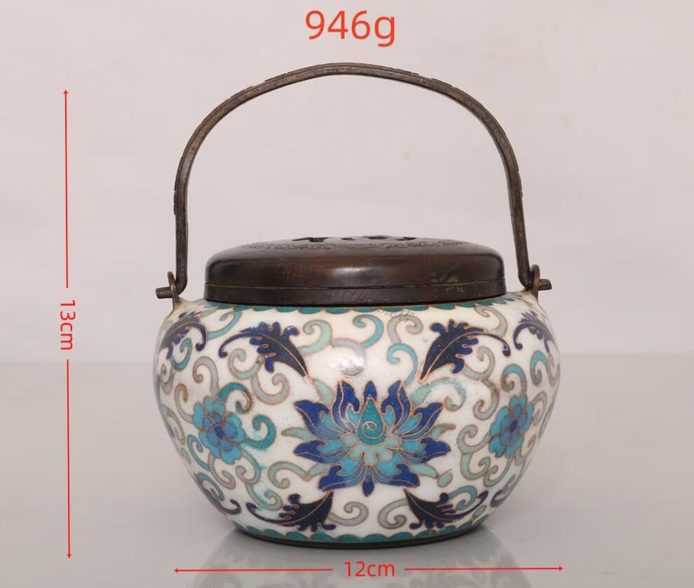 铜暖手炉球形火铳火冲汤婆子复古取暖随身手提木炭仿古香炉礼品 3款景泰蓝重约940克