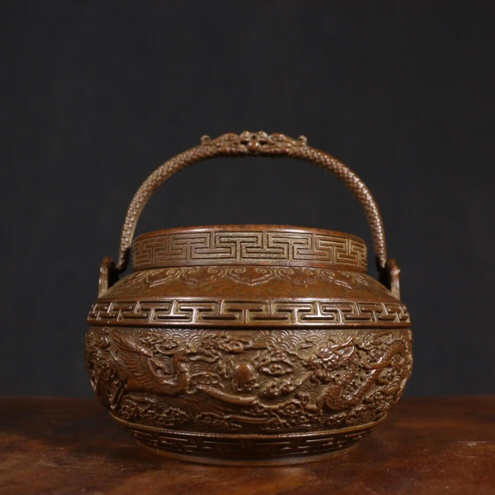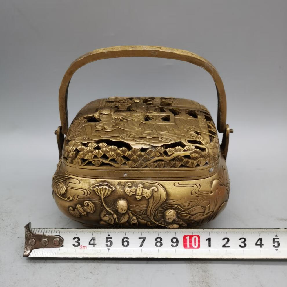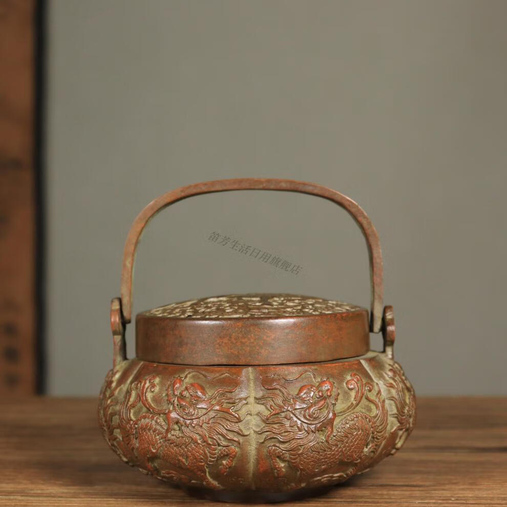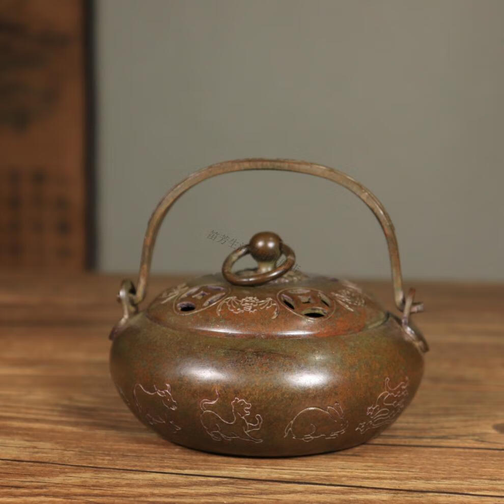 铜暖手炉球形火铳火冲汤婆子复古取暖随身手提木炭仿古香炉礼品 3款景泰蓝重约940克