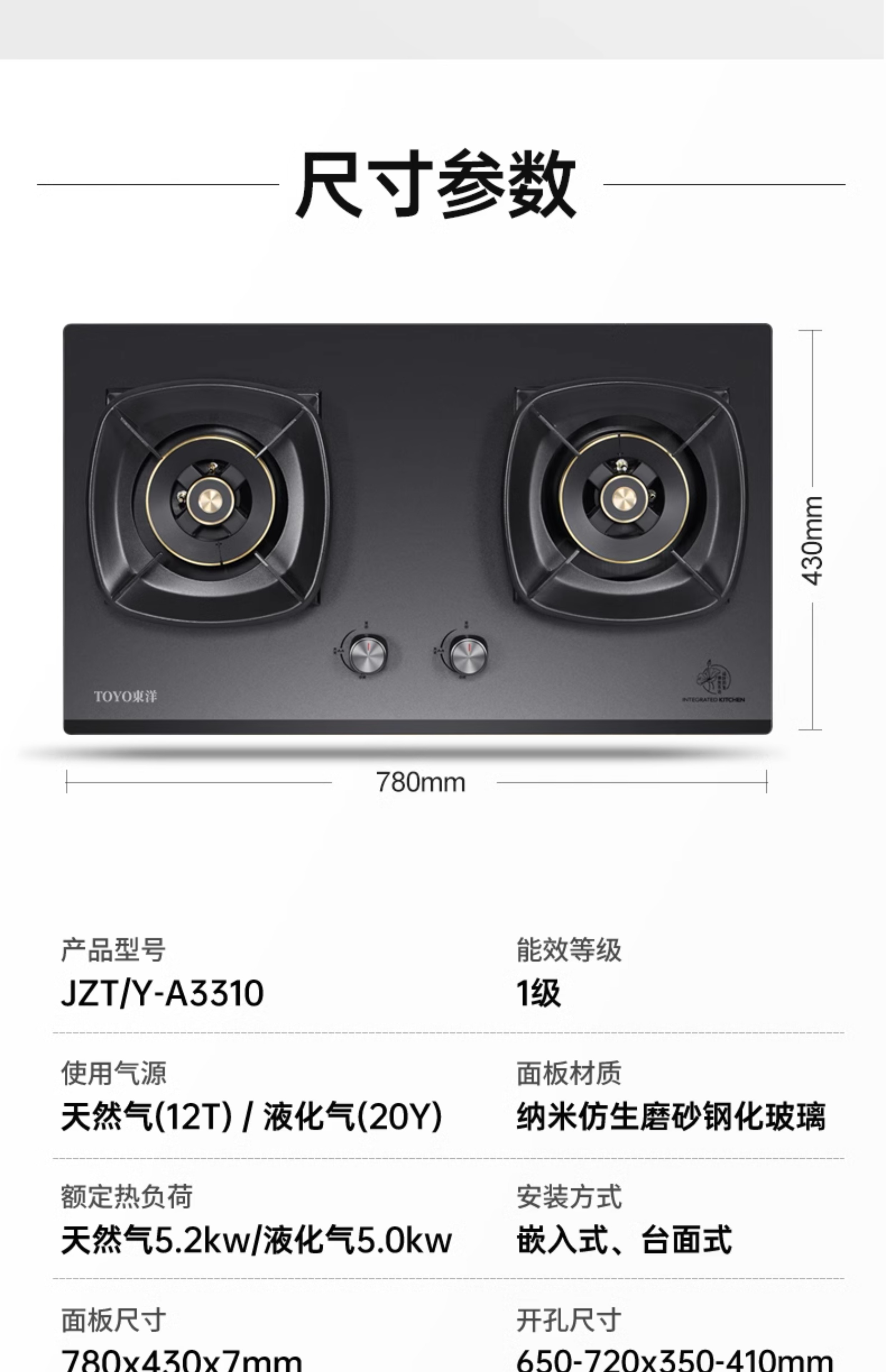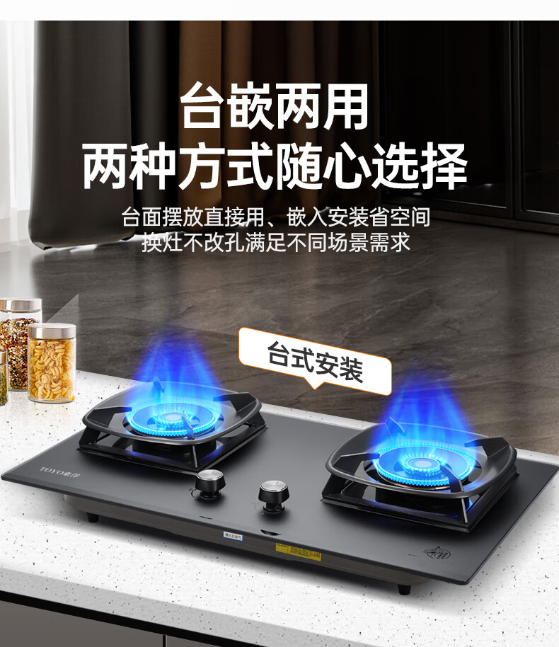 東洋(TOYO)燃气双灶台式嵌入式家用煤气灶头液化气天然气猛火炉灶 尊享款超重全铜火盖 液化气
