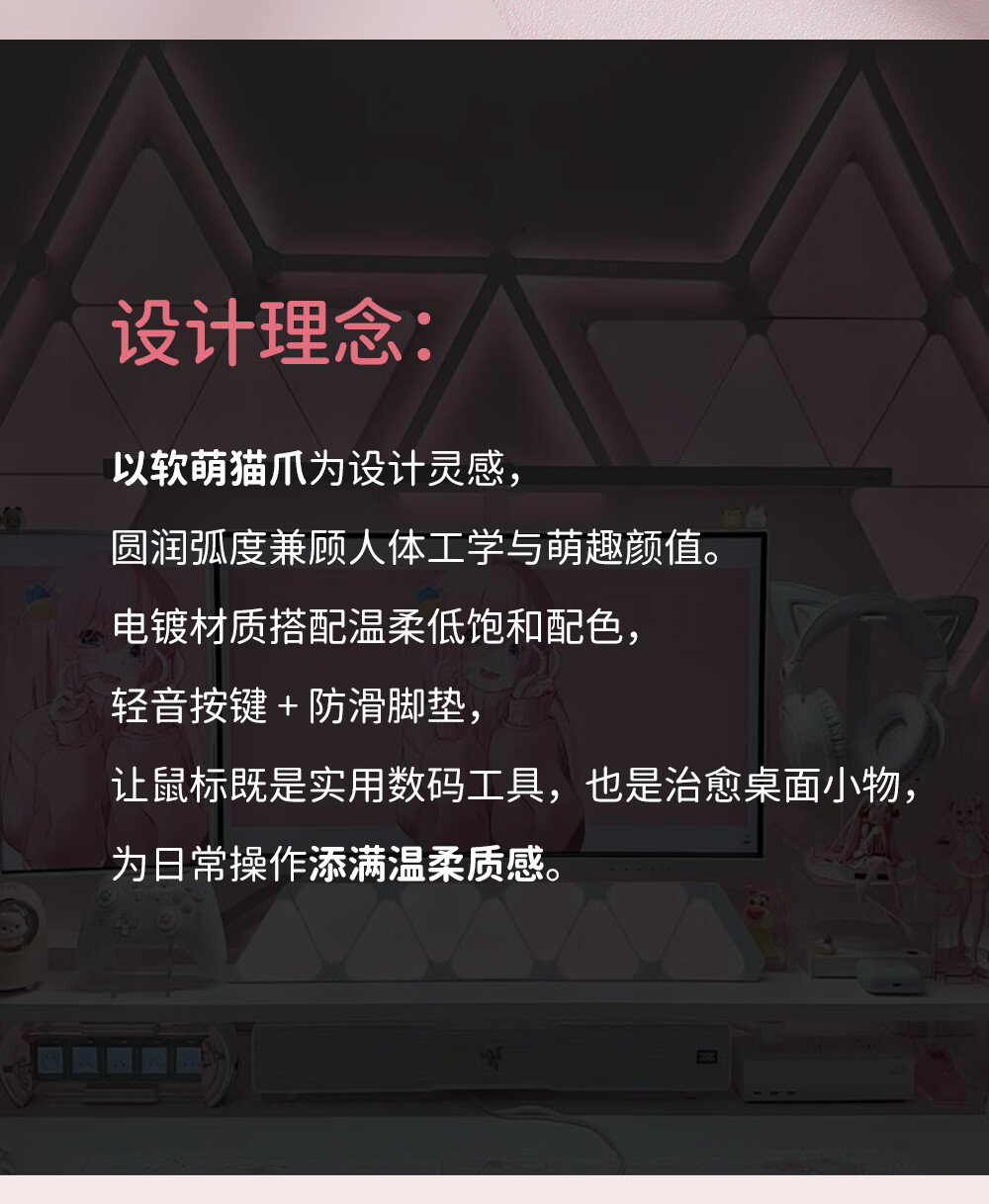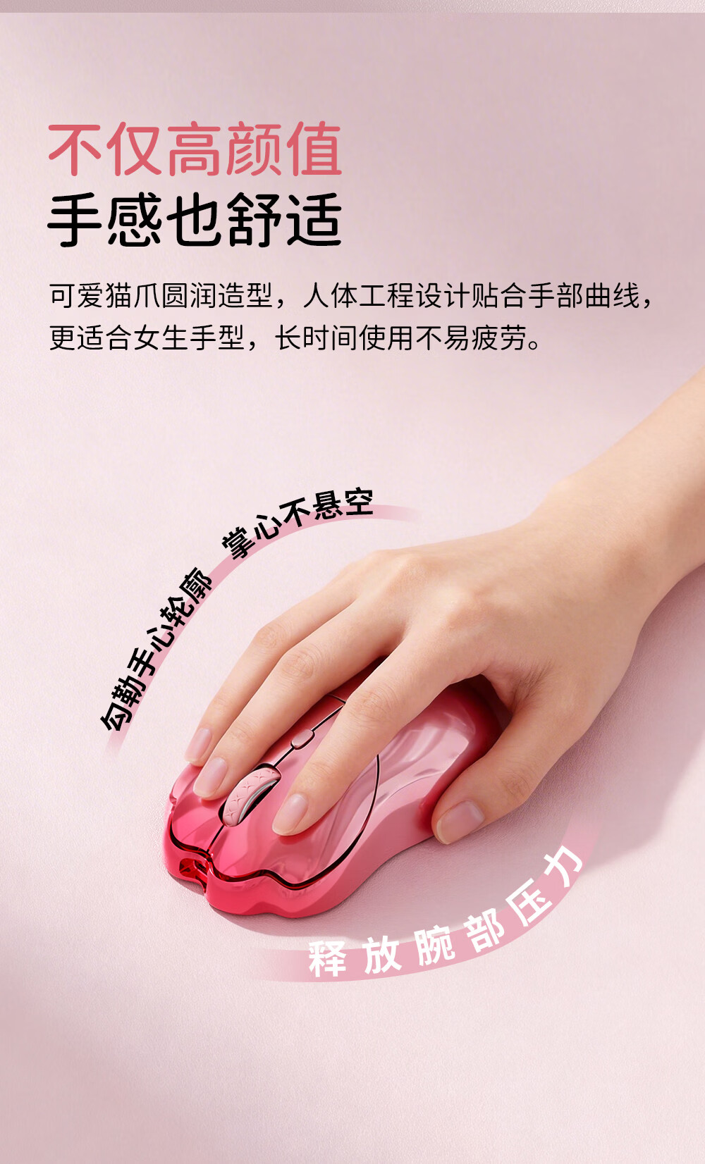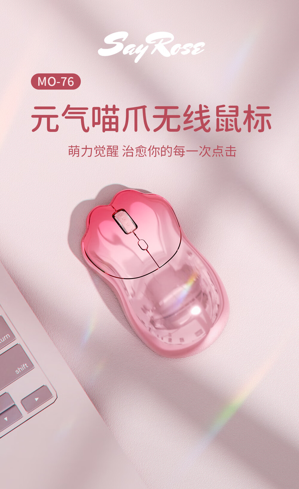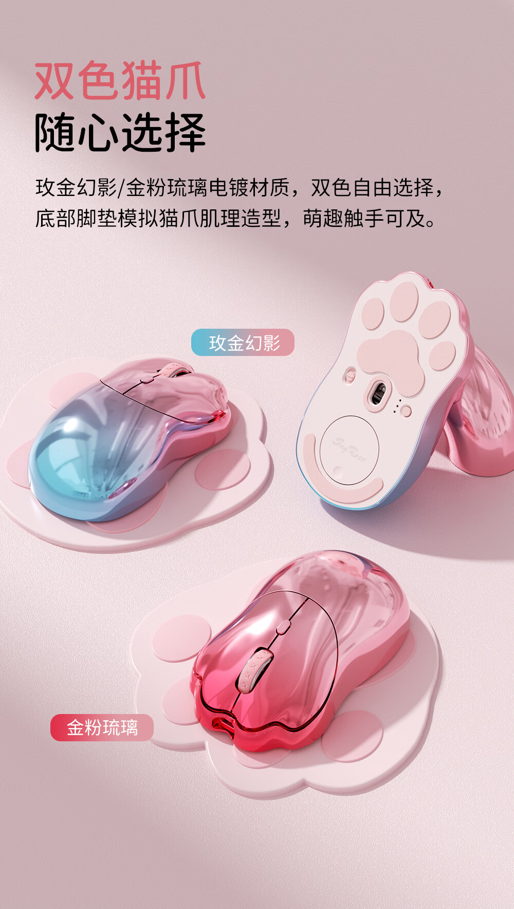 SayRose元气喵爪无线鼠标 笔记本电竞电脑办公女生充电款双模2.4G/蓝牙鼠标精致可爱生日情人节礼物送女生 金粉琉璃