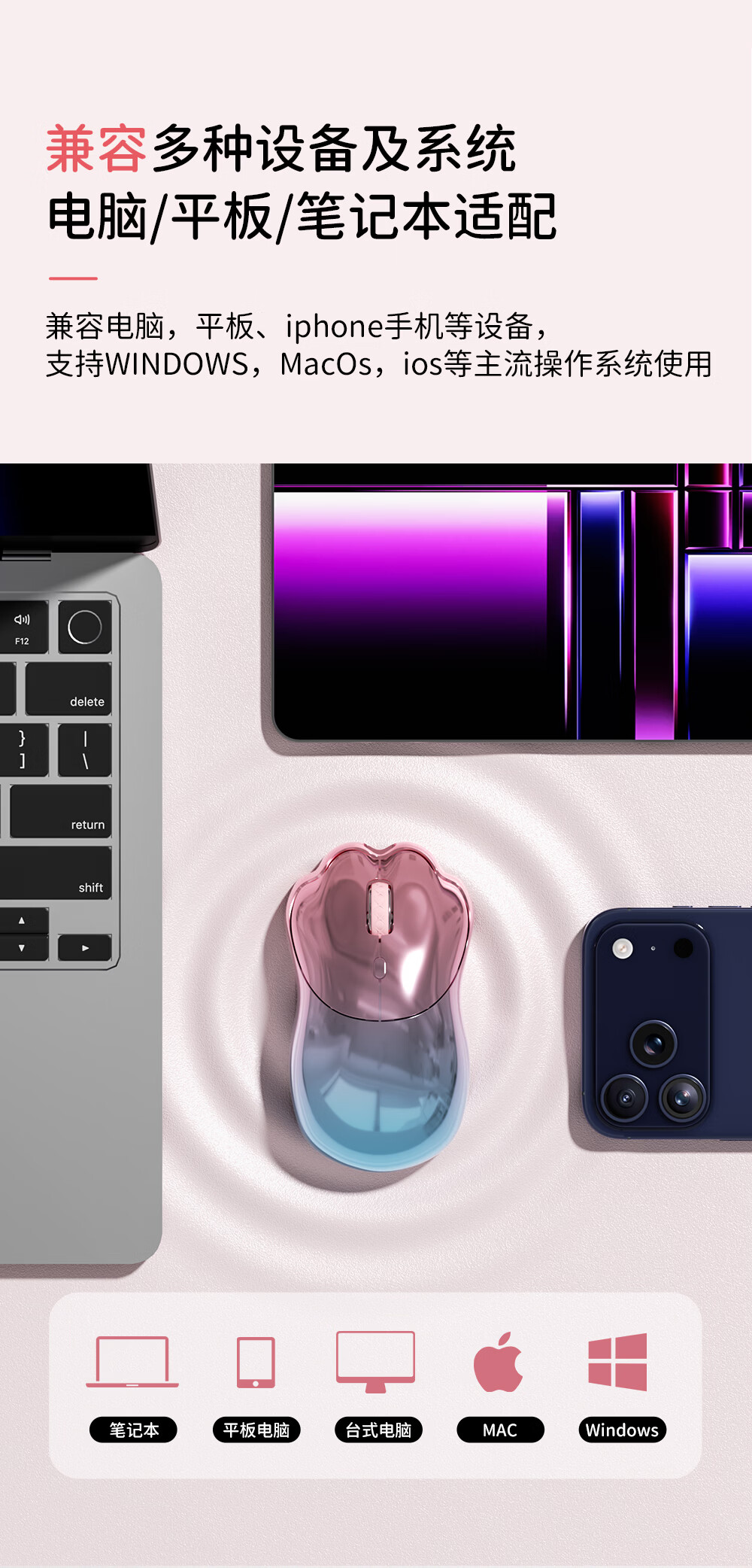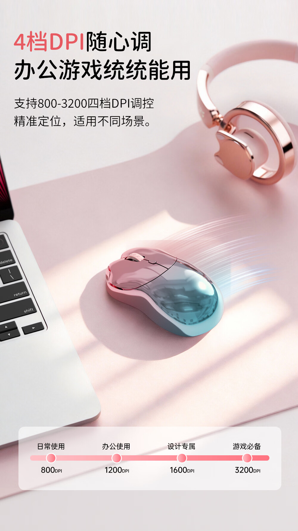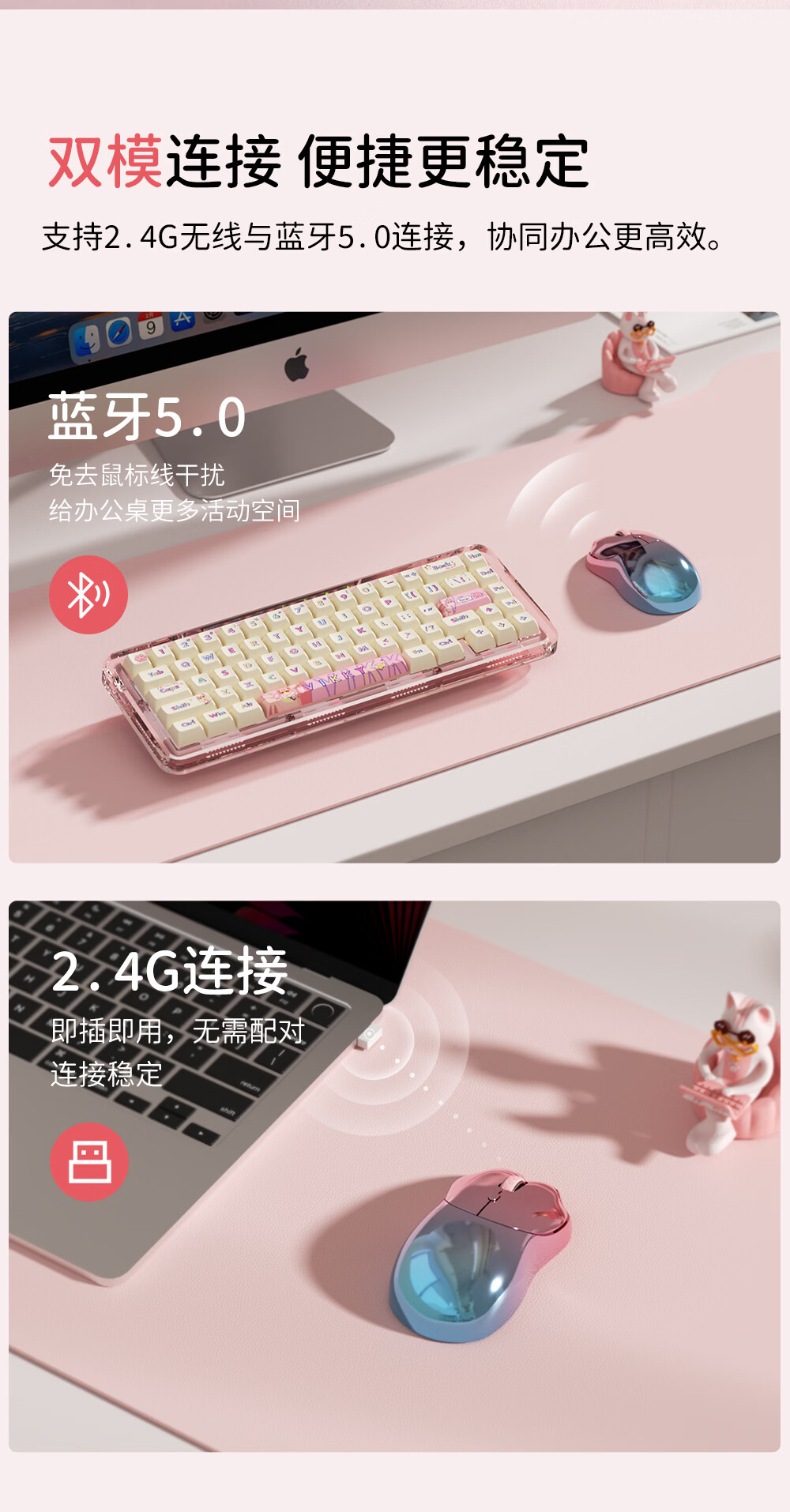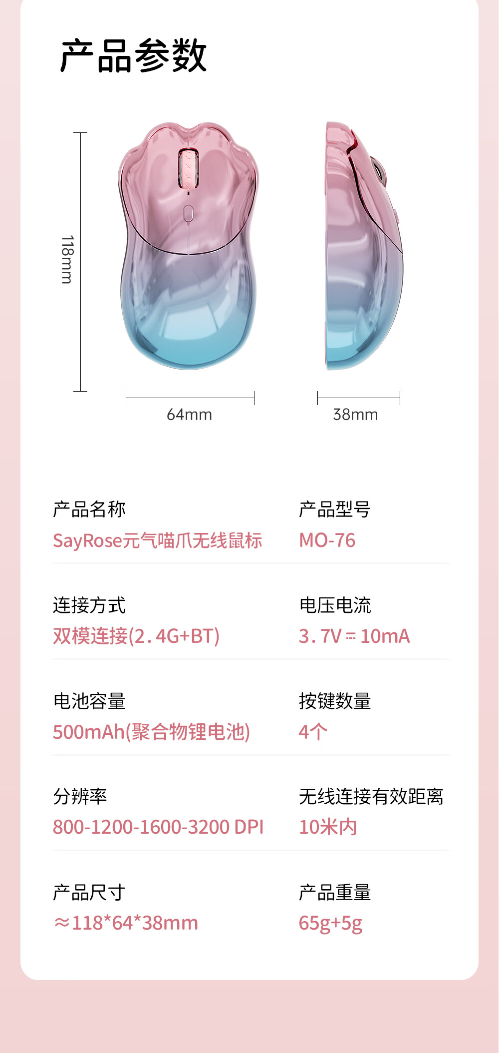 SayRose元气喵爪无线鼠标 笔记本电竞电脑办公女生充电款双模2.4G/蓝牙鼠标精致可爱生日情人节礼物送女生 金粉琉璃
