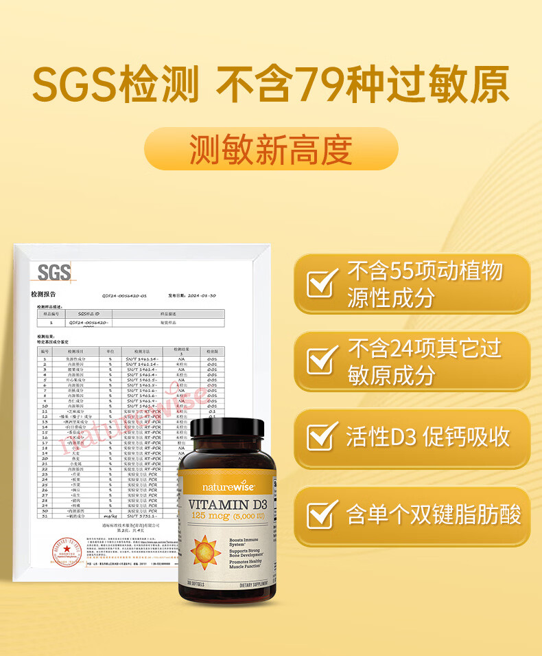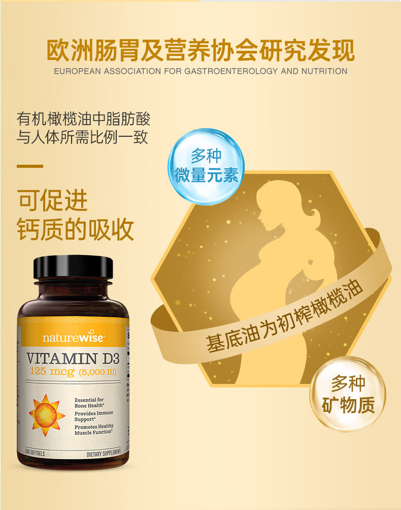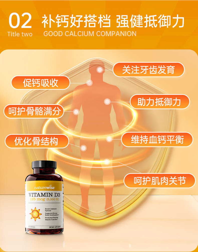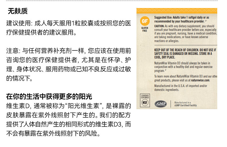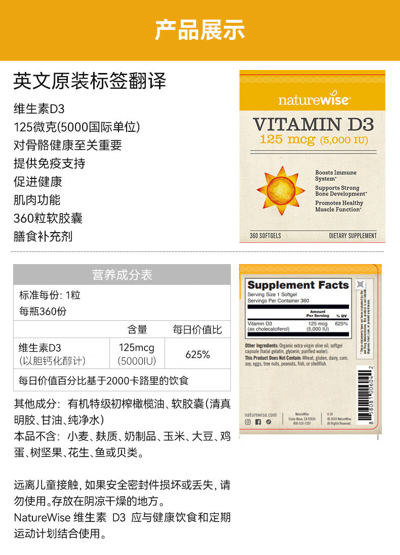 naturewise阳光瓶维生素D3软胶囊5000iu备孕成人儿童青少年补钙360粒美国 5000iu 360粒*1瓶 【备孕/成人】