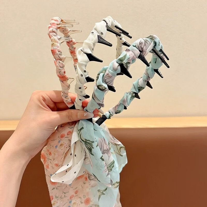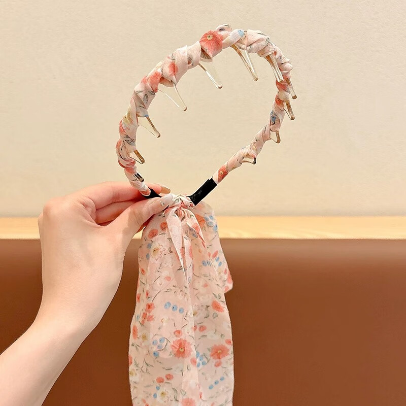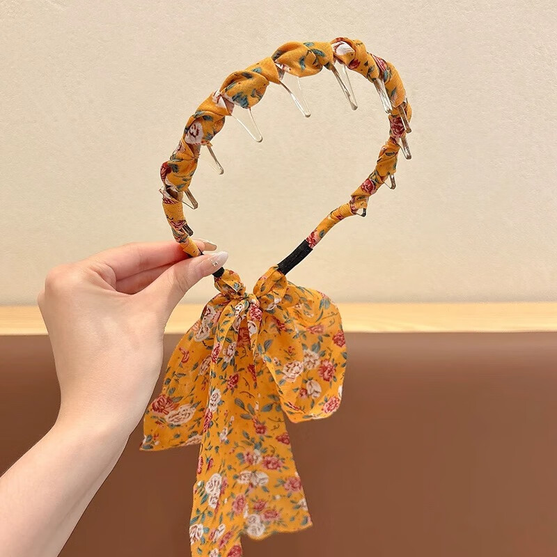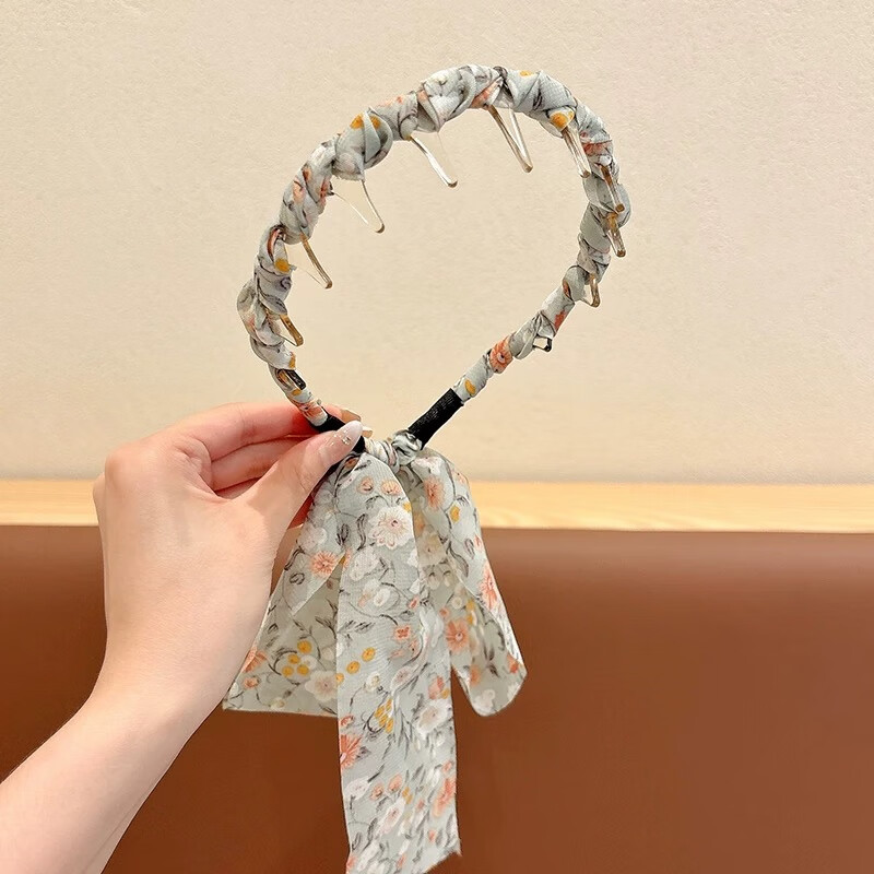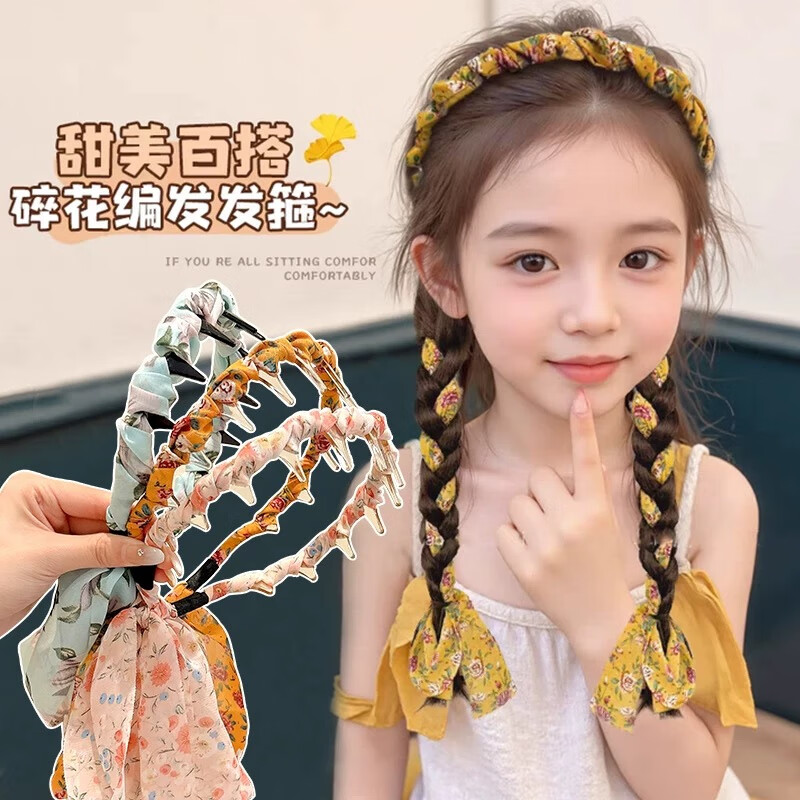 【甄选厂家】高级感田园风复古齿梳发箍儿童外戴日常编发飘带头箍 03【绿色碎花】