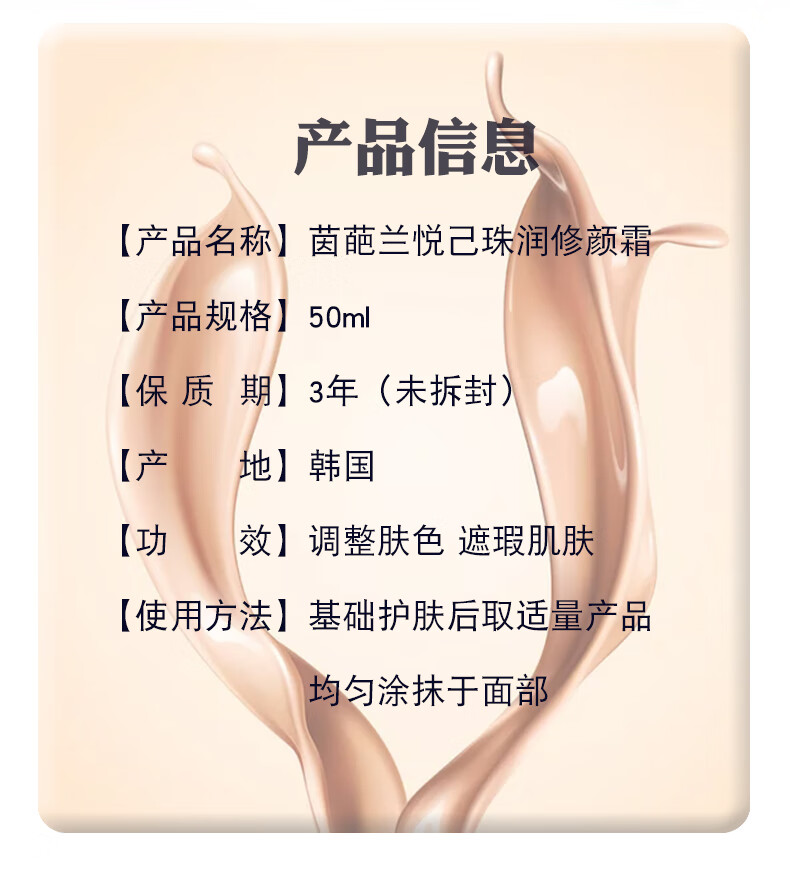 MiSS FACE茵葩兰悦己珠润修颜霜隔离防晒遮瑕三合一BB霜粉底液保湿女进口 悦己珠润修颜霜BB霜50ml