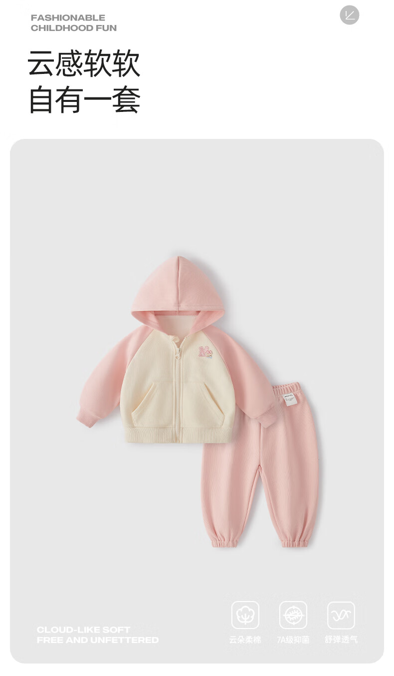 JELLYBABY【2026春上新】儿童春季套装宝宝休闲连帽男童新款两件套女童衣服 粉色 110