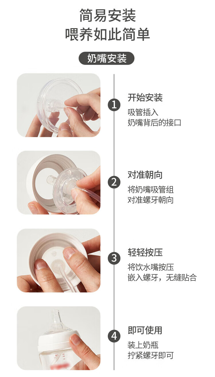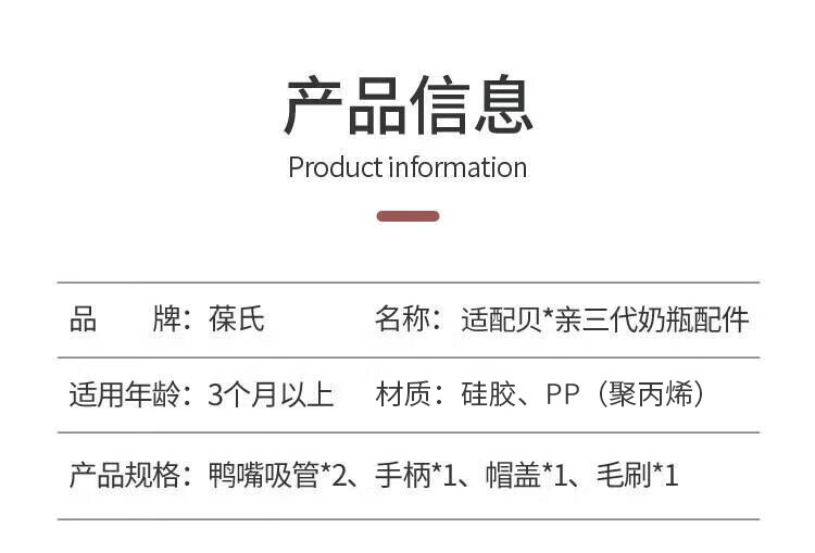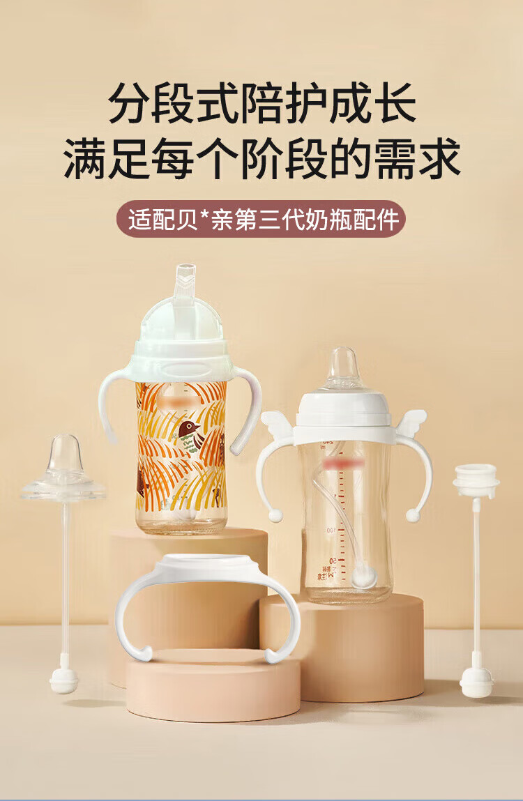 葆氏适配贝亲奶瓶配件第三代吸管宽口奶瓶把手毛刷组合学饮鸭嘴2支