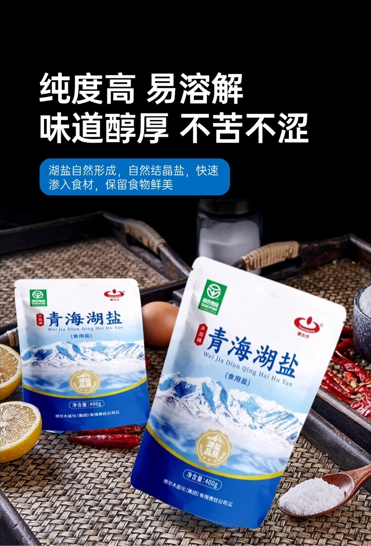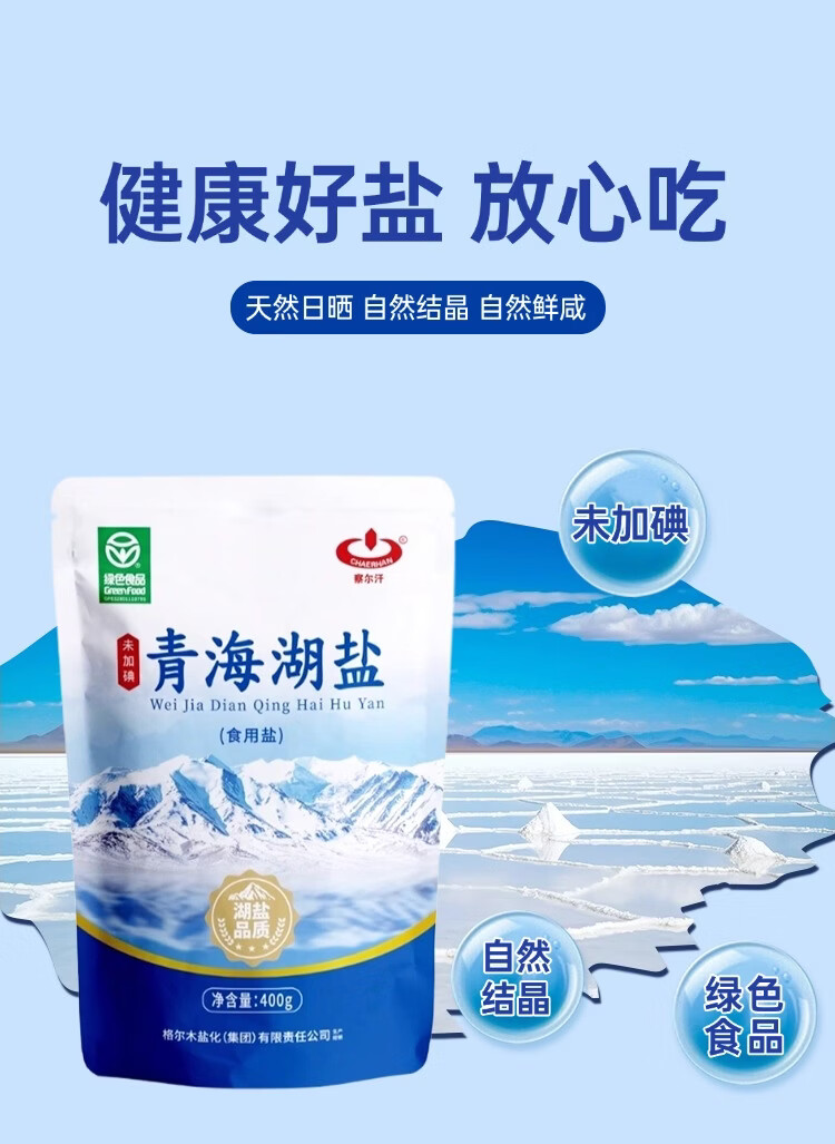 察尔汗青海湖盐400g*4袋【未加碘绿色食品】无抗结剂食用盐