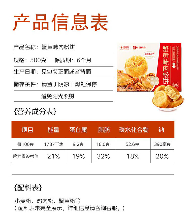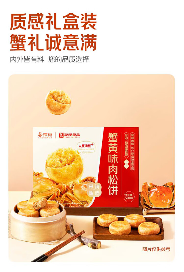 友臣x京觅 蟹黄味肉松饼500g京东超市自有品牌大闸蟹饼干糕点零食
