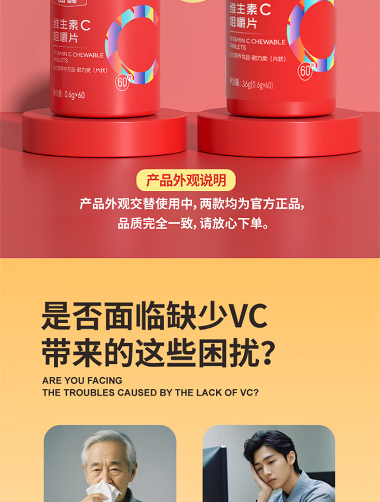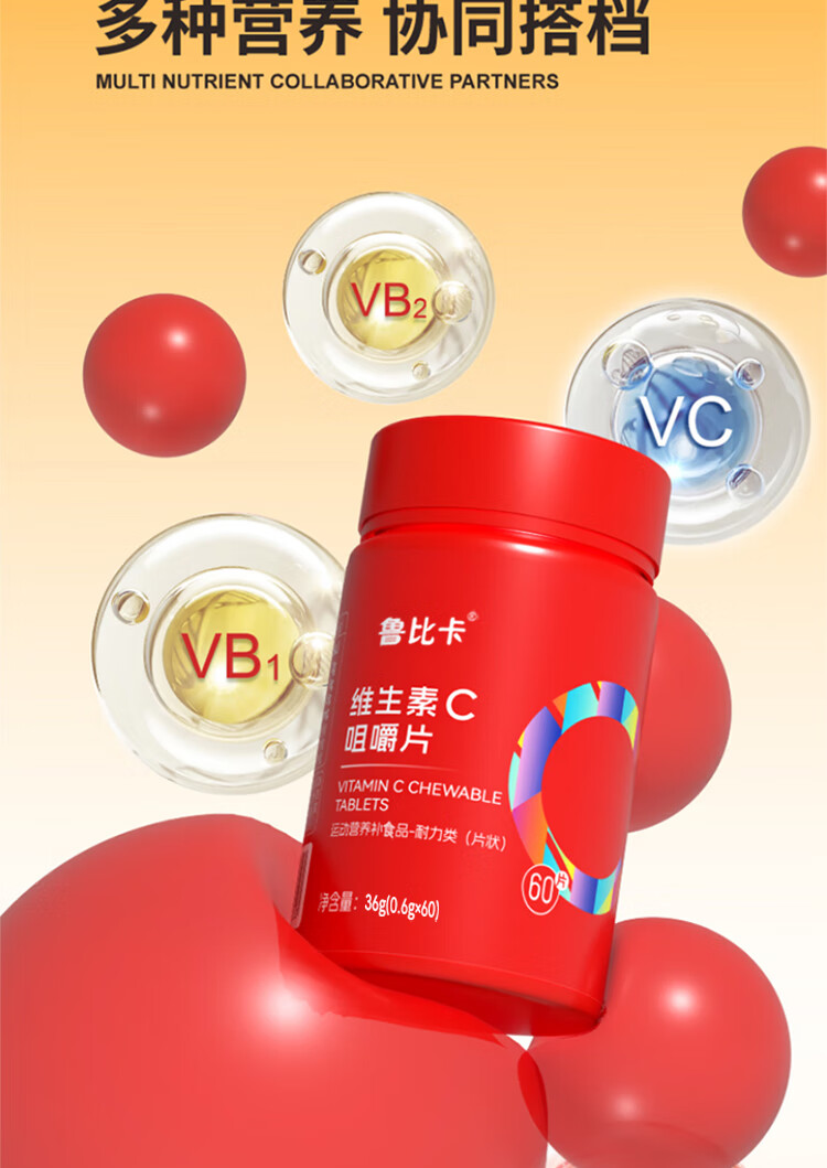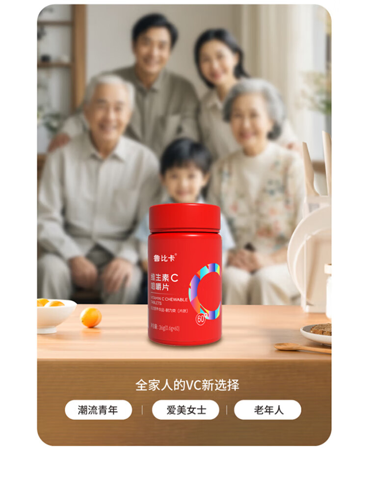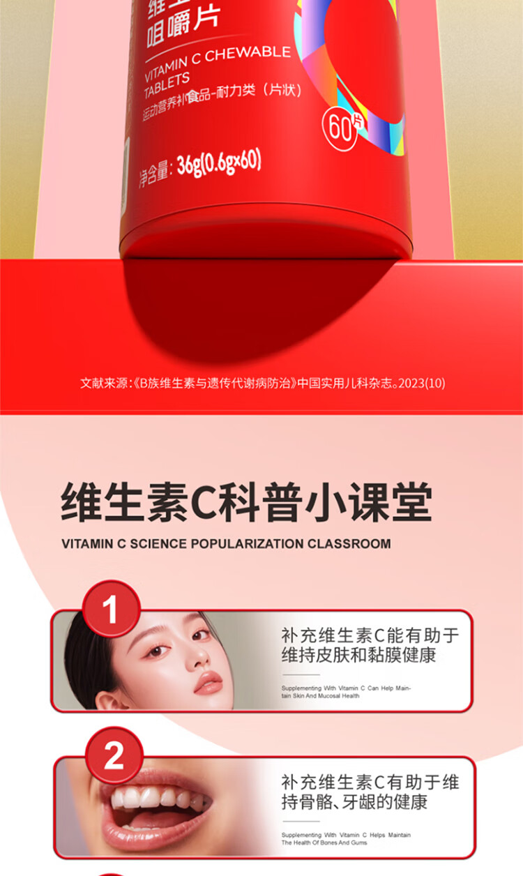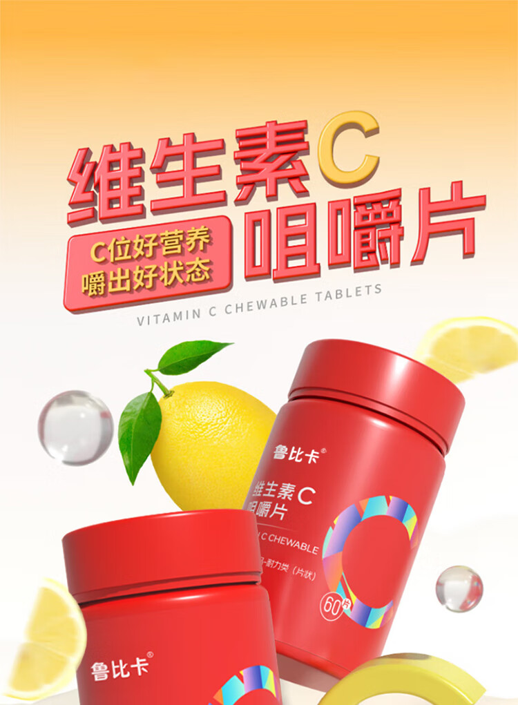 维生素C咀嚼片复合维生素片VC营养补充品60片装 60片*1瓶