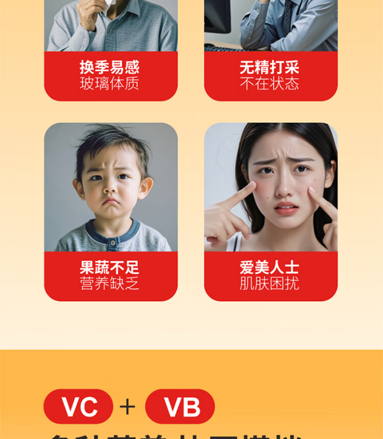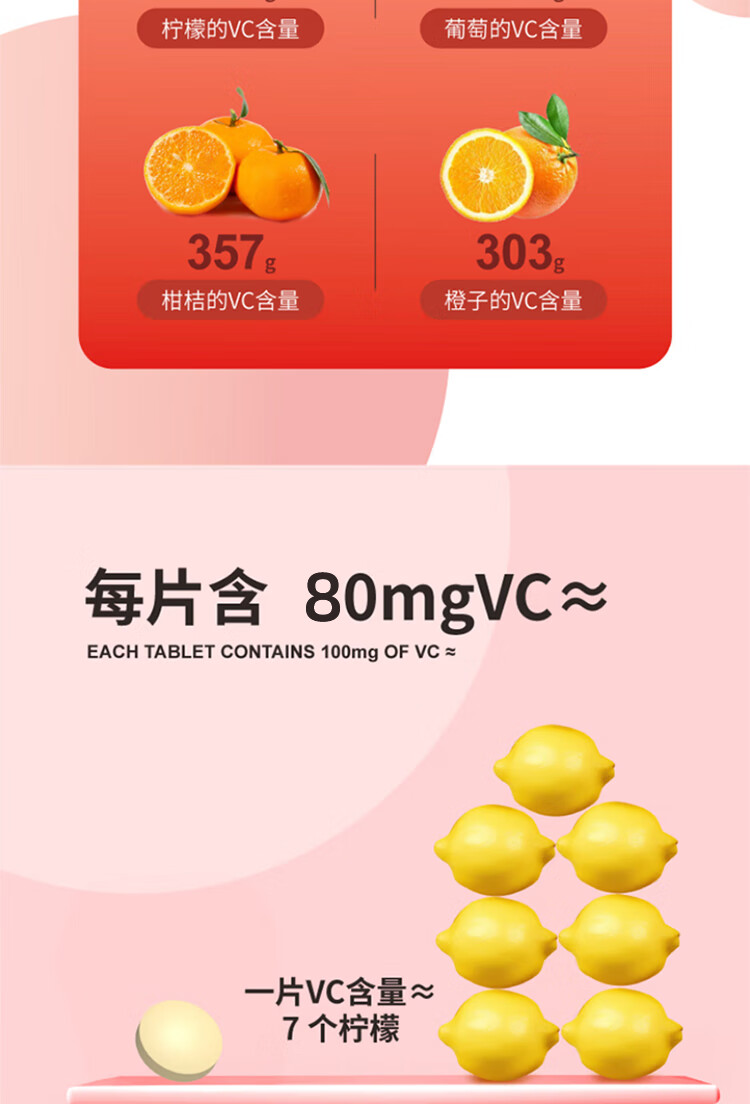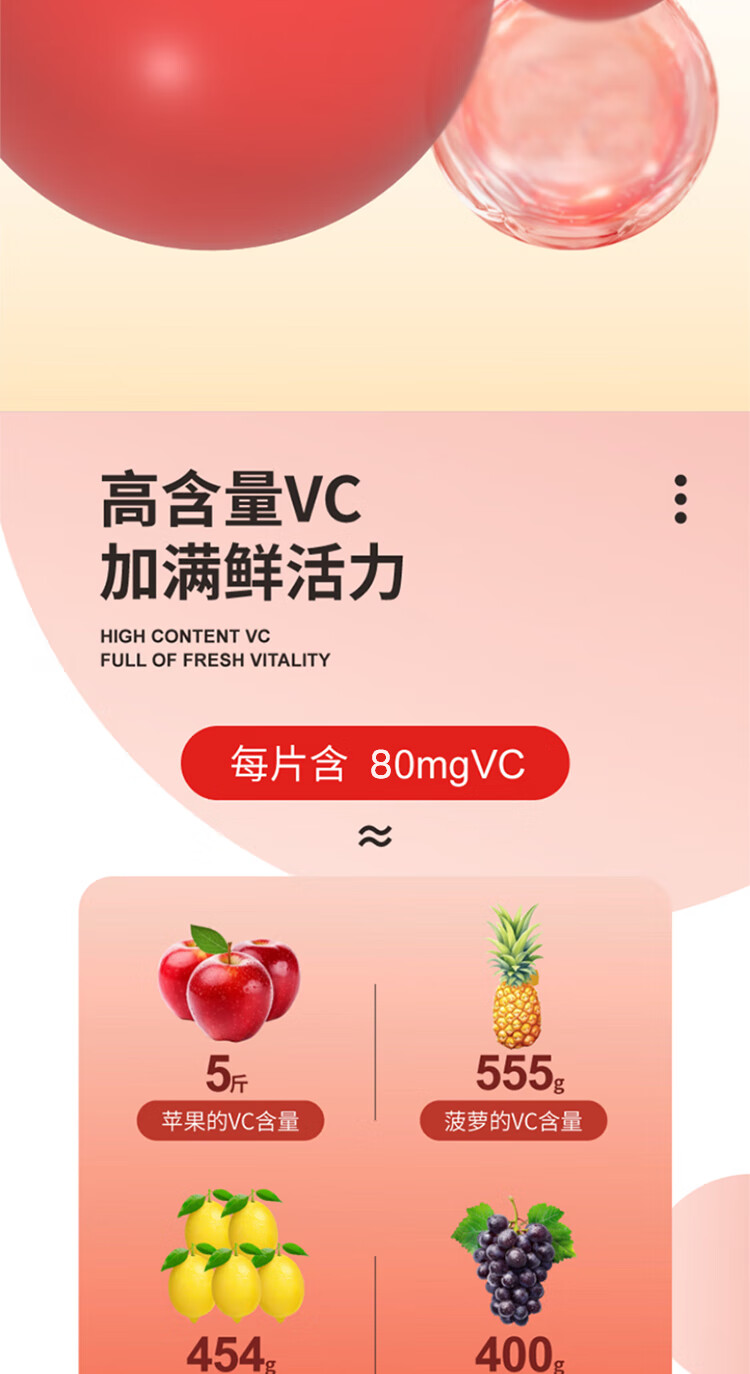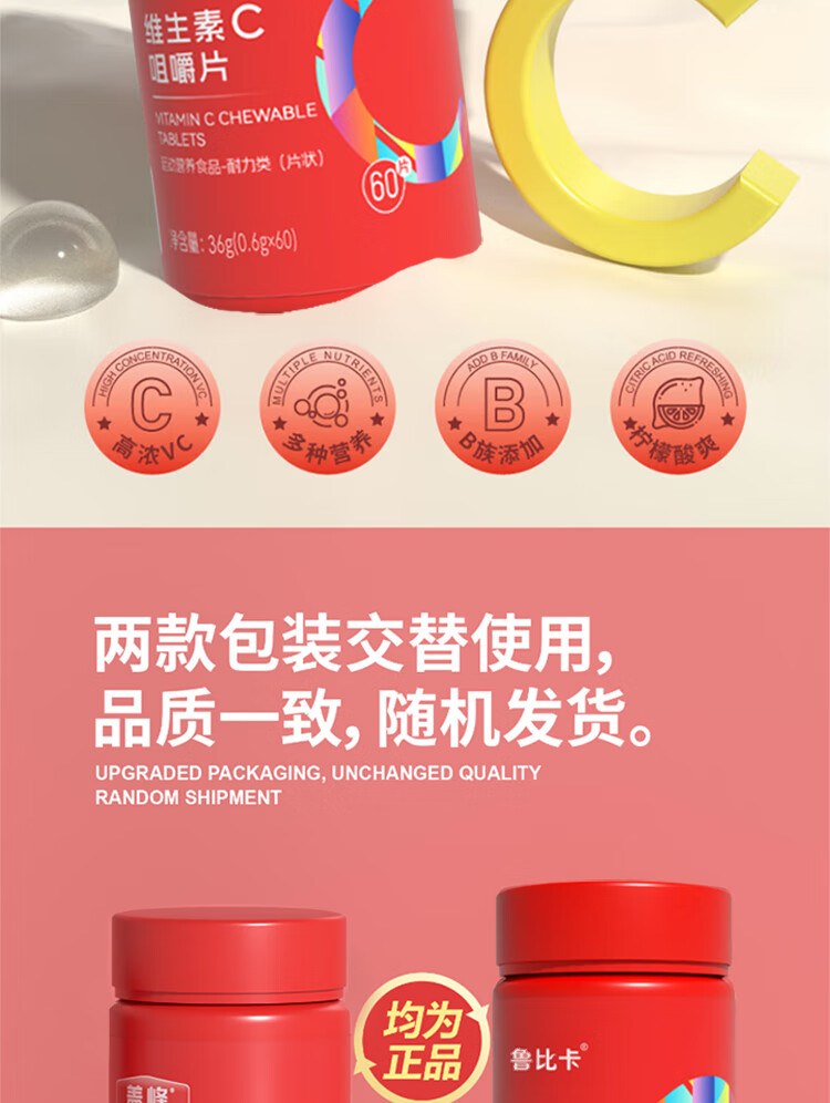 维生素C咀嚼片复合维生素片VC营养补充品60片装 60片*1瓶