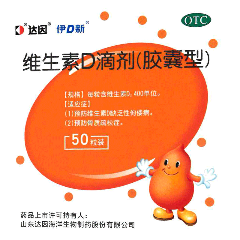 达因维生素D滴剂(胶囊型)50粒 预防维生素D缺乏性佝偻病预防骨质疏松症