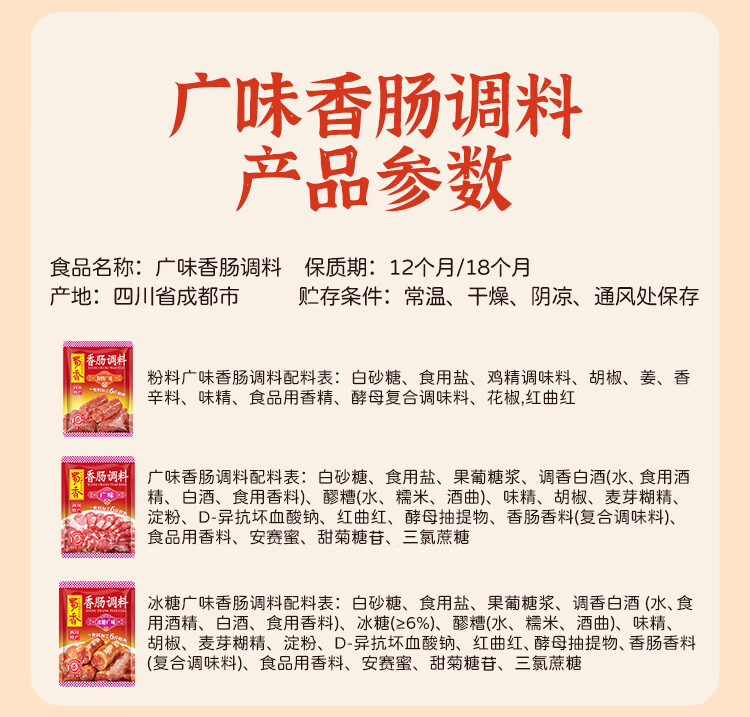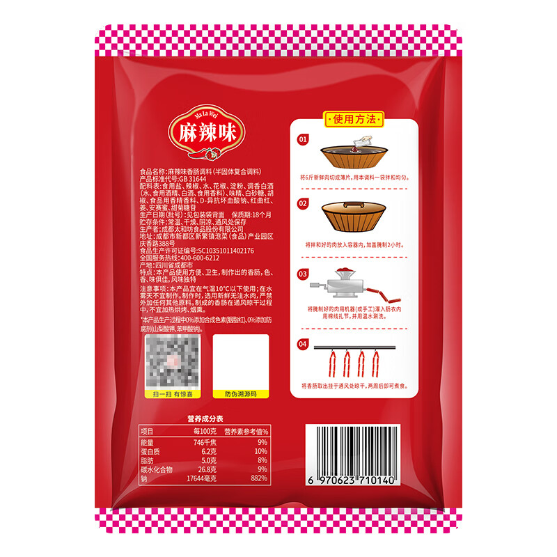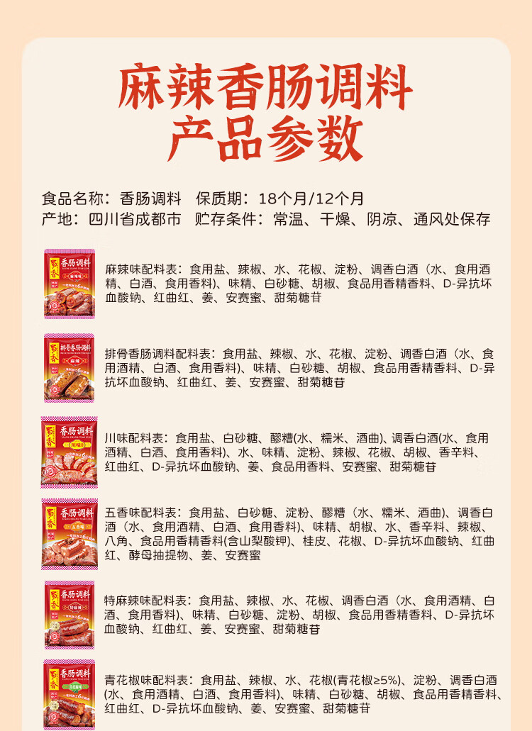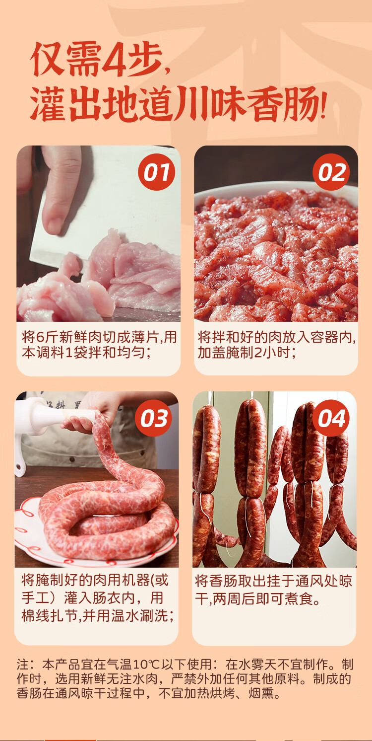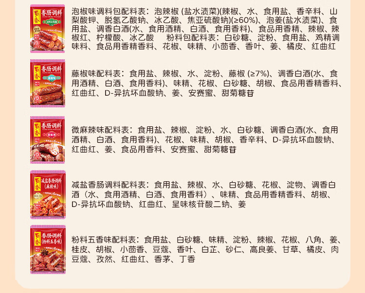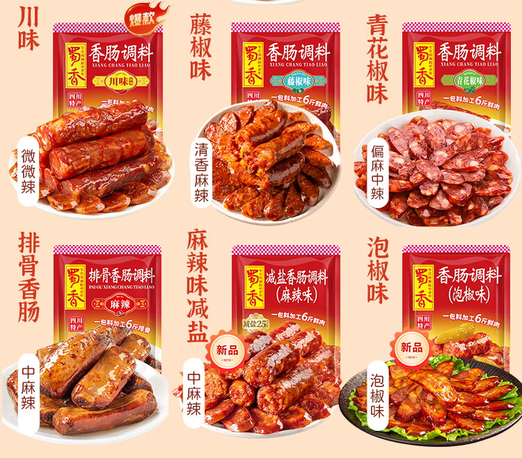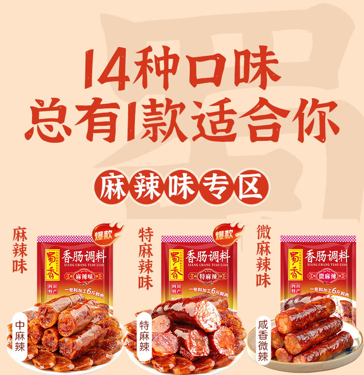 蜀香 麻辣味香肠调料200g 家用自制四川特产腊肠调味料1袋可做6斤肉