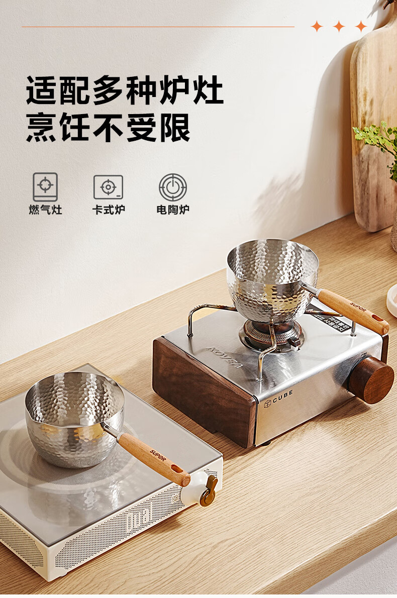 苏泊尔(SUPOR)泼油小锅 316不锈钢 家用热油淋油炝油浇油迷你平底锅勺KGF50DT10