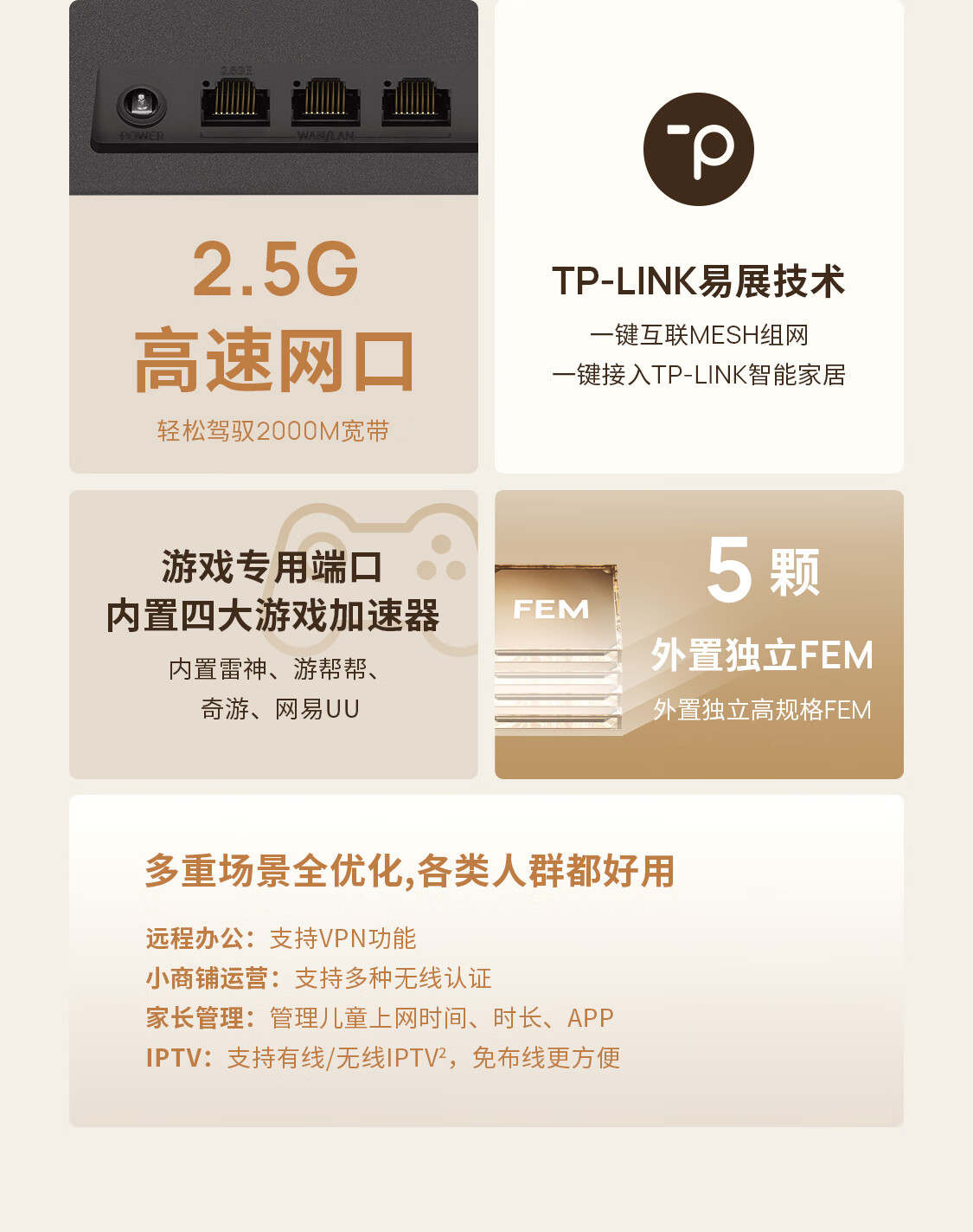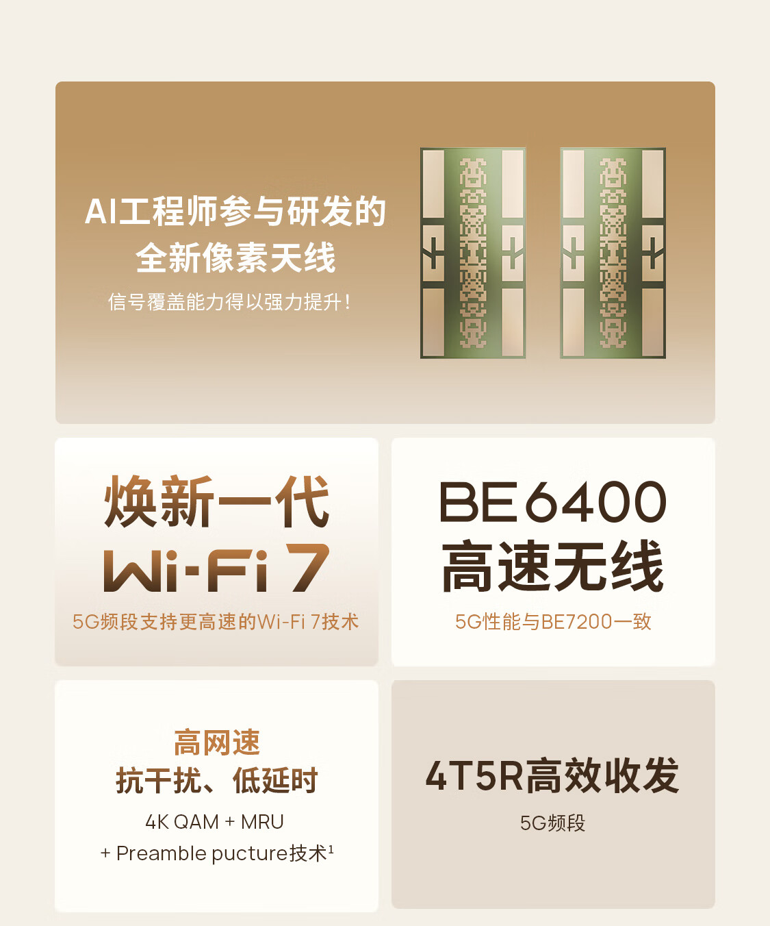普联(TP-LINK)大道路由器BE6400 5G WiFi7千兆双频家用高速穿墙 2.4G wifi6无线 2.5G网口 游戏加速 7DR6450