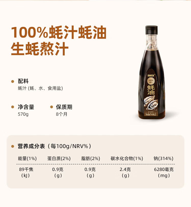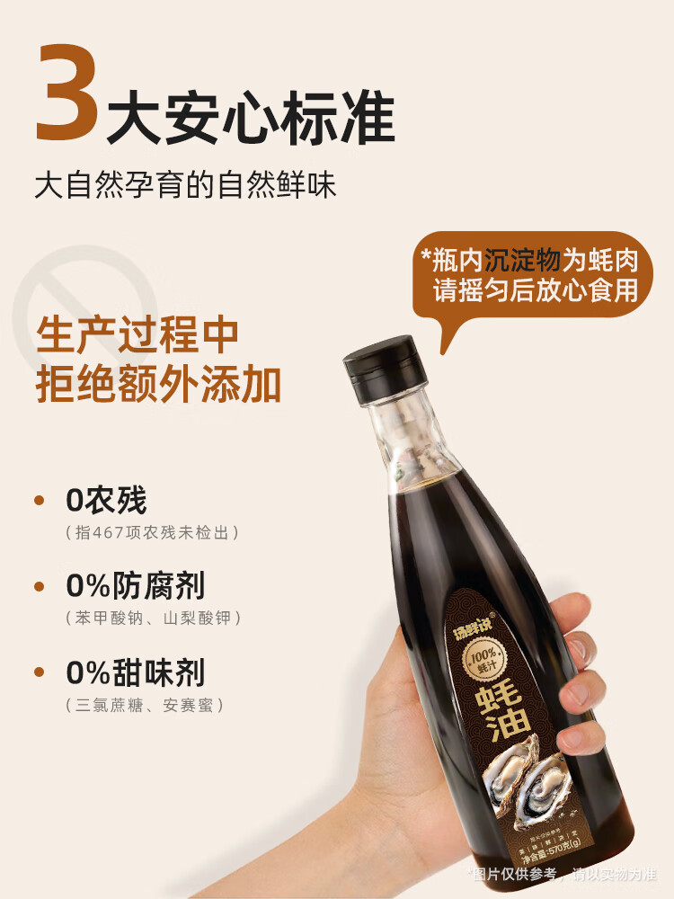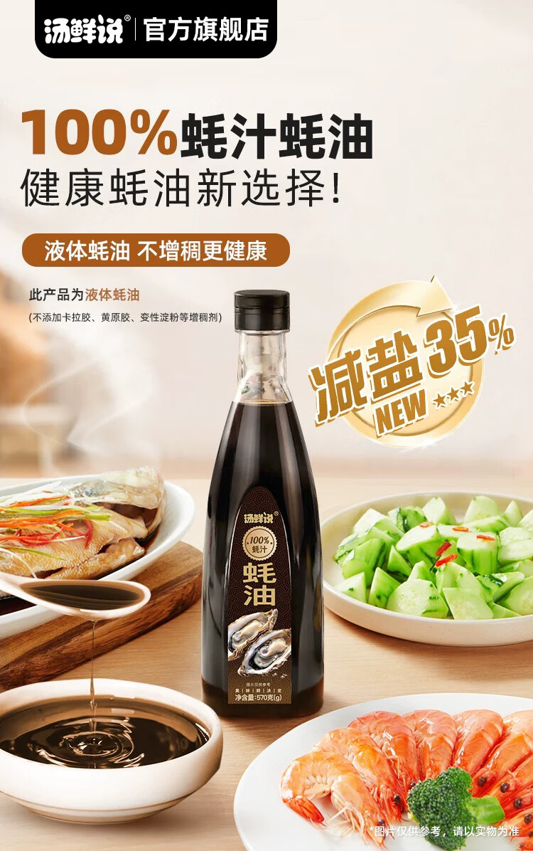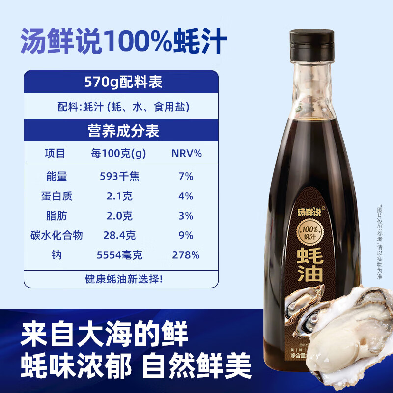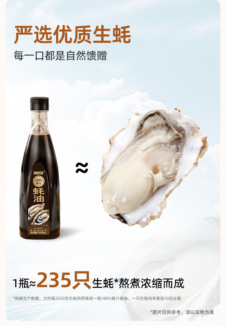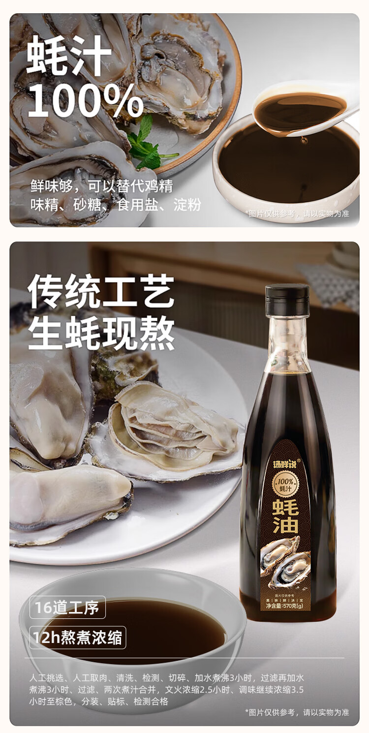 汤鲜说100%蚝汁蚝油高品质蚝汁蚝油零添加纯蚝汁新鲜生蚝现熬蚝汁酱油醋 100%蚝汁蚝油570g*2瓶