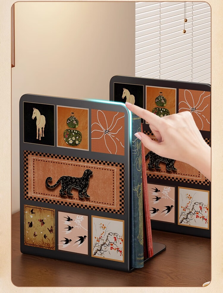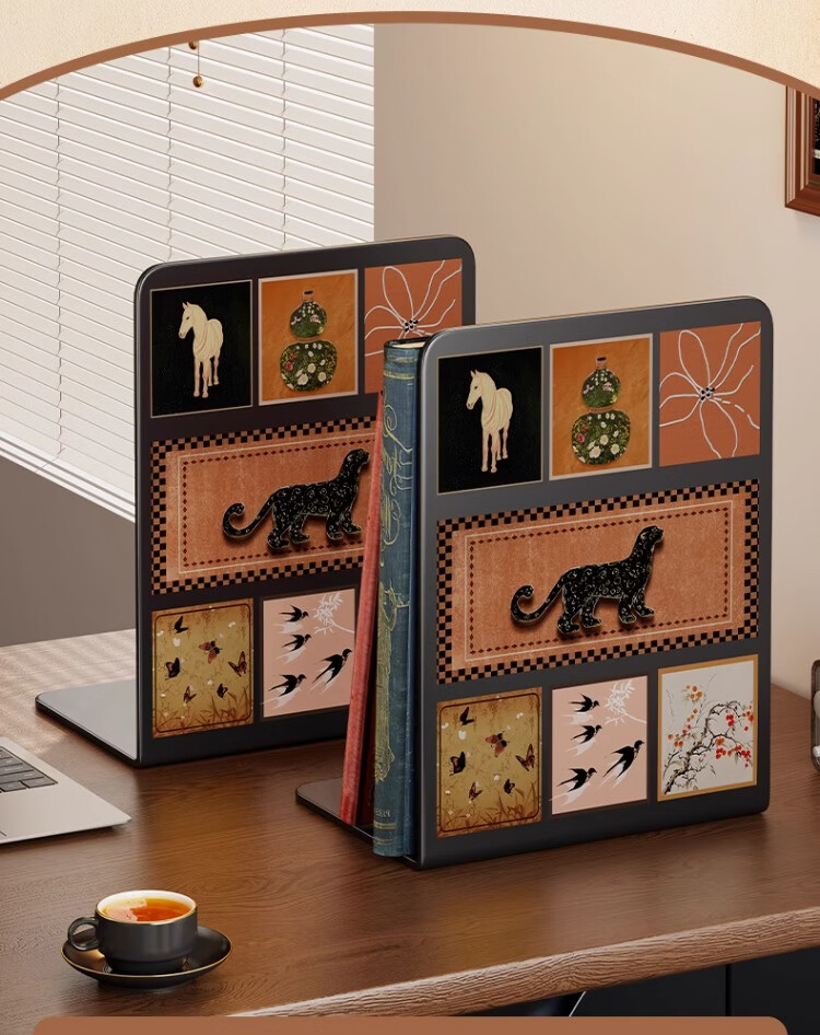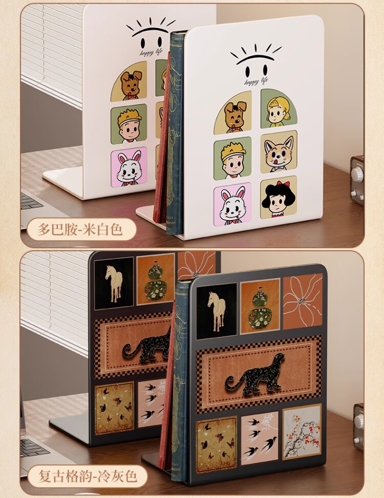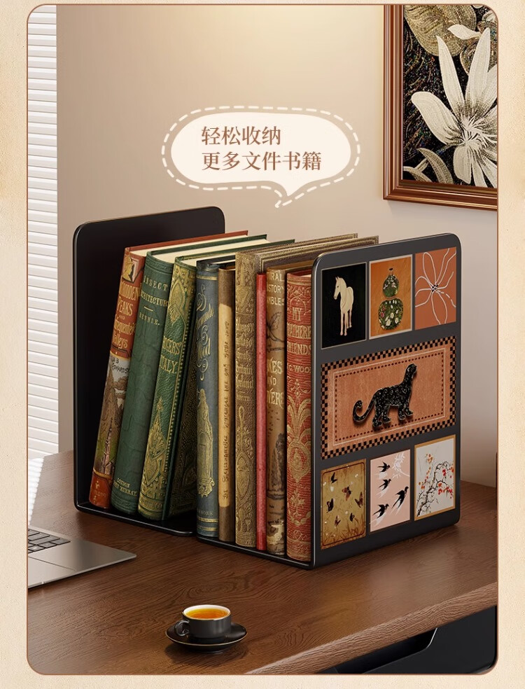 尔思家桌面置物架书立书架简易立式架子置物架书桌收纳架办公桌文件架 复古格韵 黑色加大号-2片