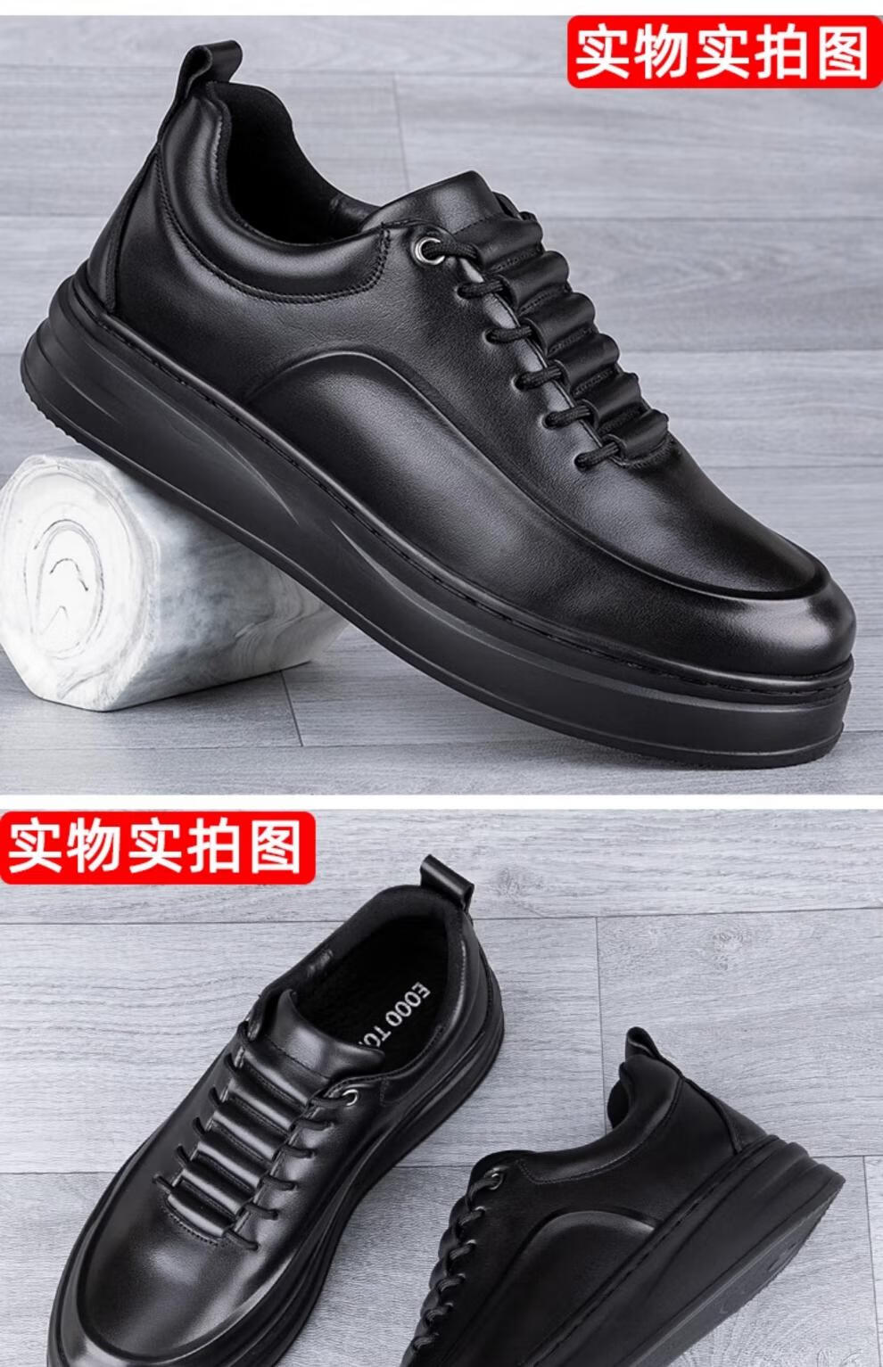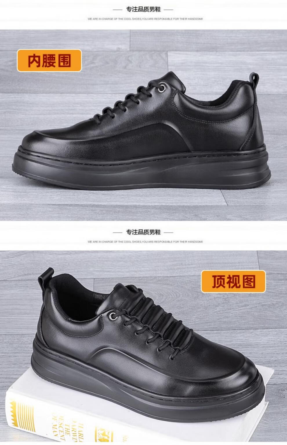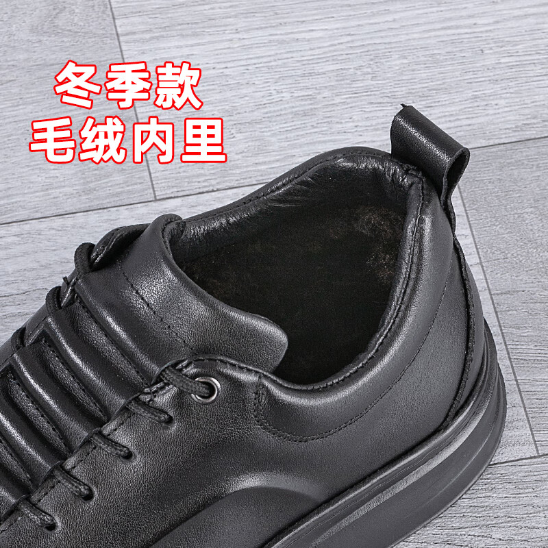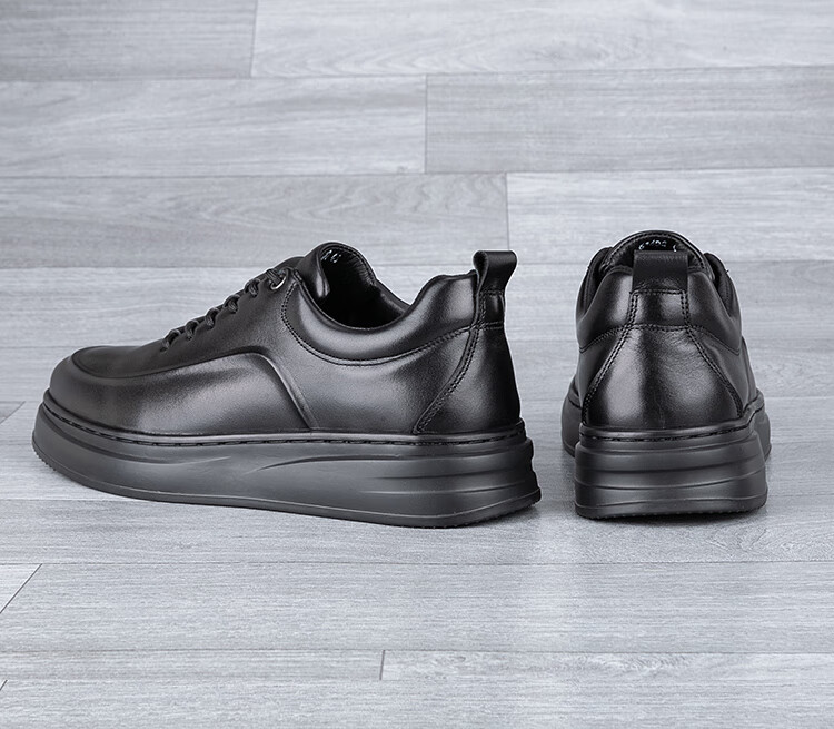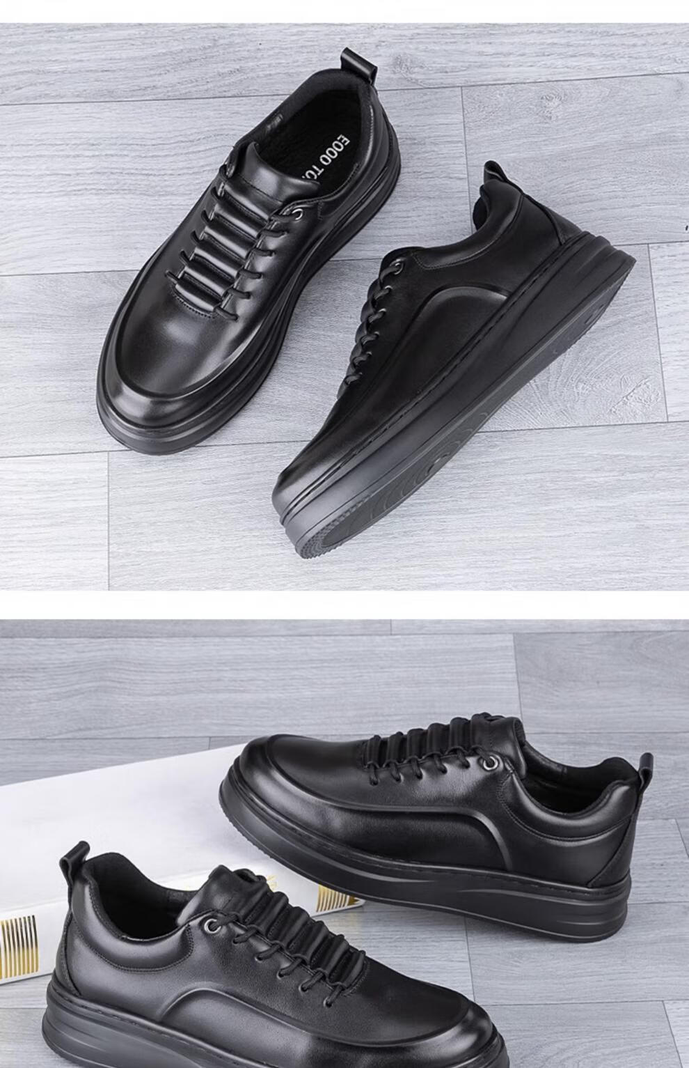 稻草人(MEXICAN)真皮男鞋头层牛皮秋季新款轻便软厚底黑潮鞋板鞋男士运动休闲皮鞋 黑色-四季款 37 标准皮鞋码