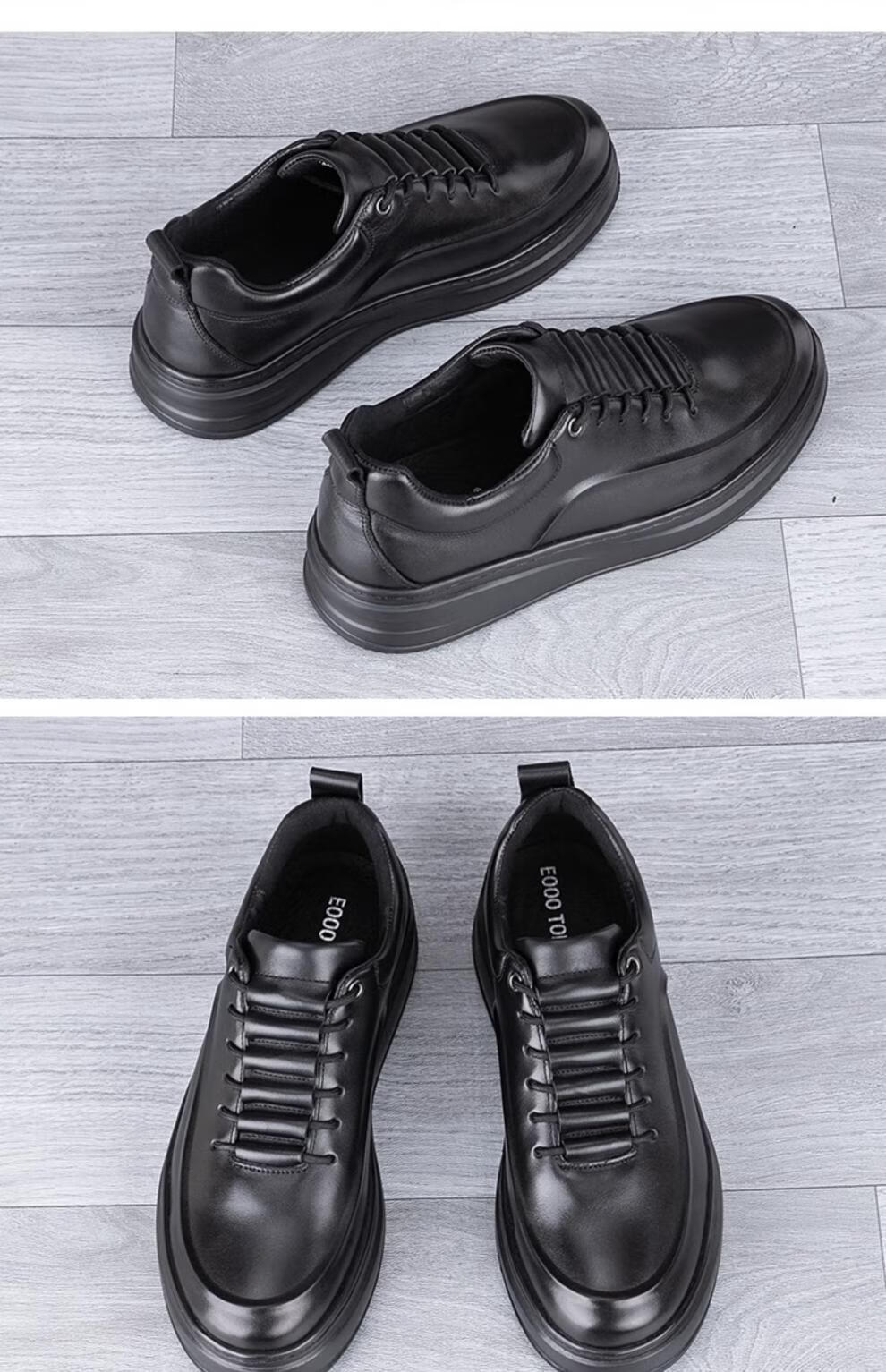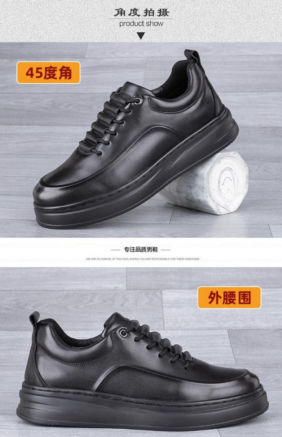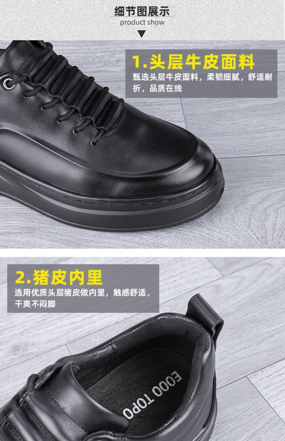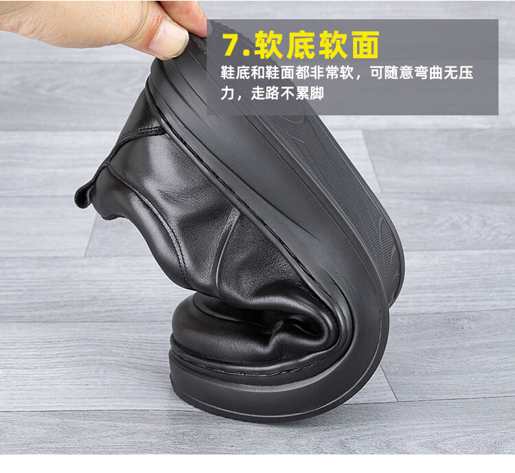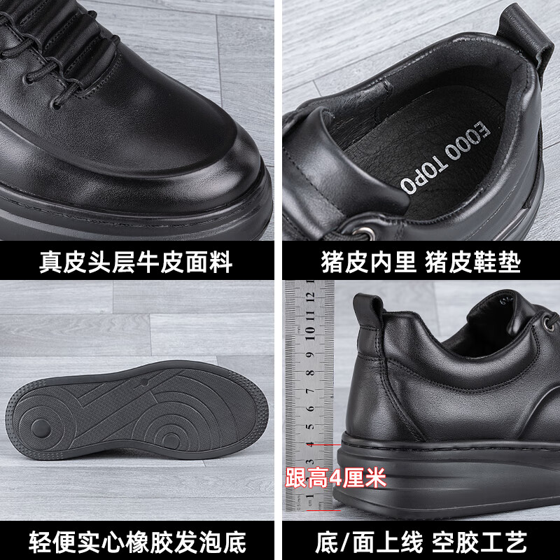 稻草人(MEXICAN)真皮男鞋头层牛皮秋季新款轻便软厚底黑潮鞋板鞋男士运动休闲皮鞋 黑色-四季款 37 标准皮鞋码