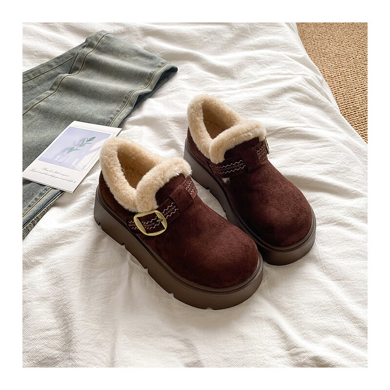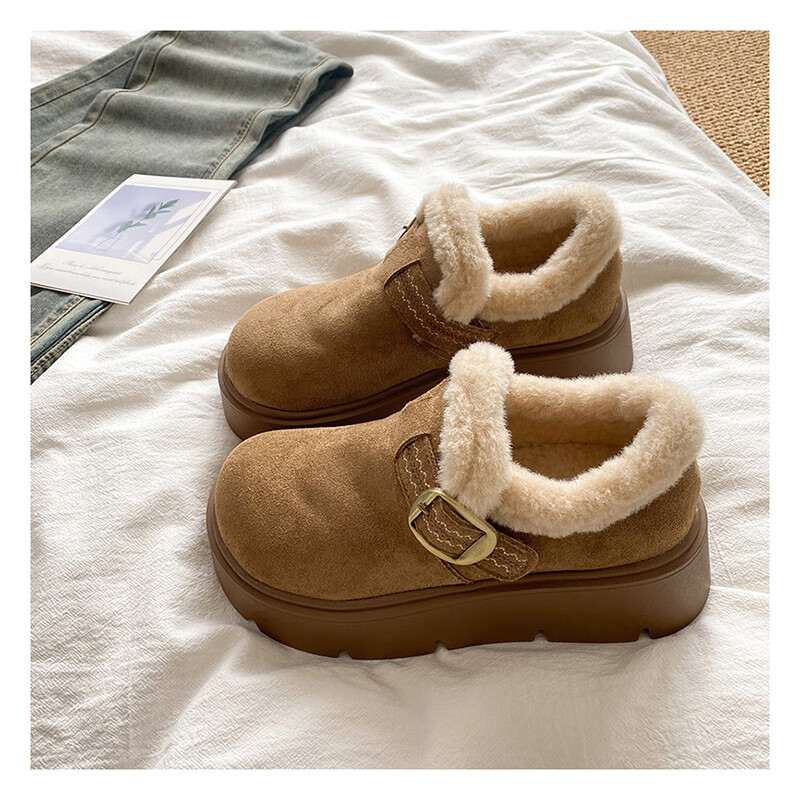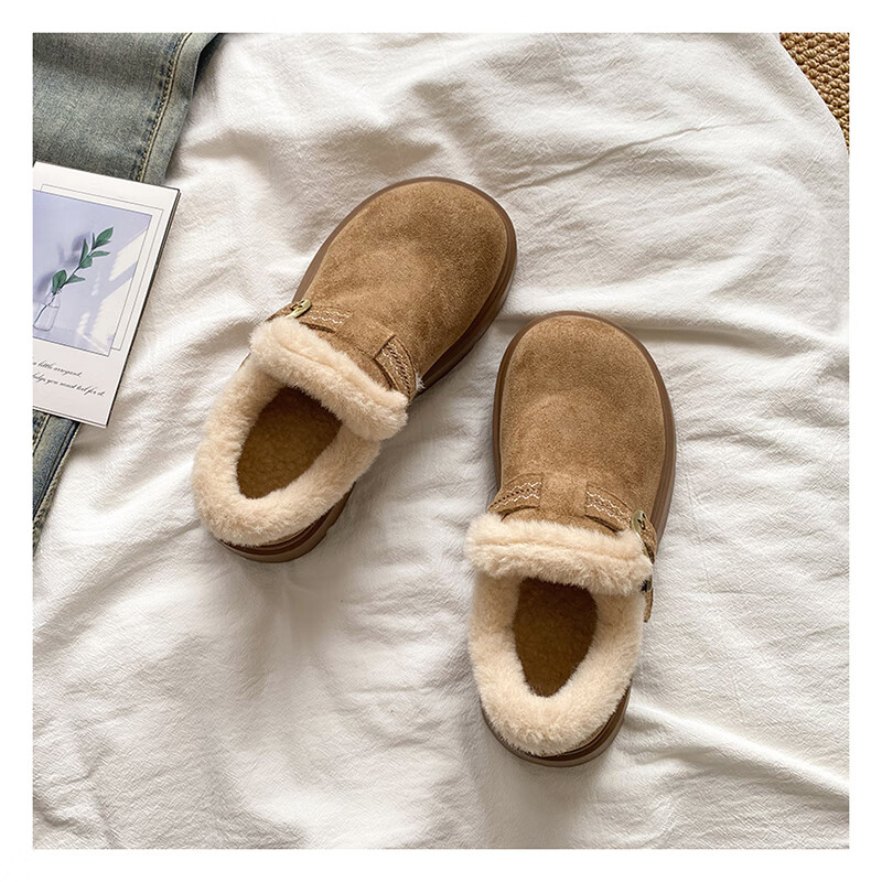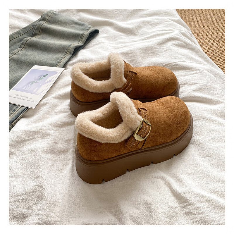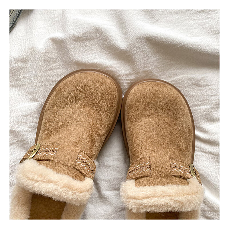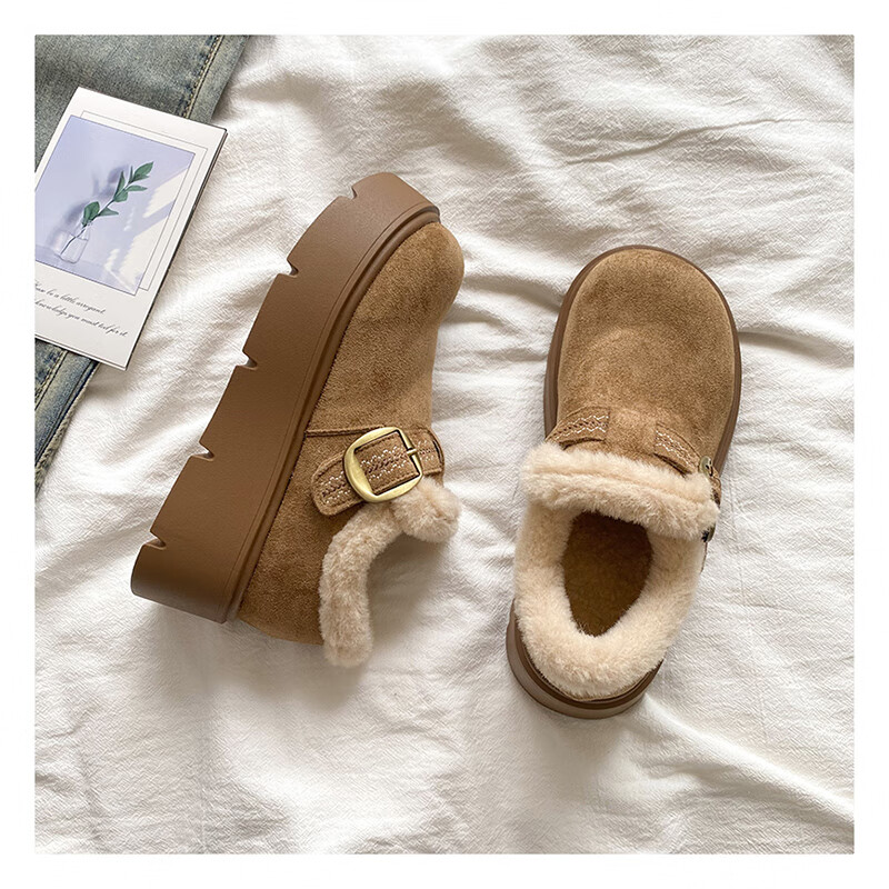星期六加绒全包勃肯鞋女鞋冬季保暖雪地靴2025新款厚底增高一脚蹬毛毛鞋 驼色 【厚底加绒】跟高4cm 38