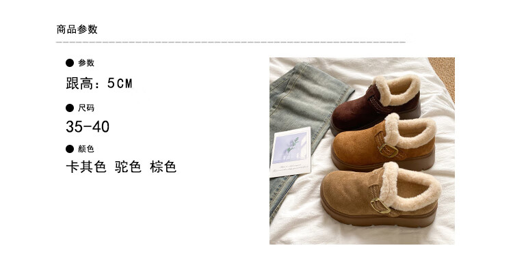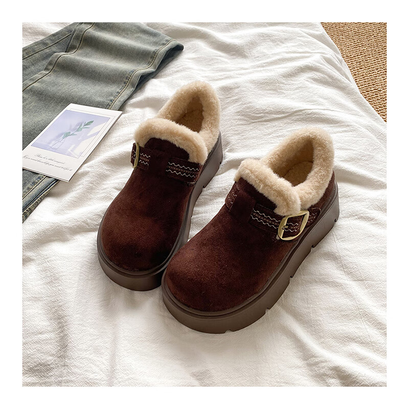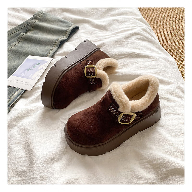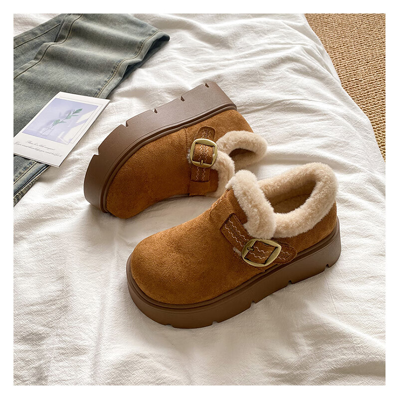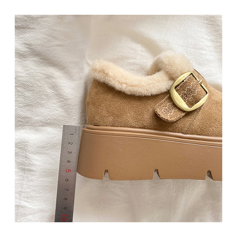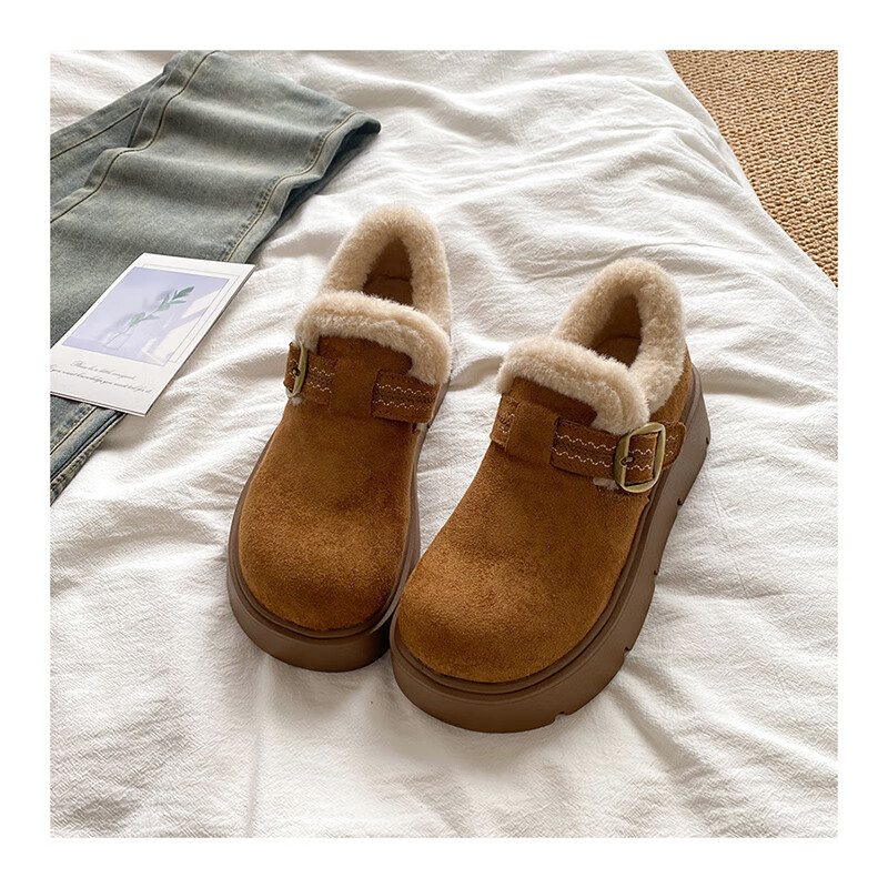 稻草人(MEXICAN)厚底勃肯鞋女2026新款冬季毛绒乐福鞋子小个子增高毛毛鞋加绒棉鞋 升级版 卡其色 【店主推荐】 35