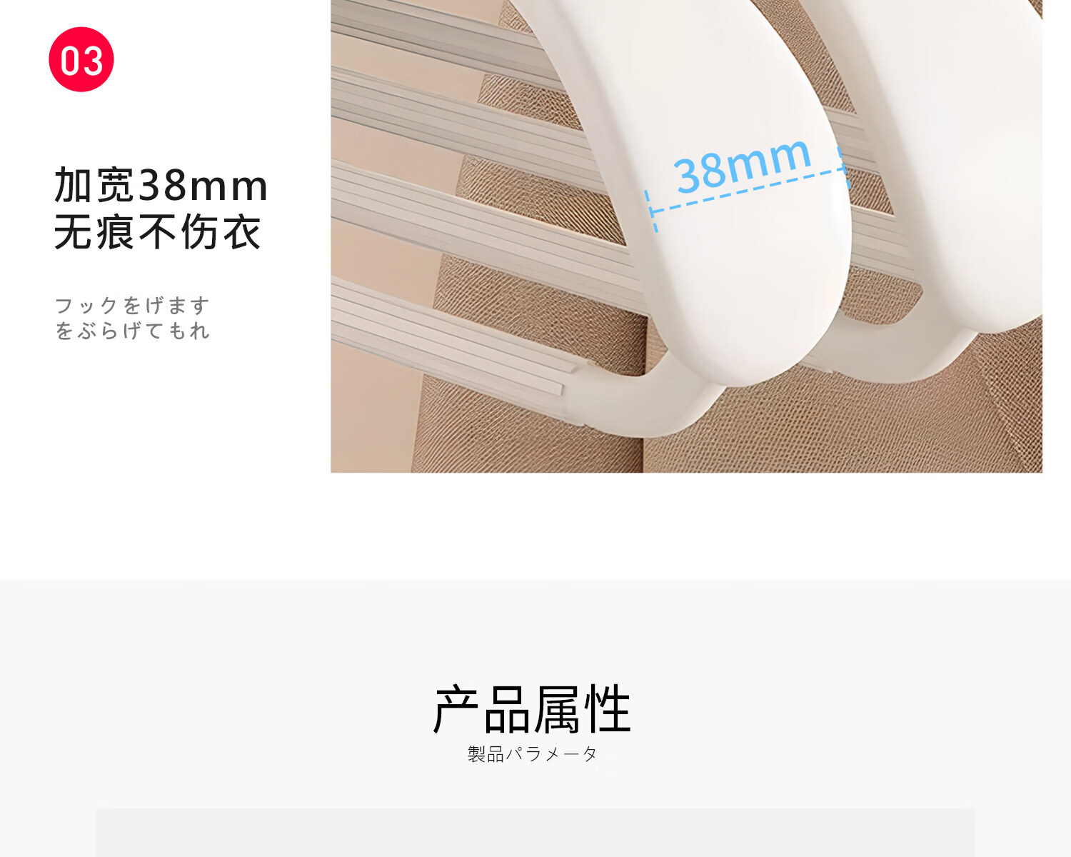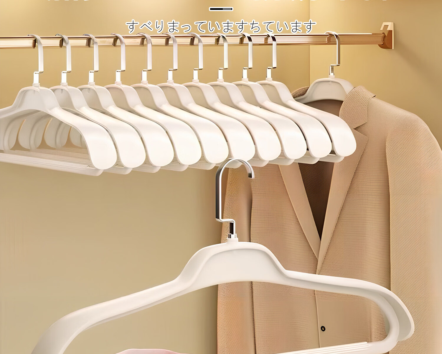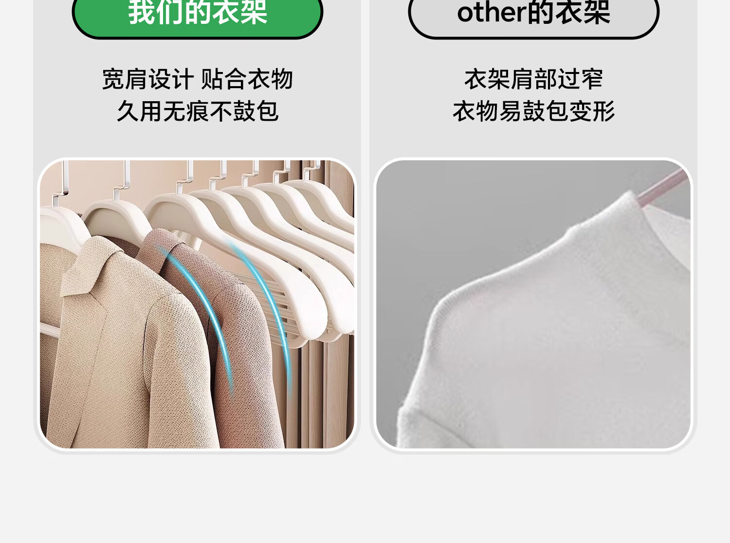 吱凡日本衣架家用挂衣无痕防肩角加粗加大衣服架子防滑晾衣撑加厚成人 象牙白【无痕防滑-高承重】 10个