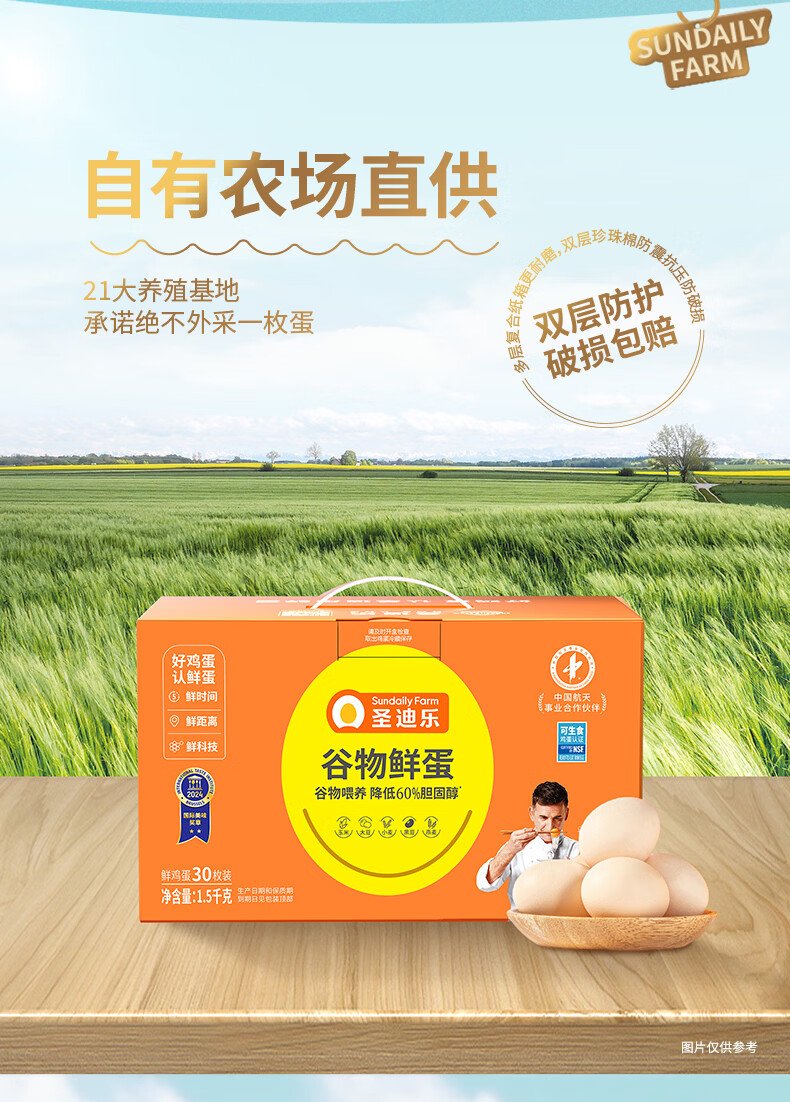 圣迪乐村谷物减胆固醇营养鲜鸡蛋30枚净重3斤礼盒装 京东自营生鲜鸡蛋