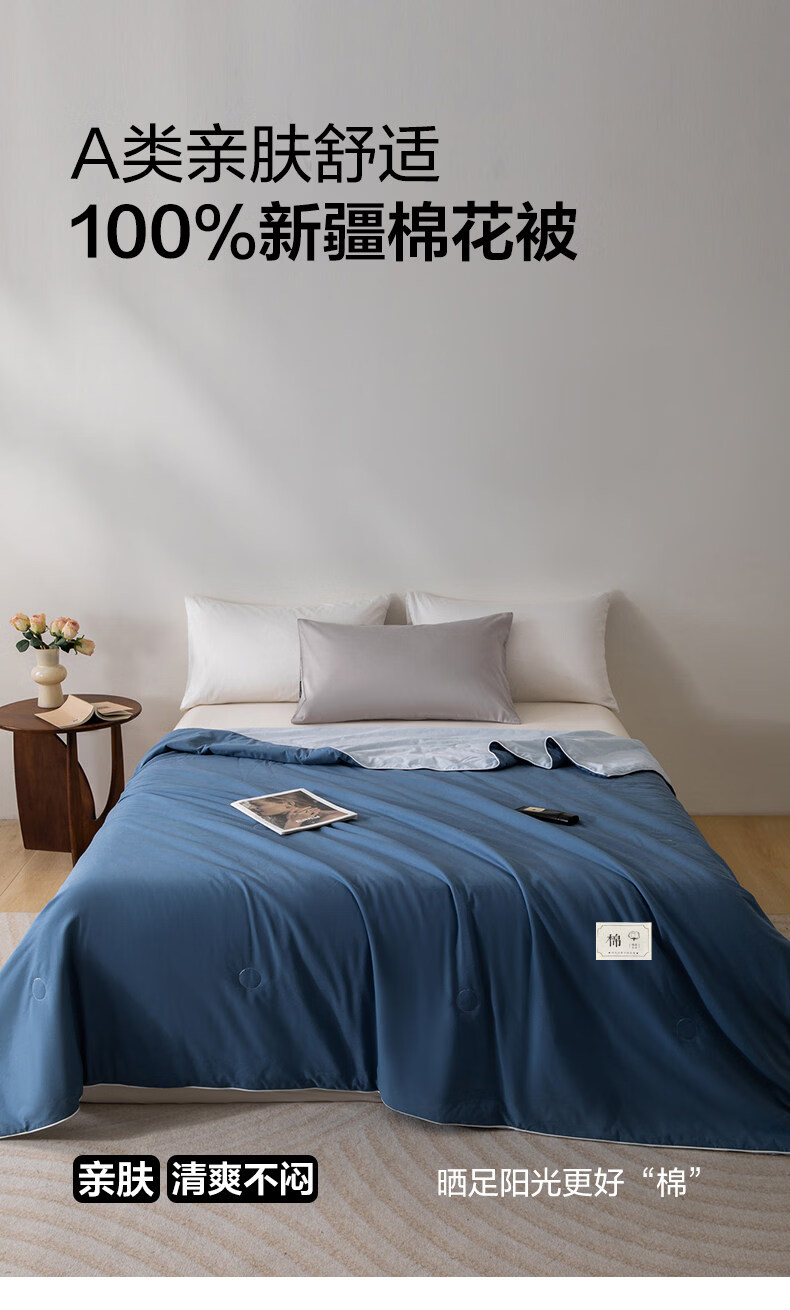 猫人(MiiOW)A类棉花夏凉被空调被200x230cm薄被子夏季宿舍单人夏被可机洗裸睡 岛屿蓝【A类可裸睡/100%新疆棉填充】 110x150cm-儿童夏被【可水洗机洗】