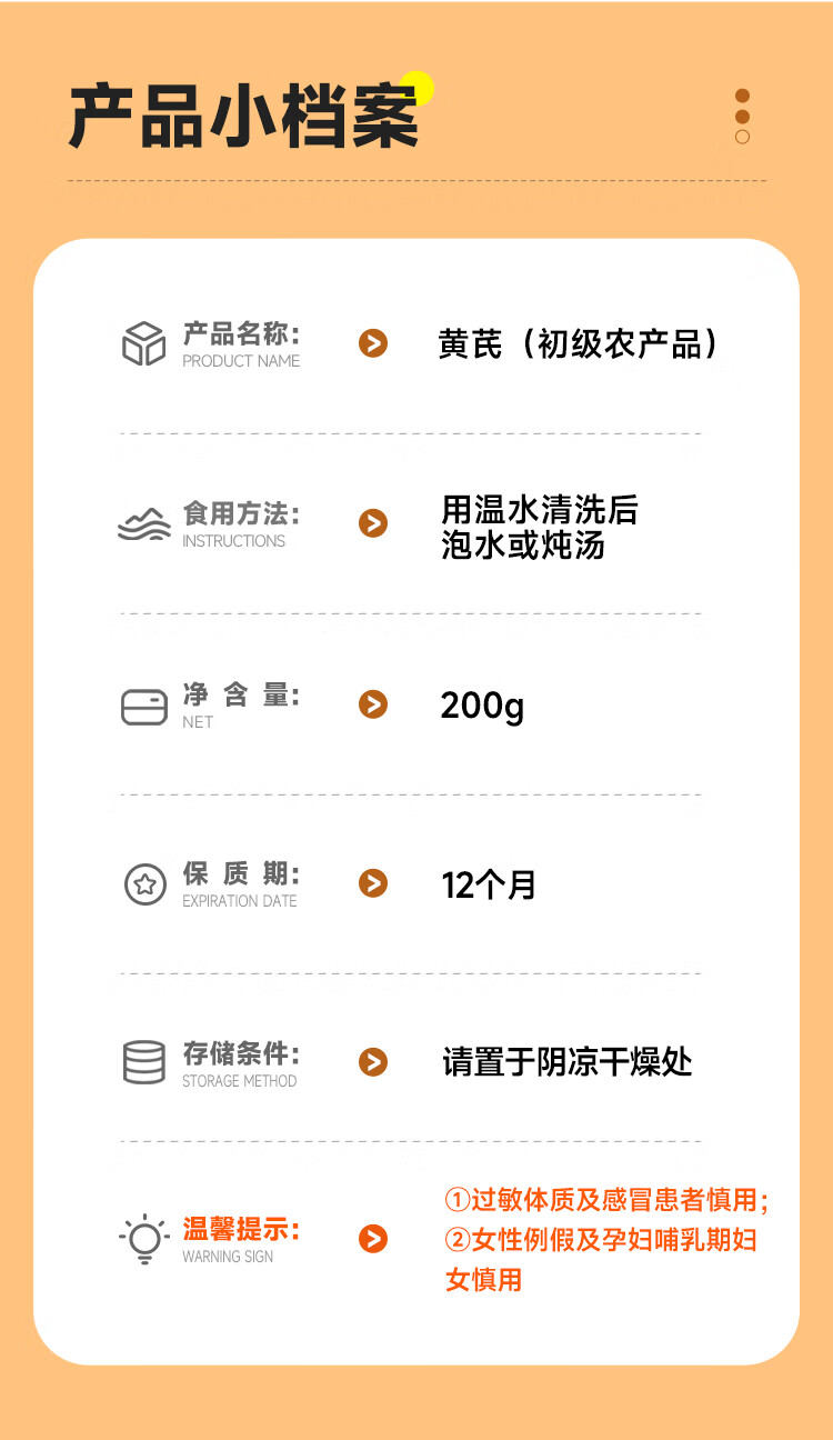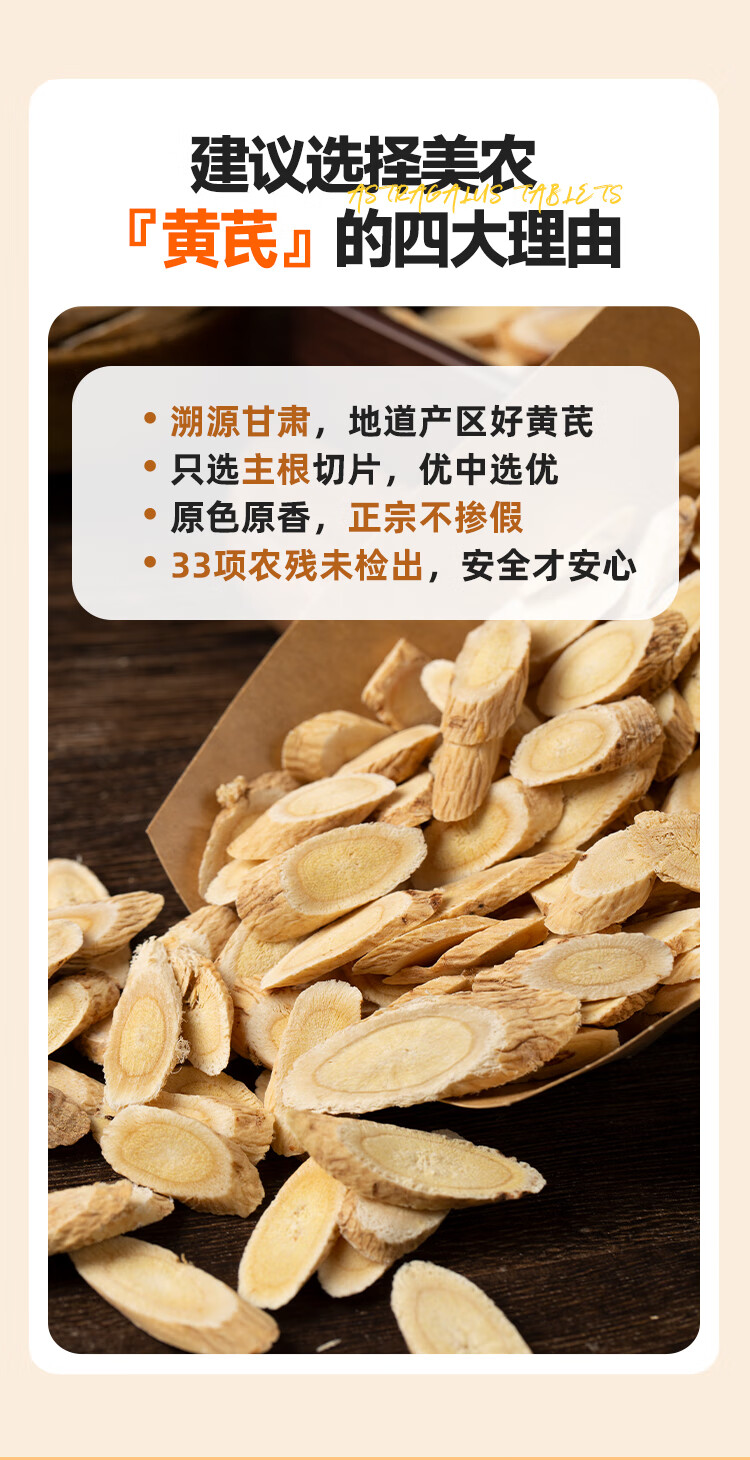 西域美农新货甘肃原色黄芪片 200g *罐 纯正豆香味浓郁滋补煲汤煮粥泡水