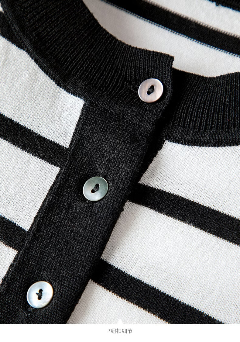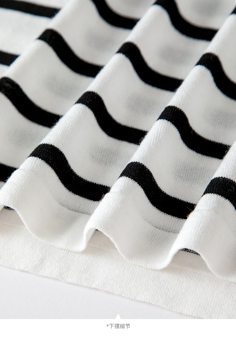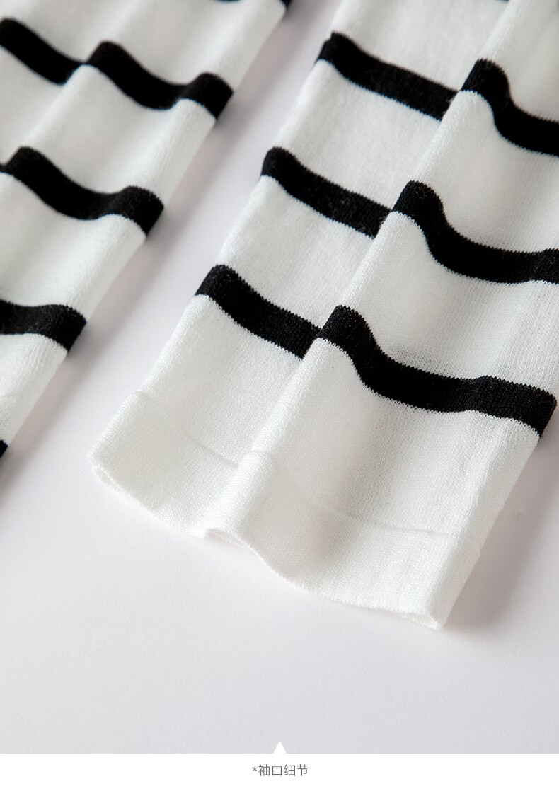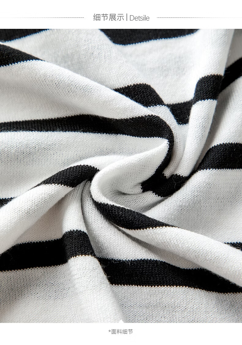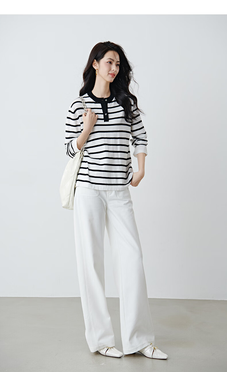 晚白【新品】2026春法式松弛感圆领条纹大码上衣软糯舒适莱赛尔针织衫 条纹 M