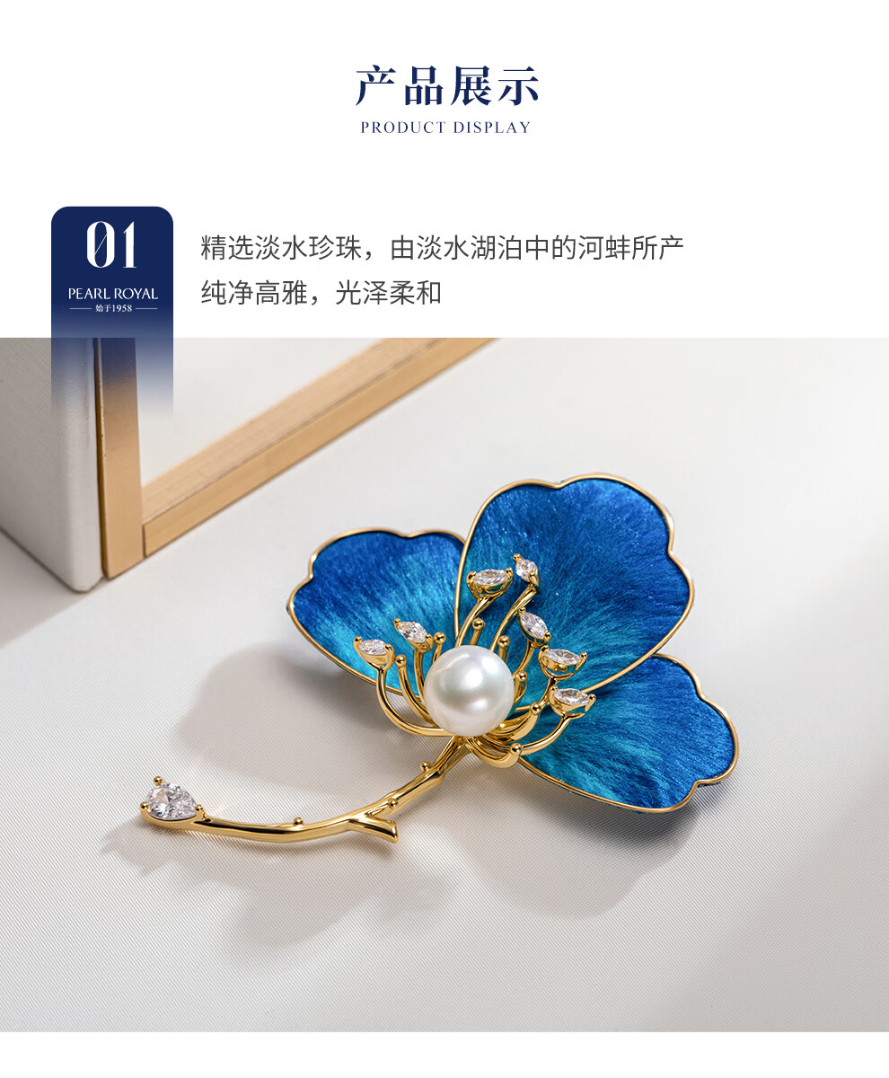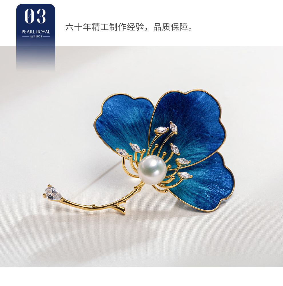 南珠宫丝绒花淡水珍珠胸针古风典雅新年礼物送妈妈 9.0-10.0mm