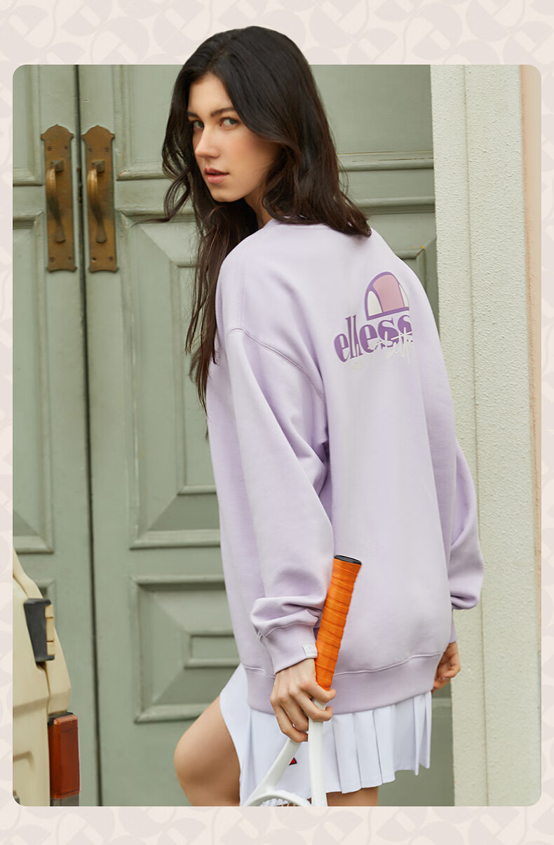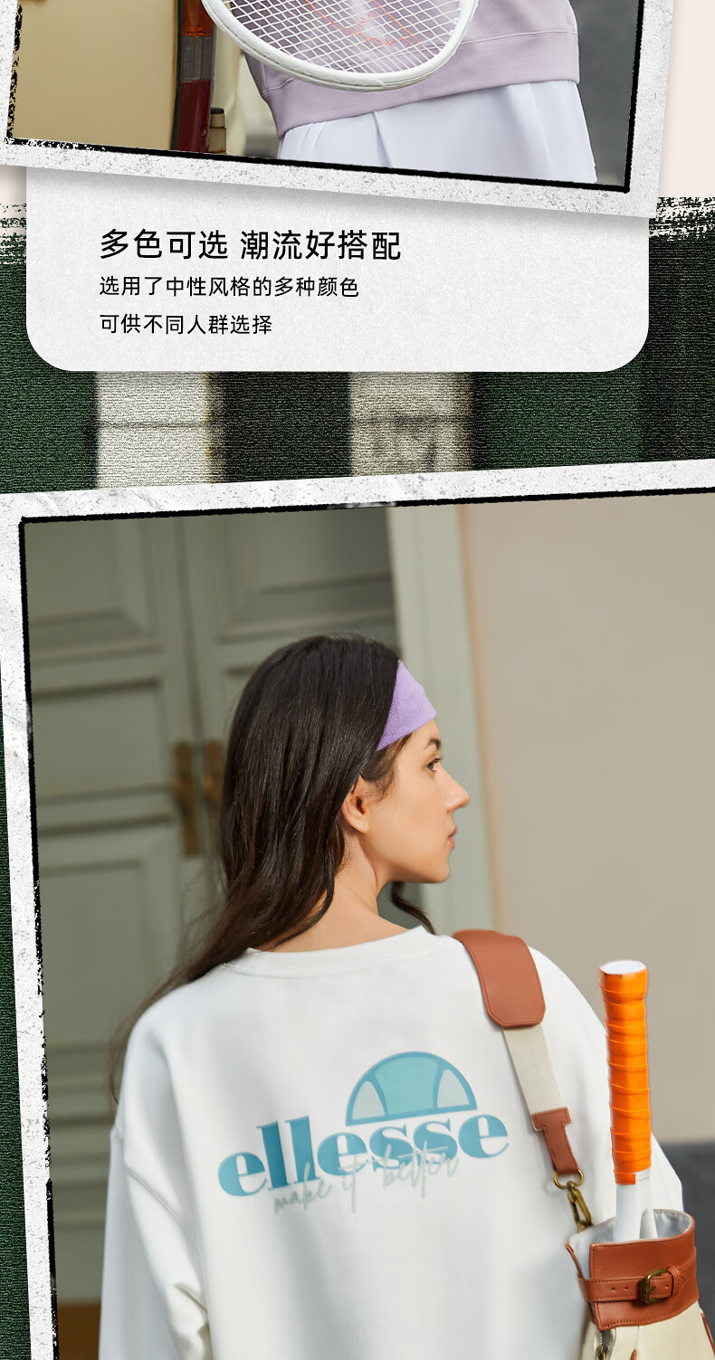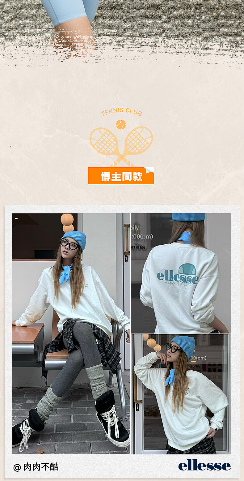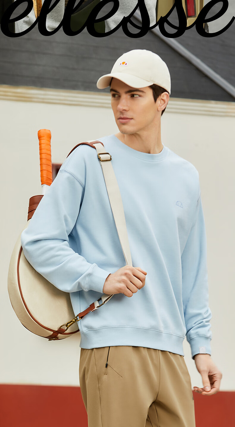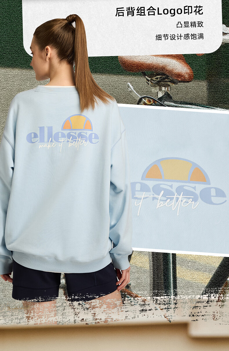 ellesse小贝壳情侣薄款卫衣男秋新款运动宽松上衣女 淡蓝色 S