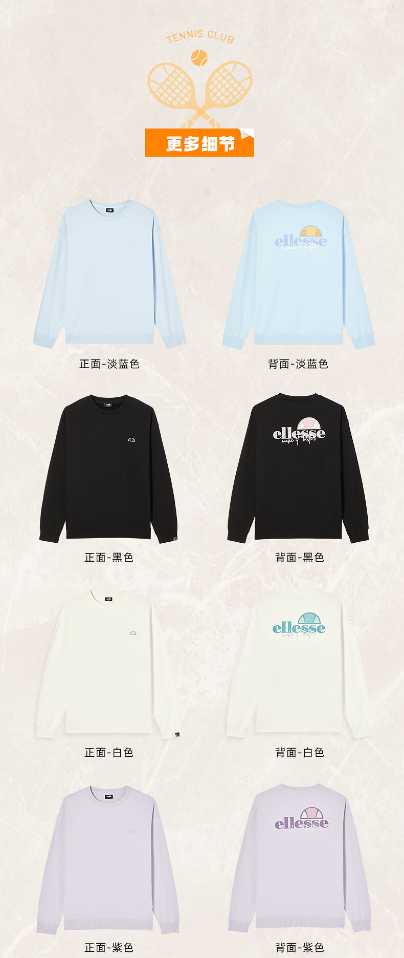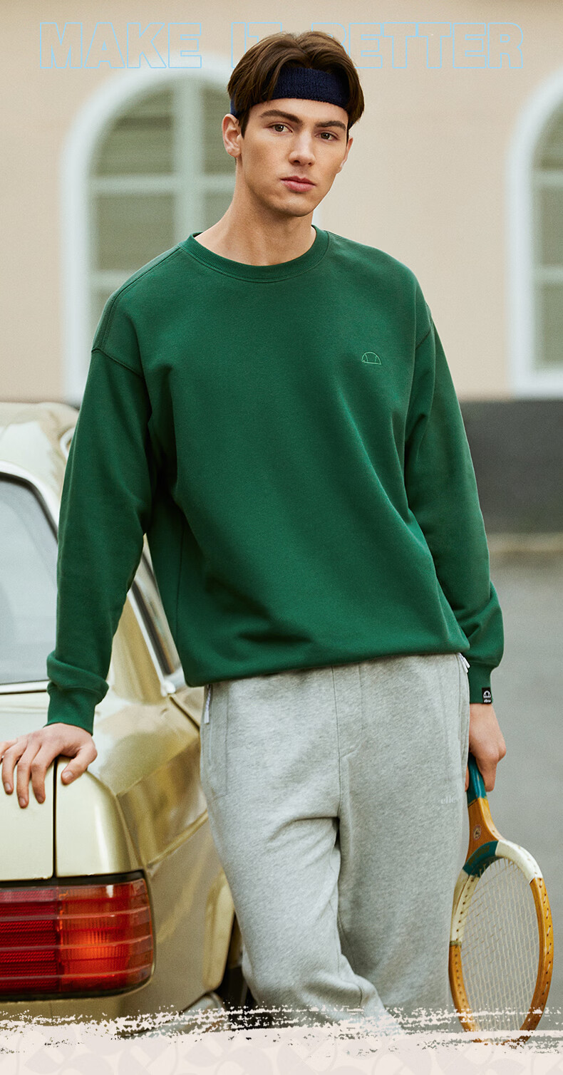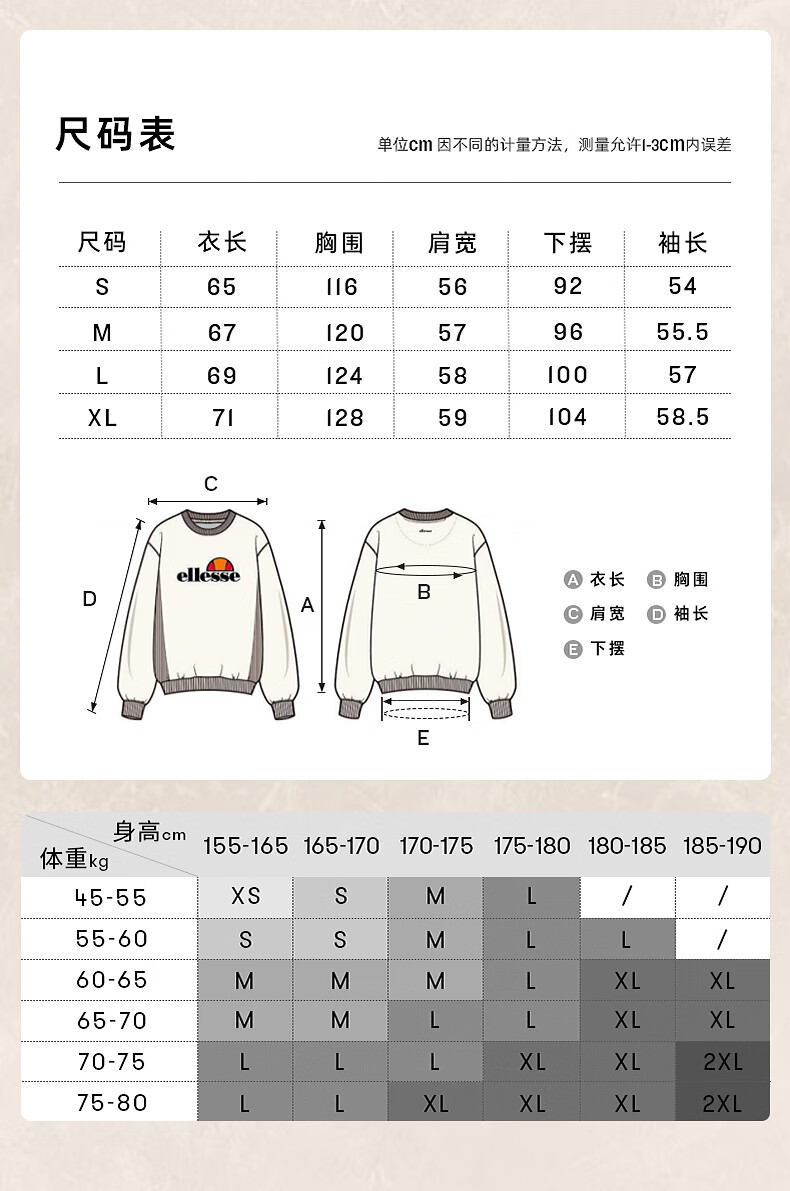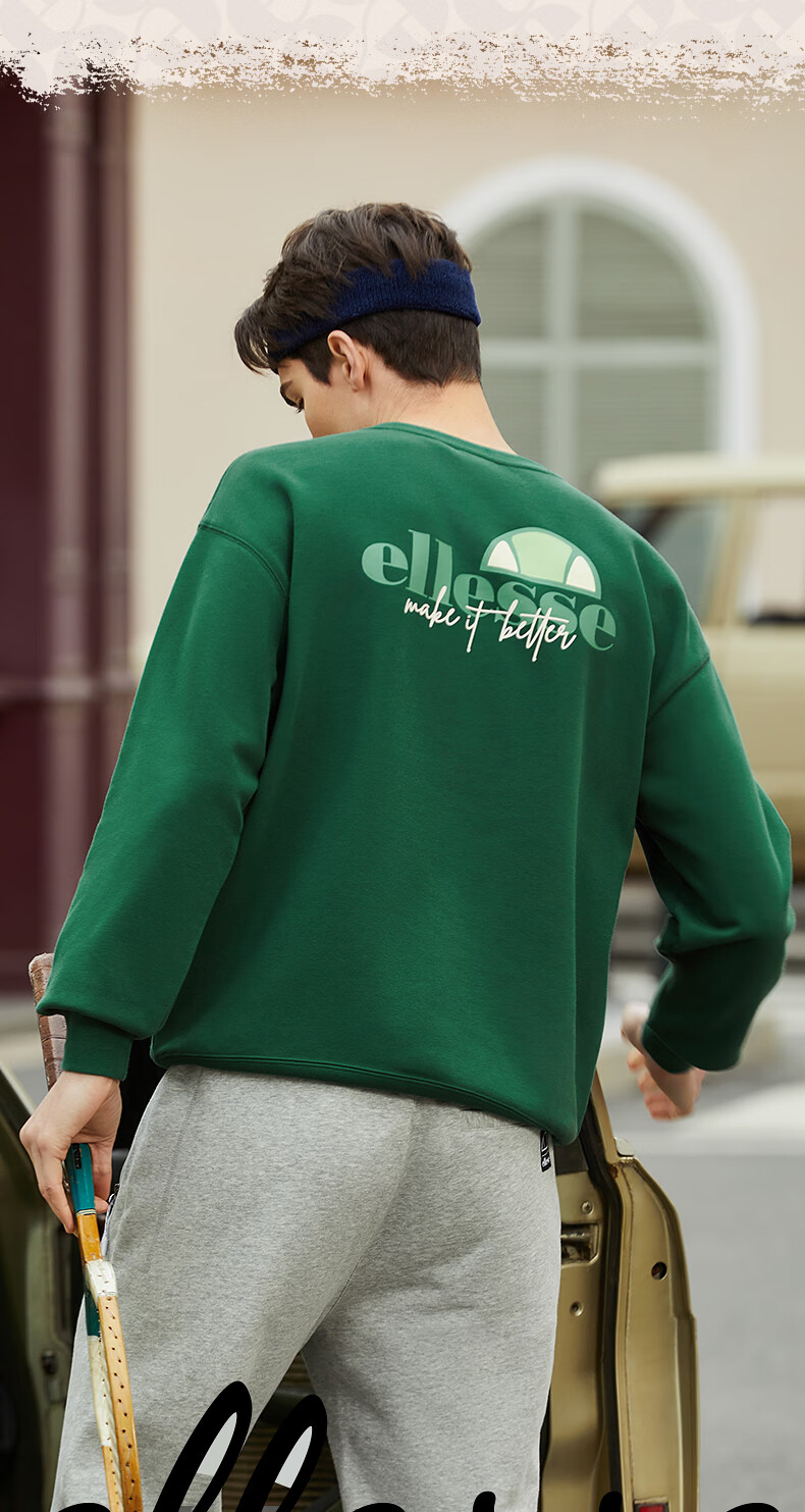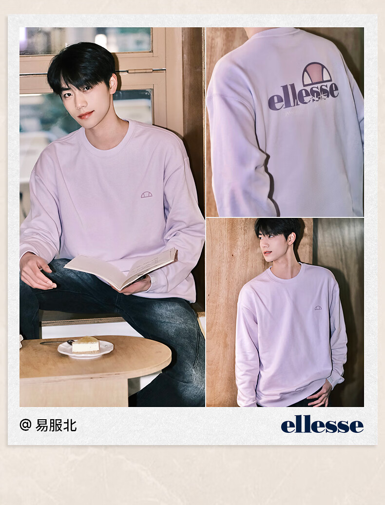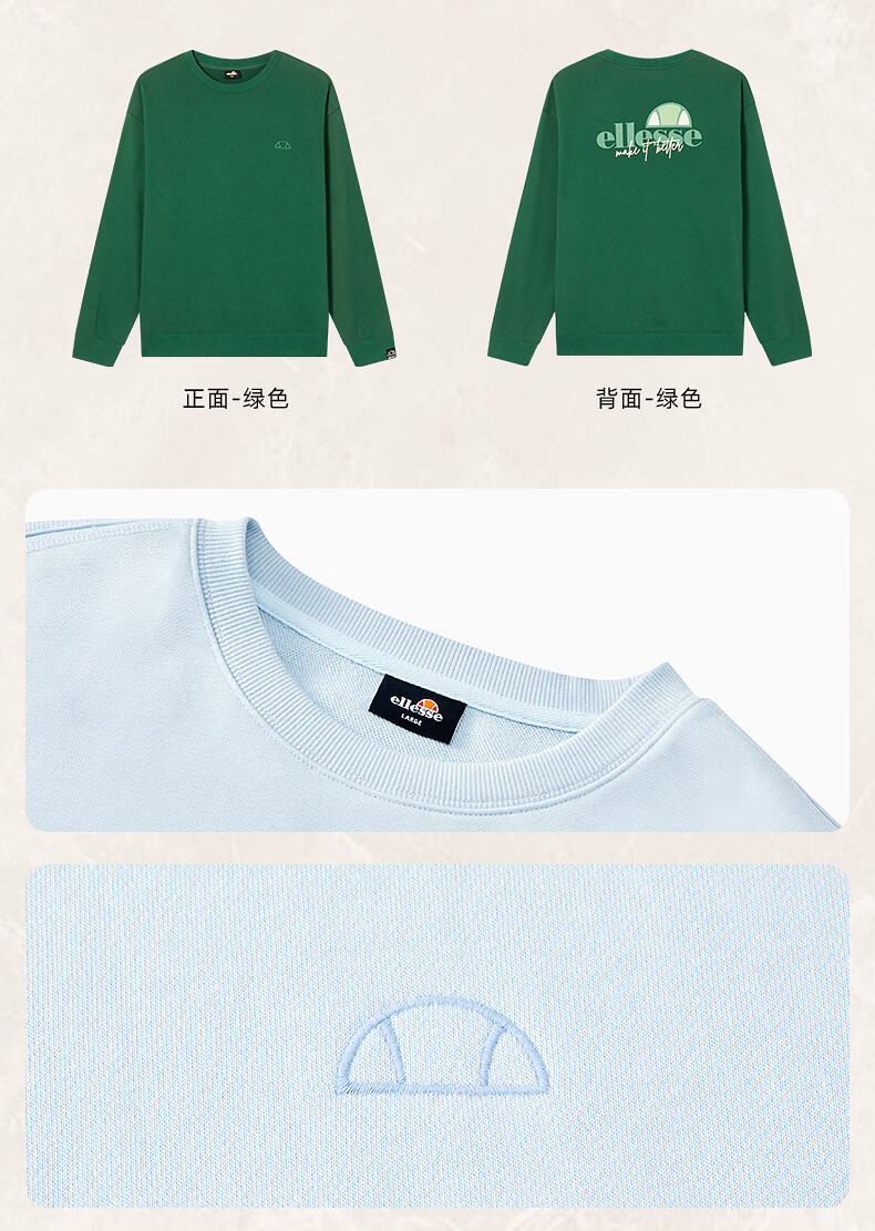 ellesse小贝壳情侣薄款卫衣男秋新款运动宽松上衣女 淡蓝色 S