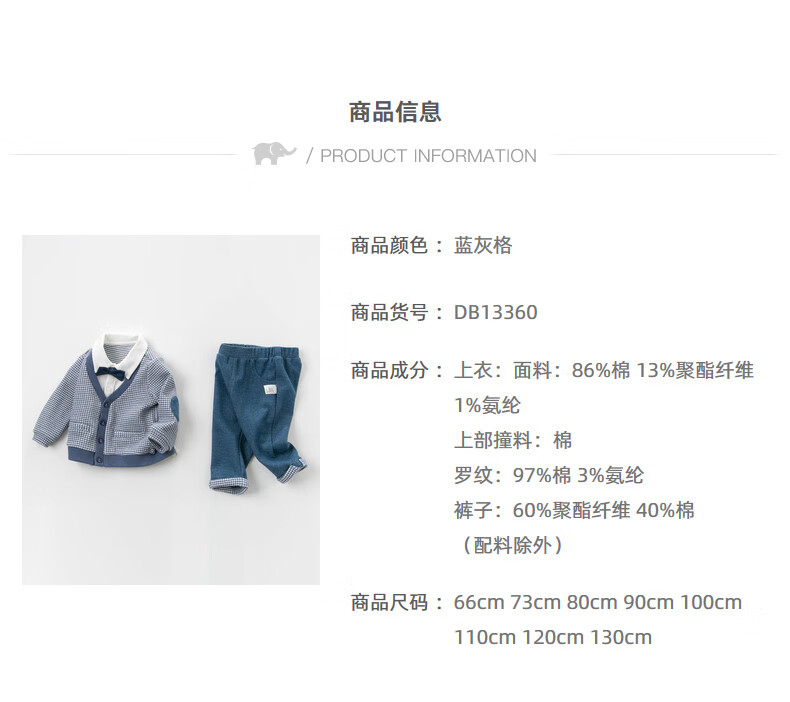 戴维贝拉(DAVE&BELLA)儿童套装男童春秋宝宝婴儿洋气童装男孩绅士休闲衣服