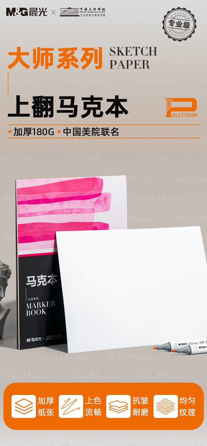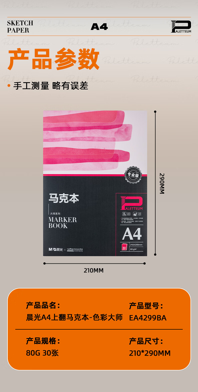 晨光(M&G)文具专业马克本A4/30张 图画本马克笔专用本绘画本画画本涂色 大师美院联名 开学礼物 EA4299BA
