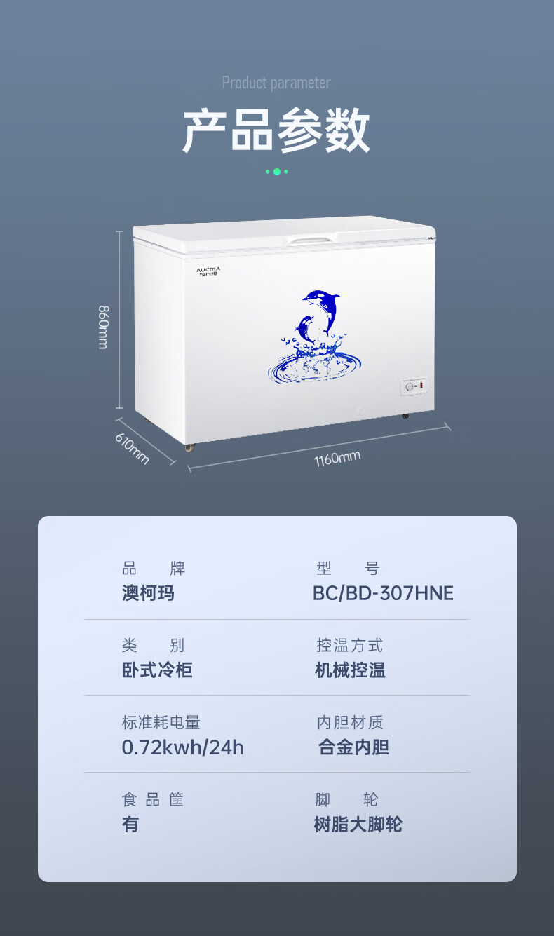 澳柯玛(AUCMA)307升单温冷柜家用减霜大冰柜 冷藏柜冷冻柜转换卧式冰箱雪糕柜一级能效 BC/BD-307HNE 以旧换新