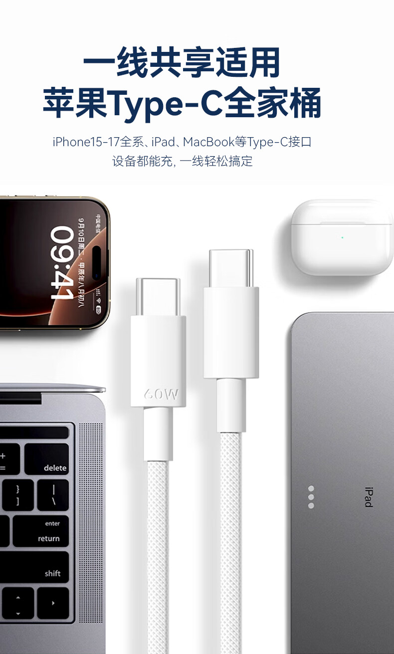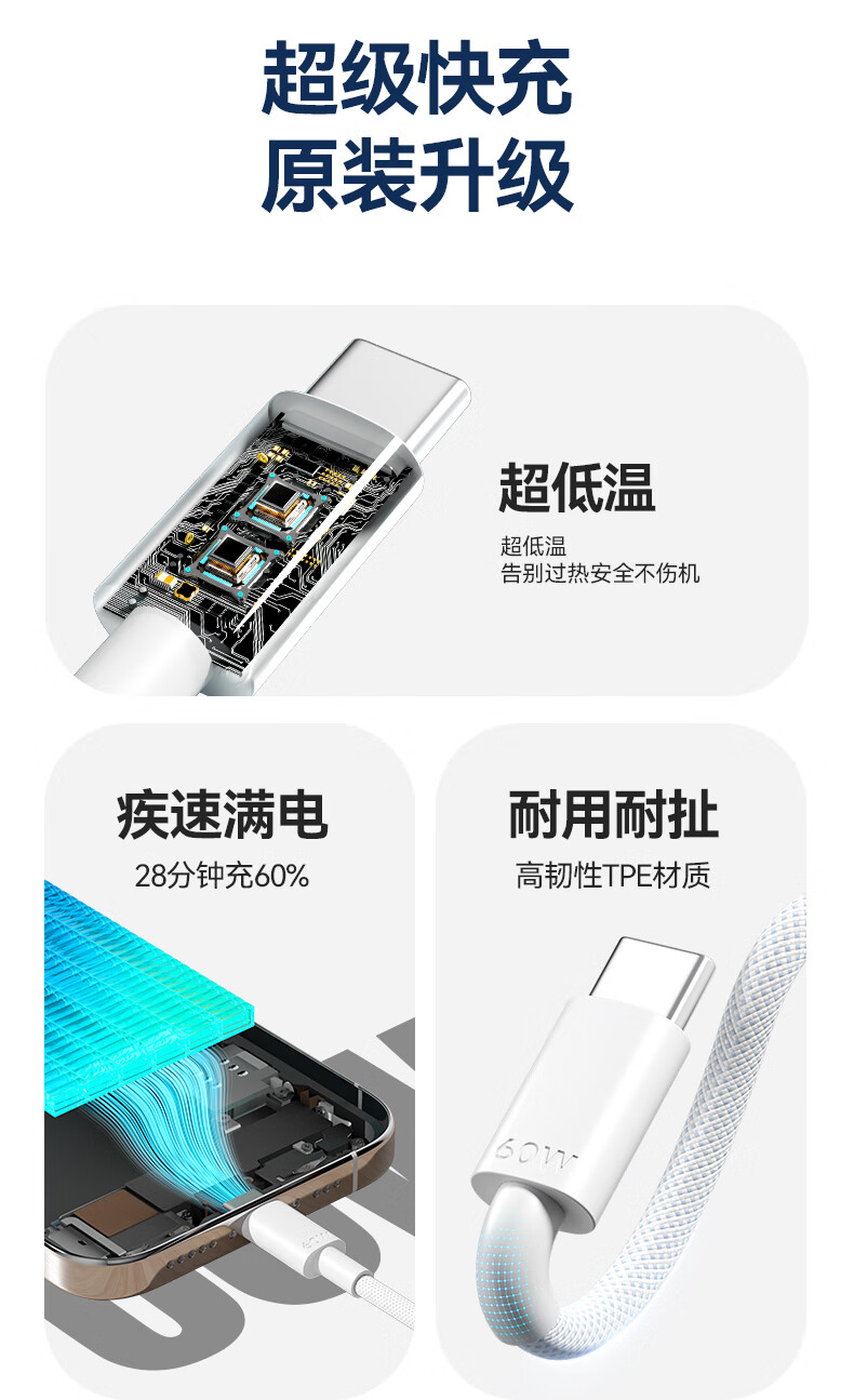 京东京造PD60W苹果数据线快充线苹果17/16充电线Type-C数据线双头车载适用iPhone安卓手机平板笔记本 1.5米