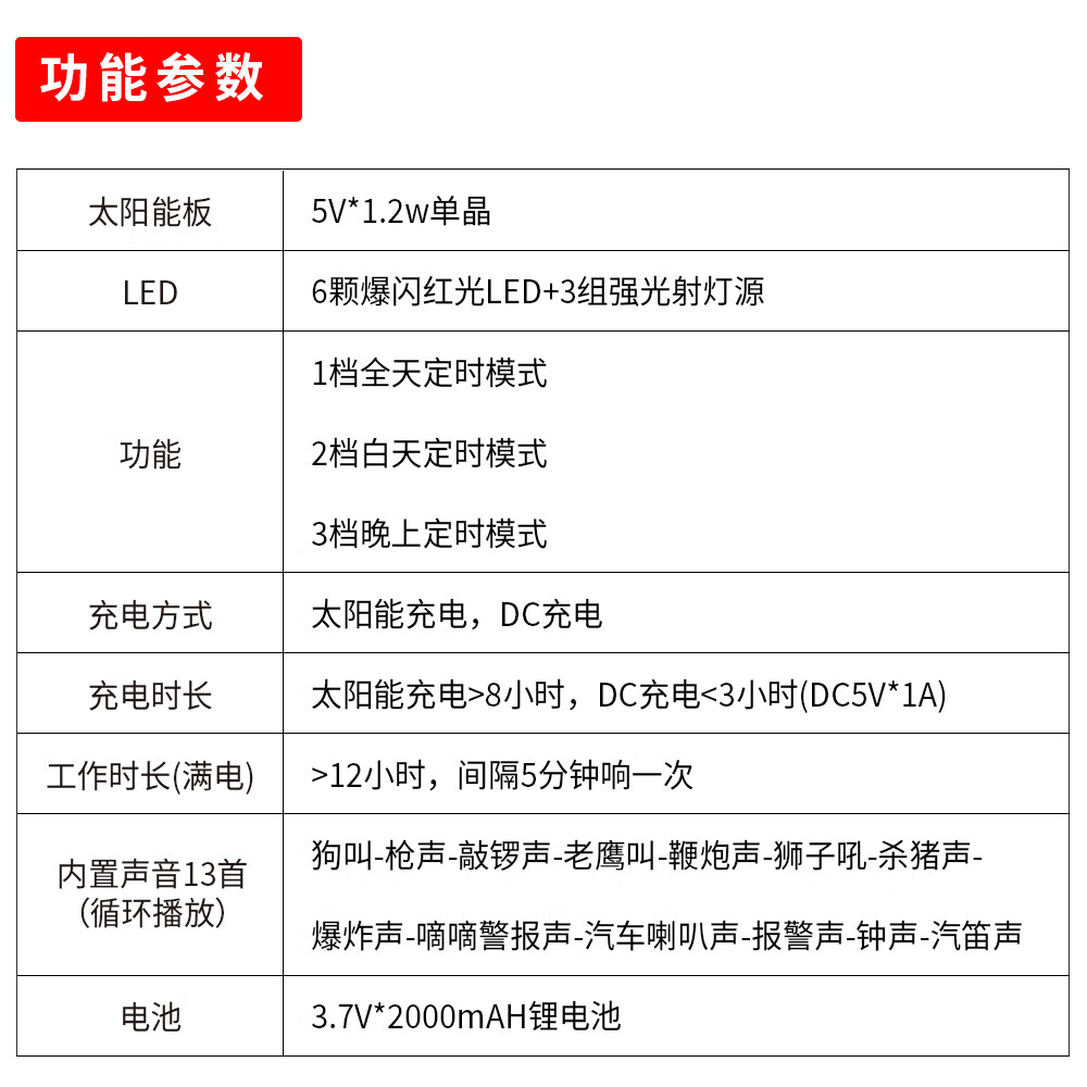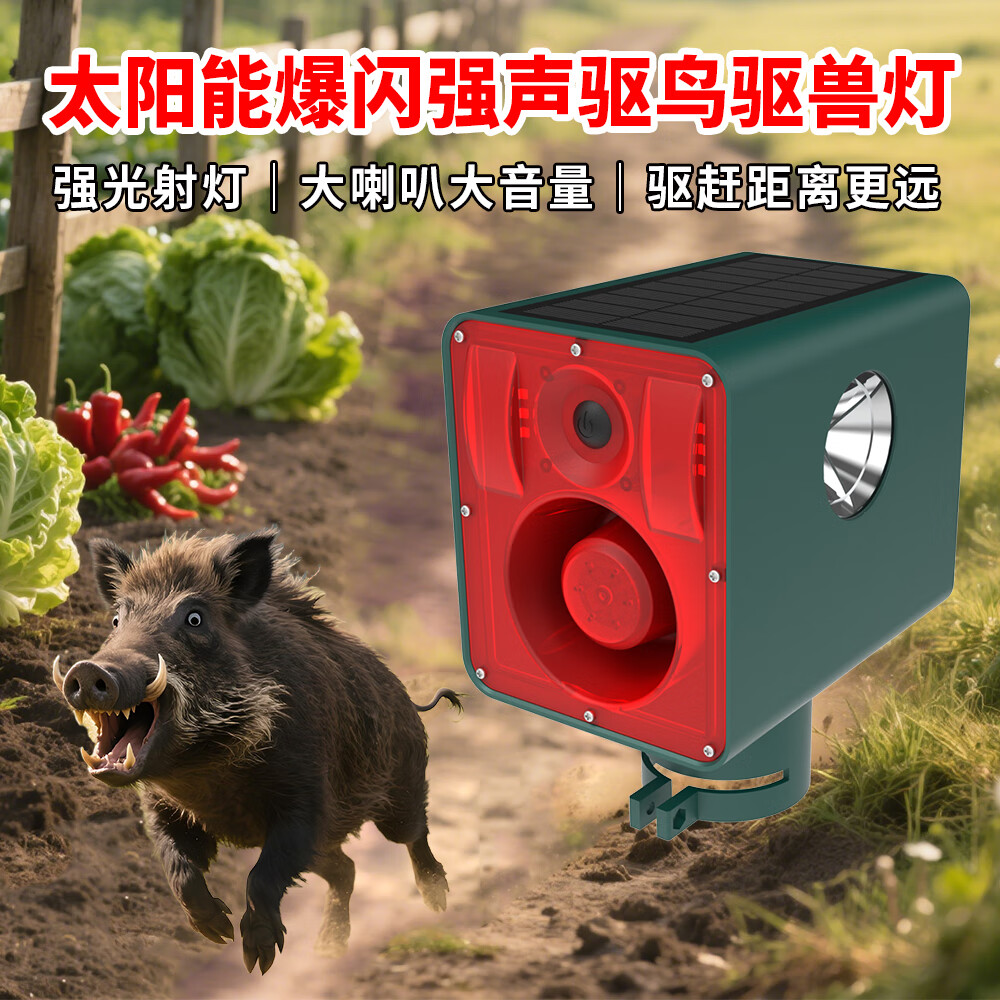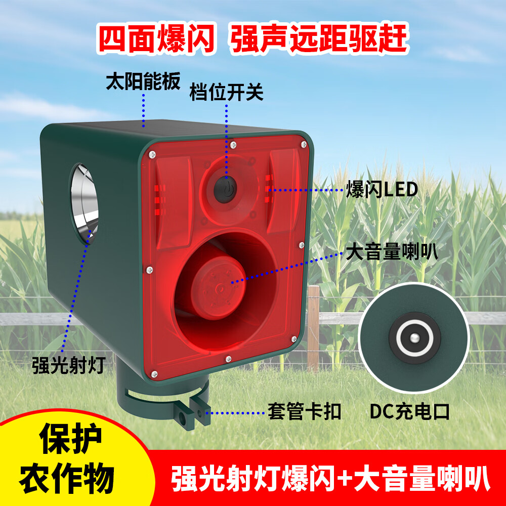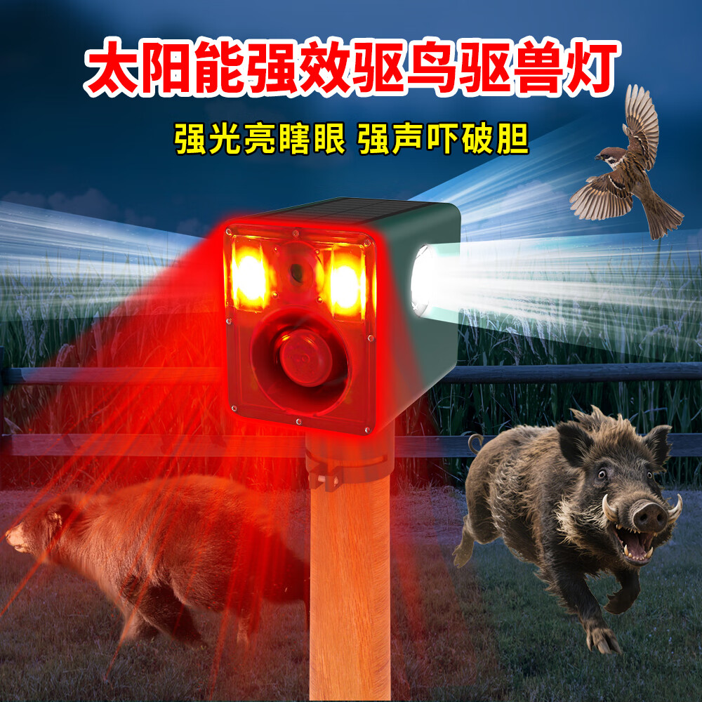 美燕户外太阳能动物驱赶器定时声光报警大音量防野猪神器 【四面爆闪爆响驱兽灯】 多档位调节+24小时工作