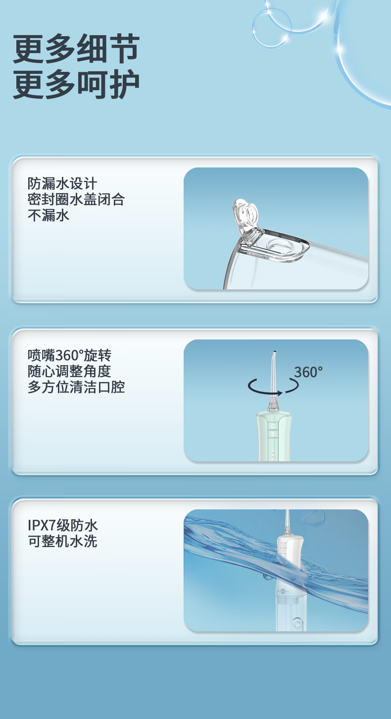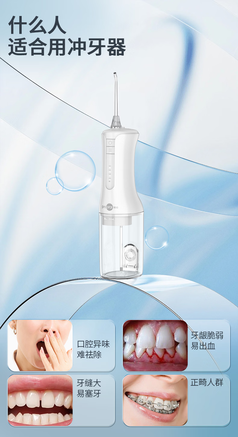 博皓(prooral)冲牙器牙齿洗牙器冲洗器水牙线正畸电动洁牙器牙缝牙结石牙垢清洁工具 情人节生日礼物 F40 象牙白