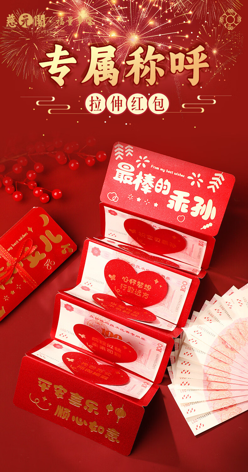 慈元阁专属称呼折叠生日红包创意拉伸卡通惊喜红包纪念日仪式感利是封 最棒的乖孙-10卡位2个装