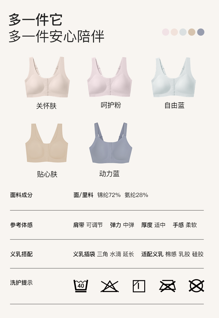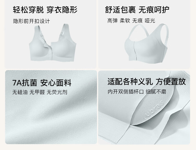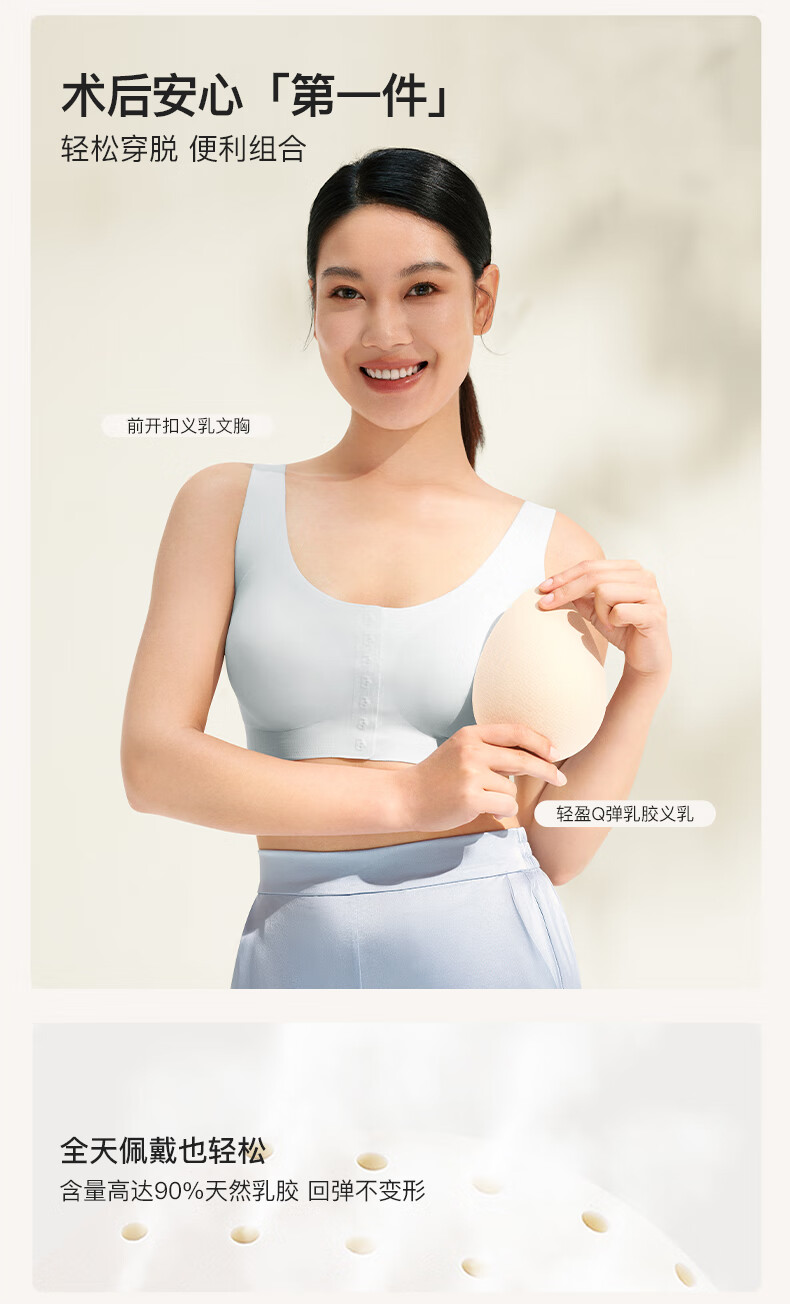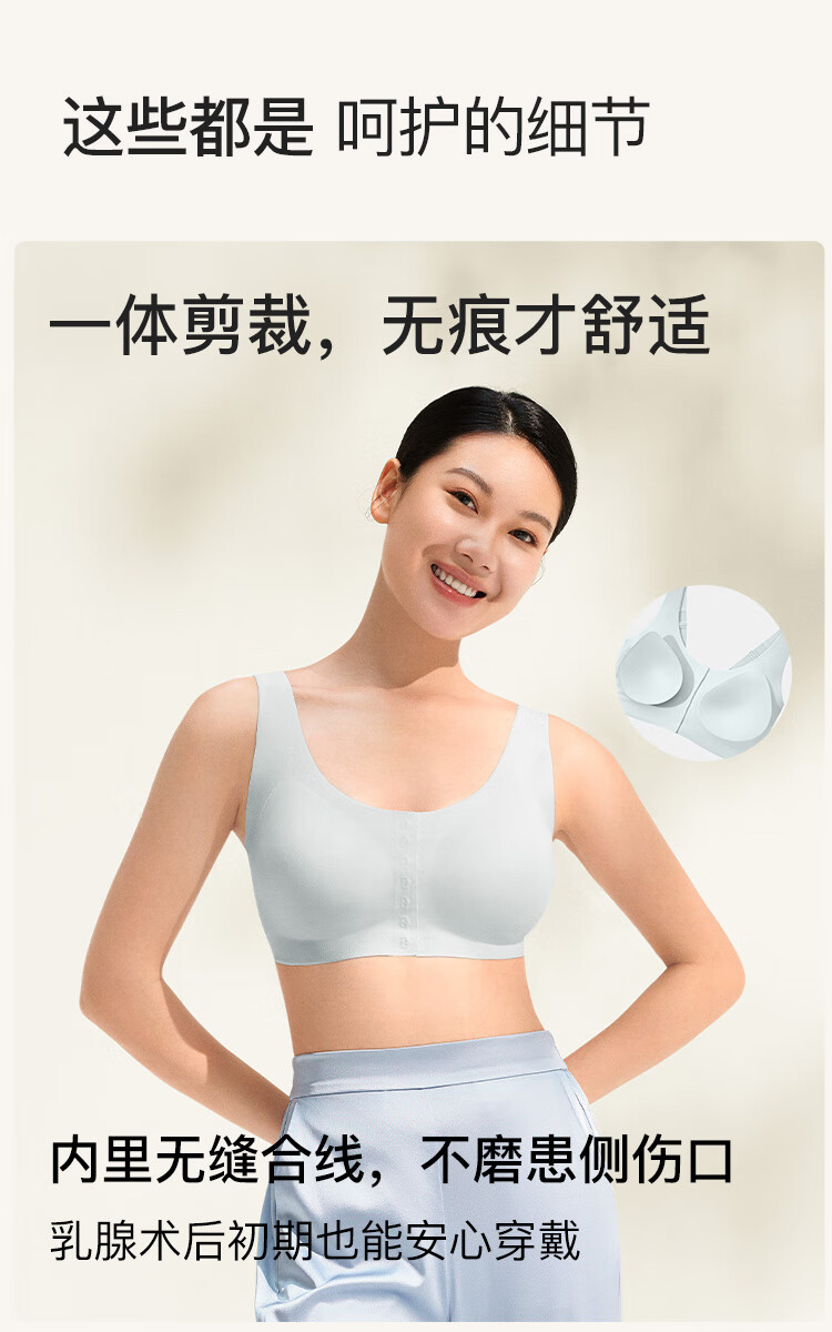 ubrasCARE新款术后专用前开扣无痕内衣义乳文胸胸罩 自由蓝色 XL