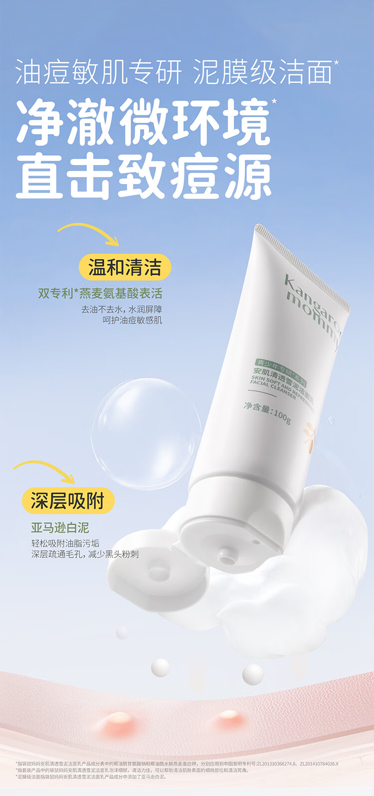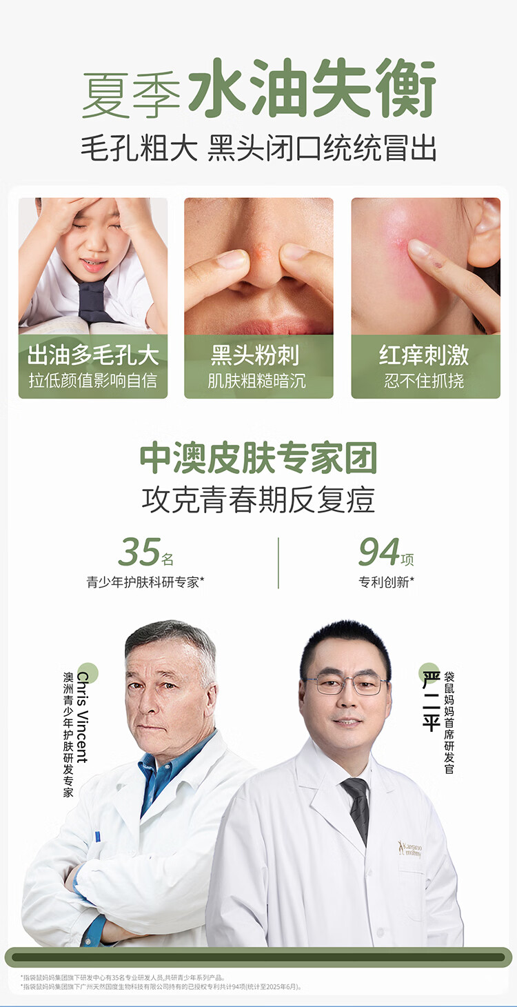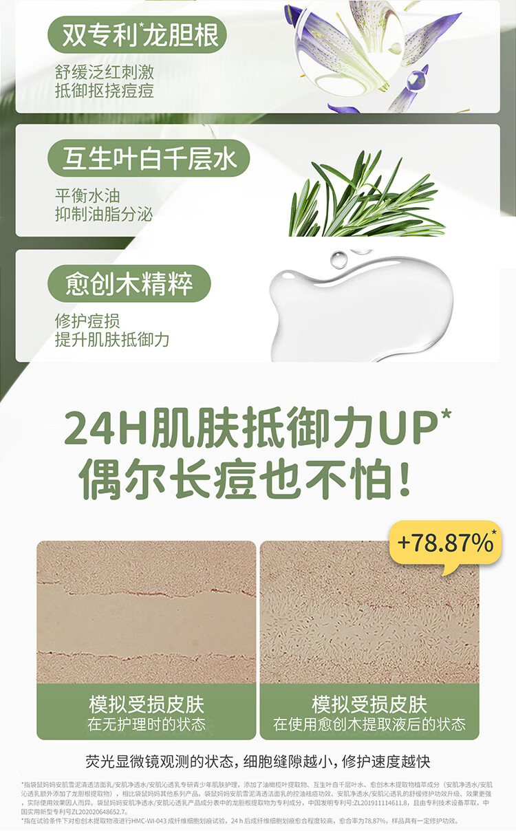袋鼠妈妈青少年洁水乳三件套护肤组合清爽保湿补水滋润组合男女通用12岁+ 【到手】洁80g+水145ml+乳130g(热卖)