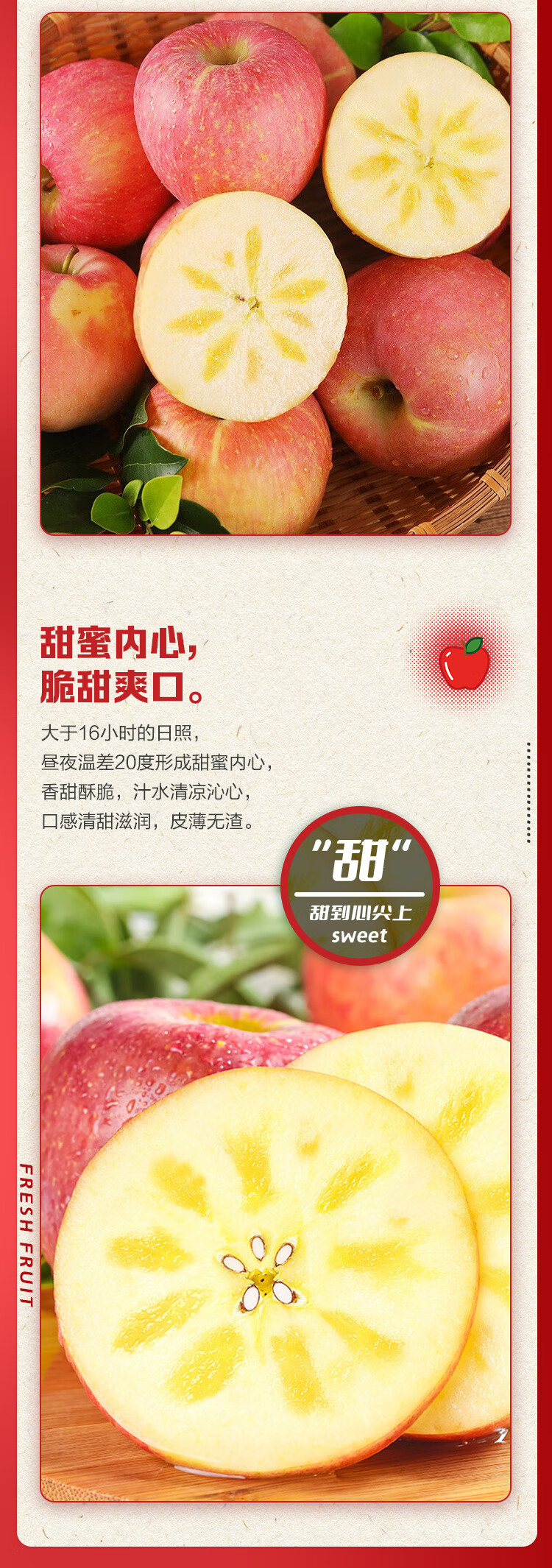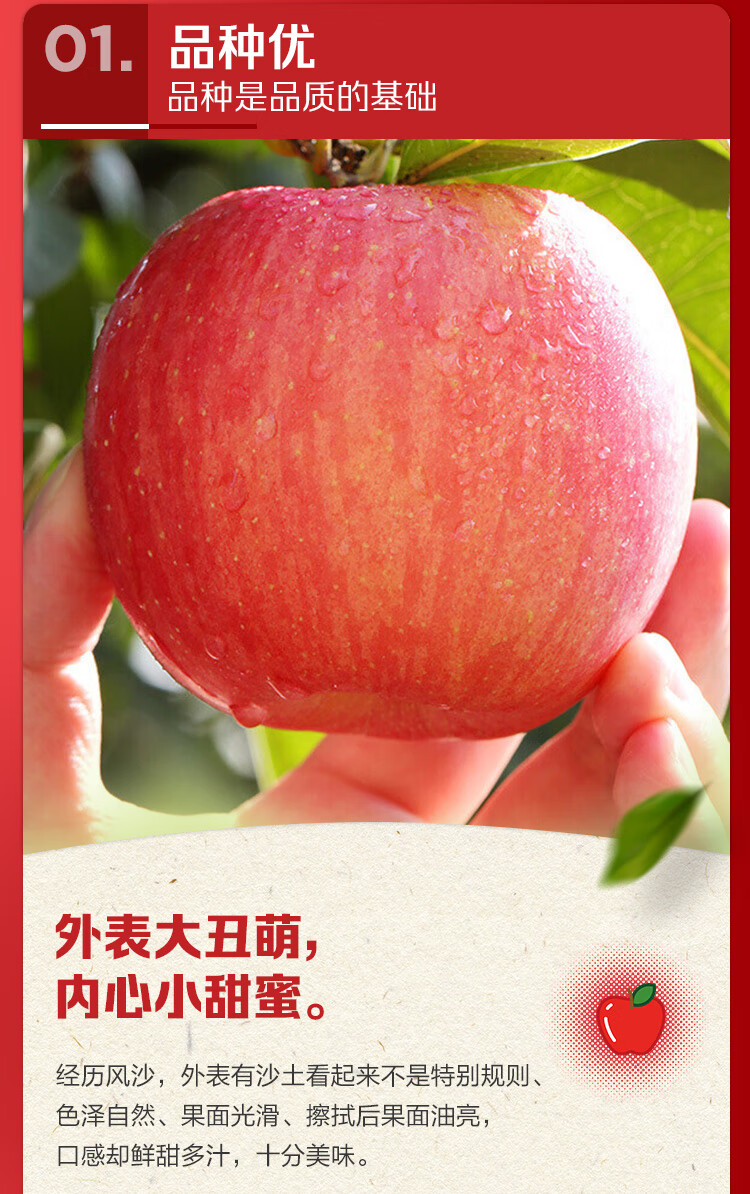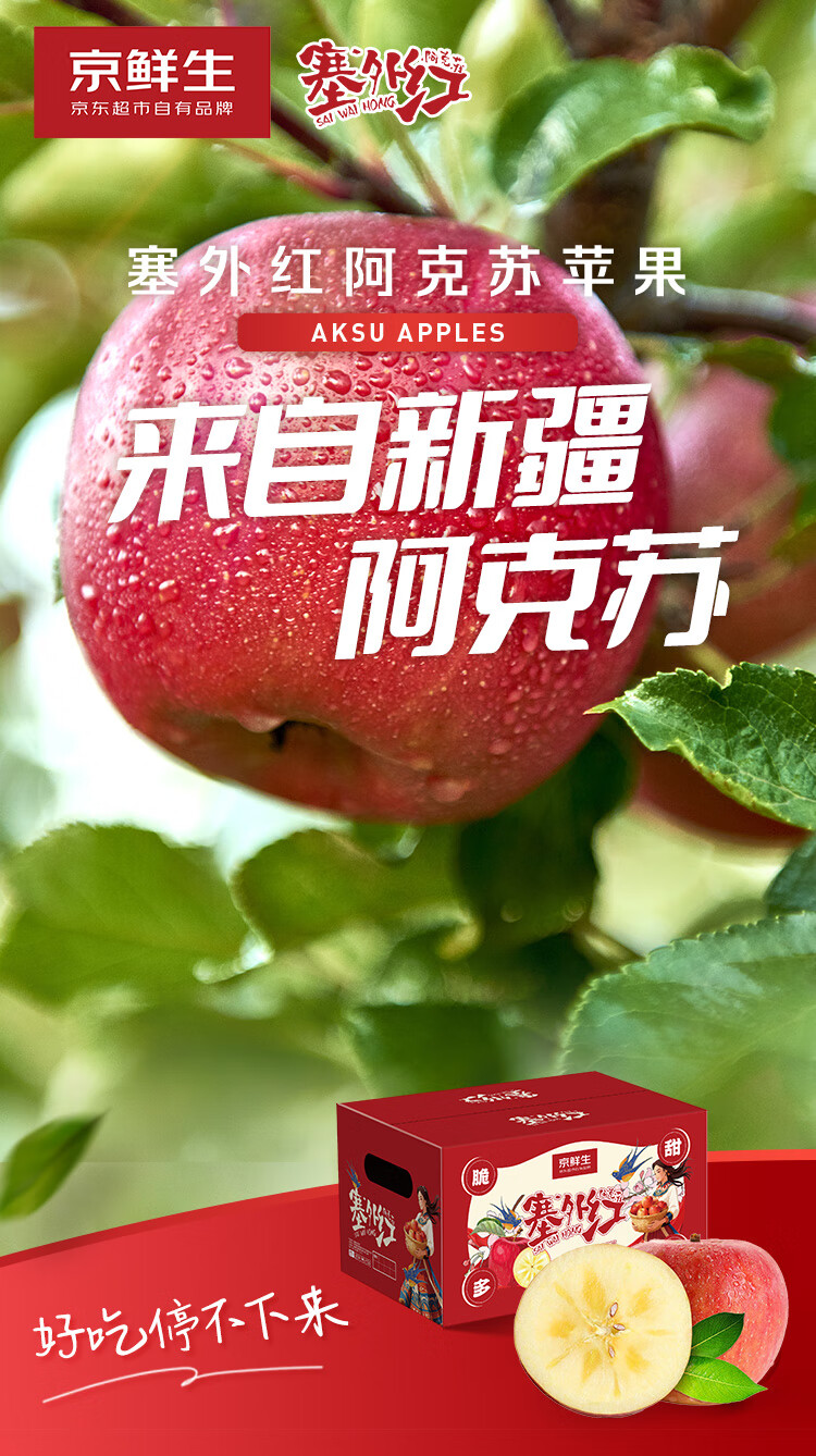 京鲜生 塞外红阿克苏苹果 净重10斤 单果180g起