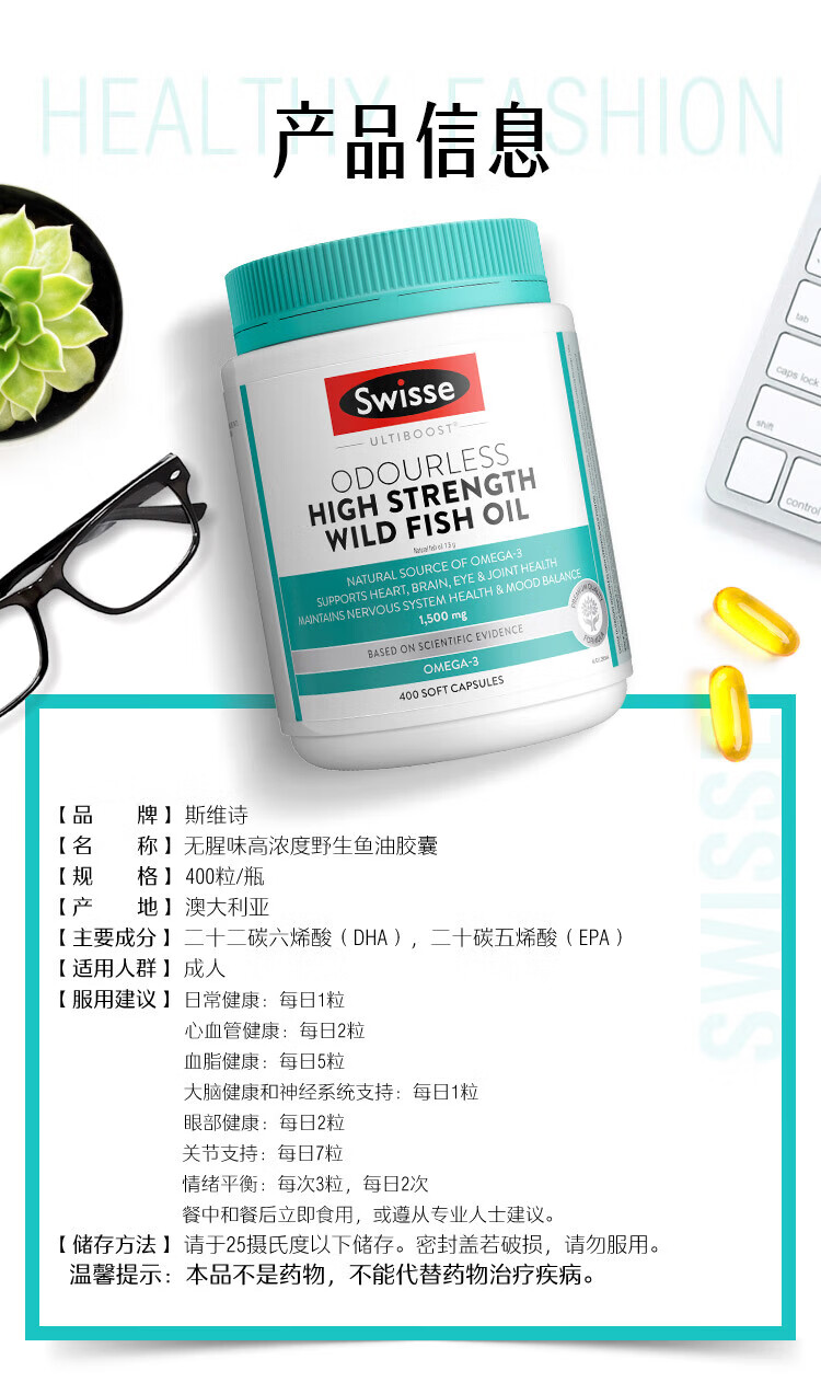GNC健安喜97%高纯度EPA深海鱼油中老年人专业降血脂60粒/盒