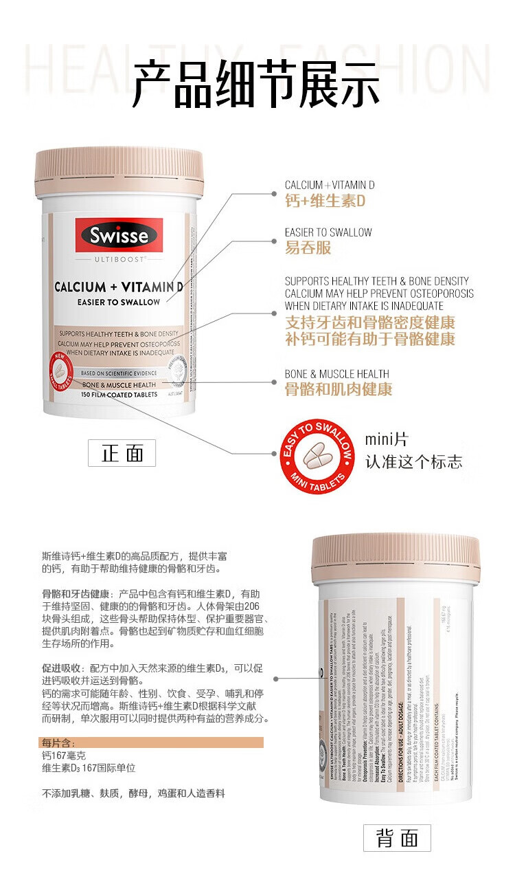 Swisse 斯维诗 钙+维生素D迷你钙片 柠檬酸钙 中老年成人补钙 海外进口 【会员尝新】迷你钙 150粒*1瓶