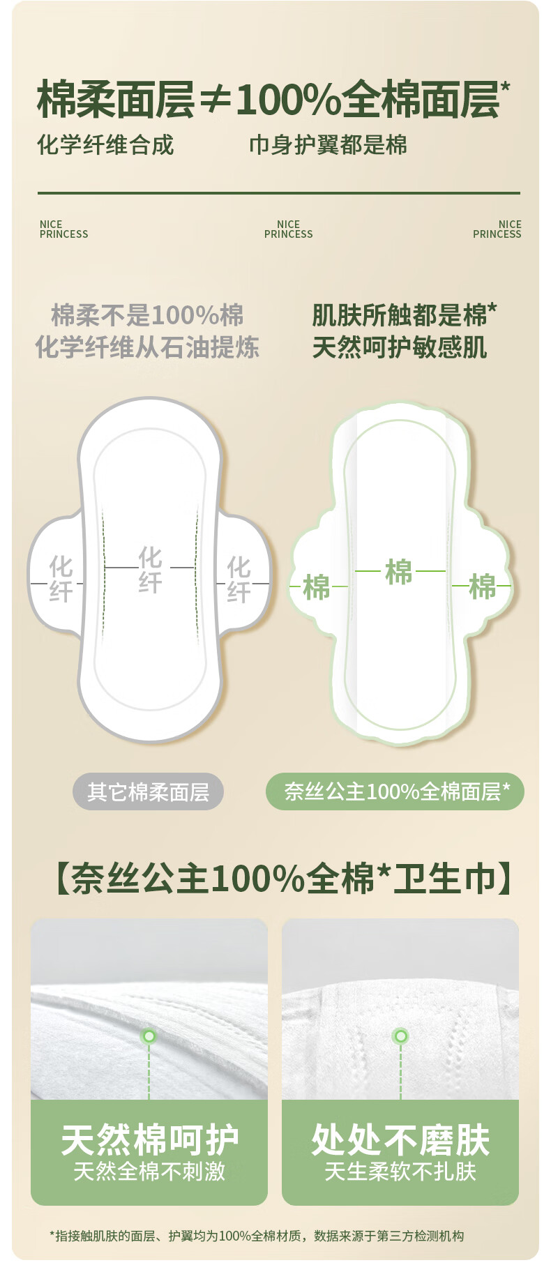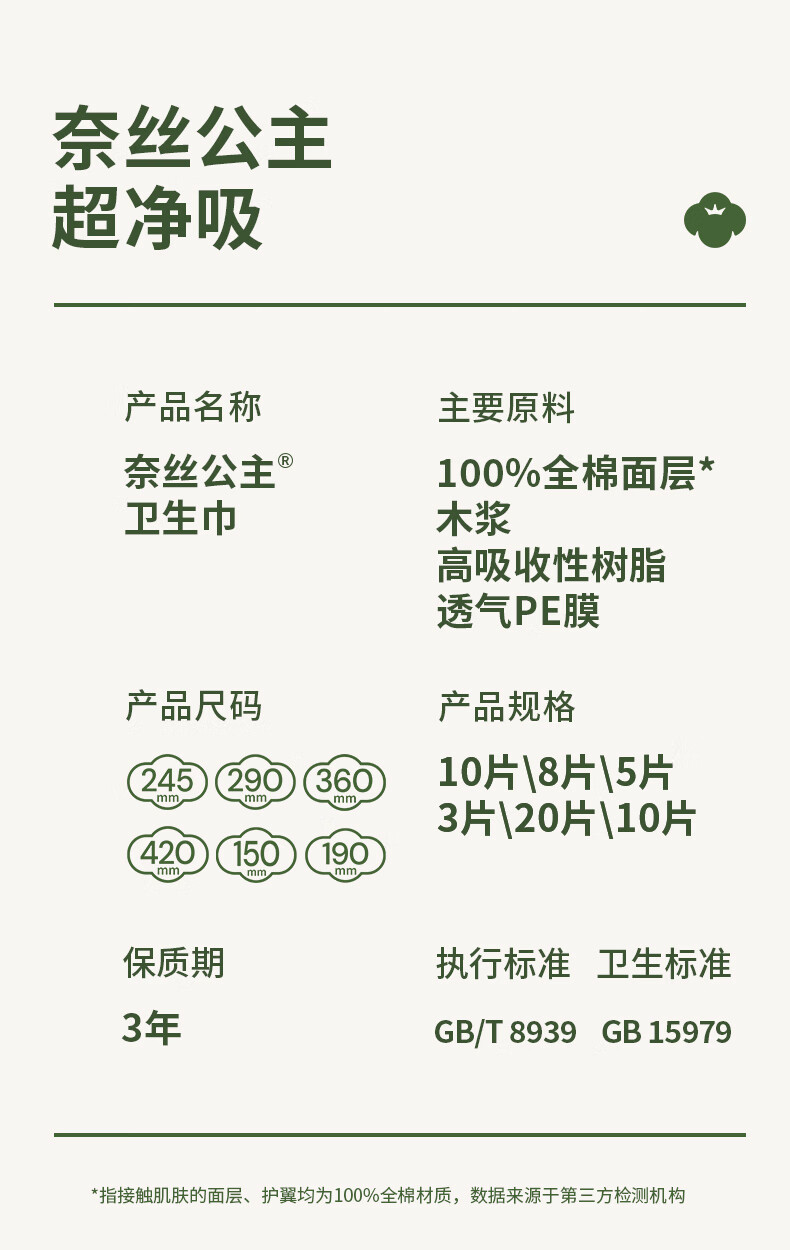全棉时代奈丝公主医护级超净吸卫生巾姨妈巾OK包4片便携包京东自营